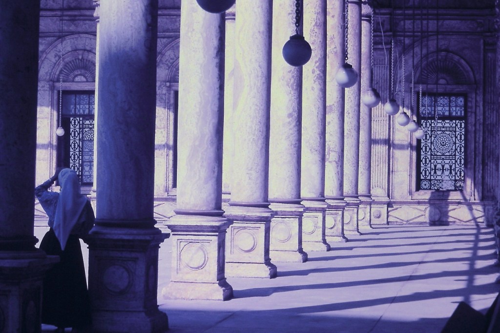 Il primo dei due giorni trascorsi nella capitale mi sono rifiutato di accodarmi al Gruppo per mettermi in “Coda” al Museo Egizio e perdervi gran parte della giornata a discapito del resto della città. La maggior parte degli altri colleghi, al rientro, si dichiareranno delusi dalla giornata: hanno atteso 3 ore in coda prima di poter visitare, solamente per alcuni minuti, la Sala dedicata a Tutankamon e niente altro, poi hanno raggiunto un ristorante per il pranzo e poi hanno concluso la giornata visitando una chiesa Copta prima di rientrare in albergo. Io, assieme a due colleghe, abbiamo optato per raggiungere in Taxi la Cittadella da dove abbiamo ammirato il panorama sulla città e visitato la Moschea azzurra. Dalla Cittadella, sempre in taxi, abbiamo raggiunto il quartiere di Khan el-Khalili, immergendoci nelle stradine per osservare i laboratori e gli artigiani all’opera. Non credo rifarei questa esperienza, dati i problemi evidenziati in Italia dall’omicidio del mio conterraneo Giulio Regeni. L’Egitto rientra da tempo nella mia personale “Lista Nera dei paesi da evitare”! In quella giornata ho scattato una delle mie fotografie preferite: un arabo che, camminando lungo un vicolo buio, legge un giornale passando sotto luce di un raggio di sole. Ho potuto scattarla solo in Bianco e Nero in quanto la scena si è svolta nel giro di pochi secondi ed in quei secondi ho dovuto optare tra B&W e Diapositiva a Colori poichè non avrei avuto il tempo per un altro scatto, la scelta fu azzeccata, ora tutte le diapositive sono molto rovinate ed hanno perso alcuni colori, il negativo di meno.