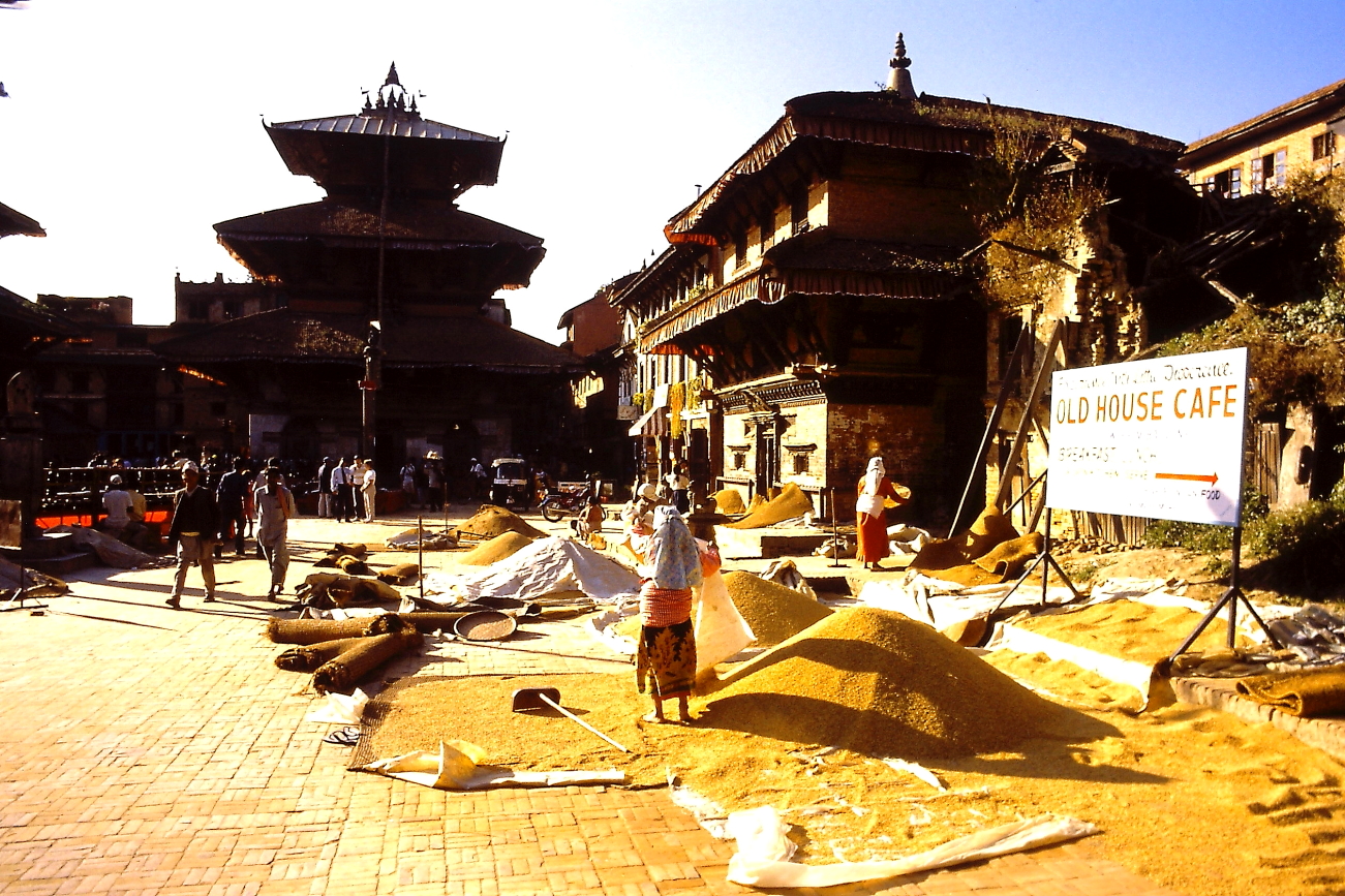 06.11 Sabato – Un’altra giornata concordata con il tassista. Si parte al mattino alla volta di Bhaktapur, circa 20 km ad est della capitale. Percorriamo una strada, dapprima caotica poi più rilassante nonostante il fondo sconnesso e lo stile di guida locale, alquanto rustico. L’autista si ferma in un posteggio nei pressi di uno degli ingressi della città e ci accordiamo per l’ora a cui torneremo, chiedendogli di pazientare se dovessimo ritardare, poi ci immergiamo nella città. Entriamo direttamente da Durbar Square. La piazza è un museo a cielo aperto, meglio di Patan e di Katmandu. Alcuni altoparlanti diffondono una musica e dei cori, ci informiamo e scopriamo che sono dei “Canti” sacri di un monastero buddista, prima di partire compreremo tre CD a caso: uno meglio dell’altro. Alcuni bambini giocano nella piazza e ci corrono attorno.
