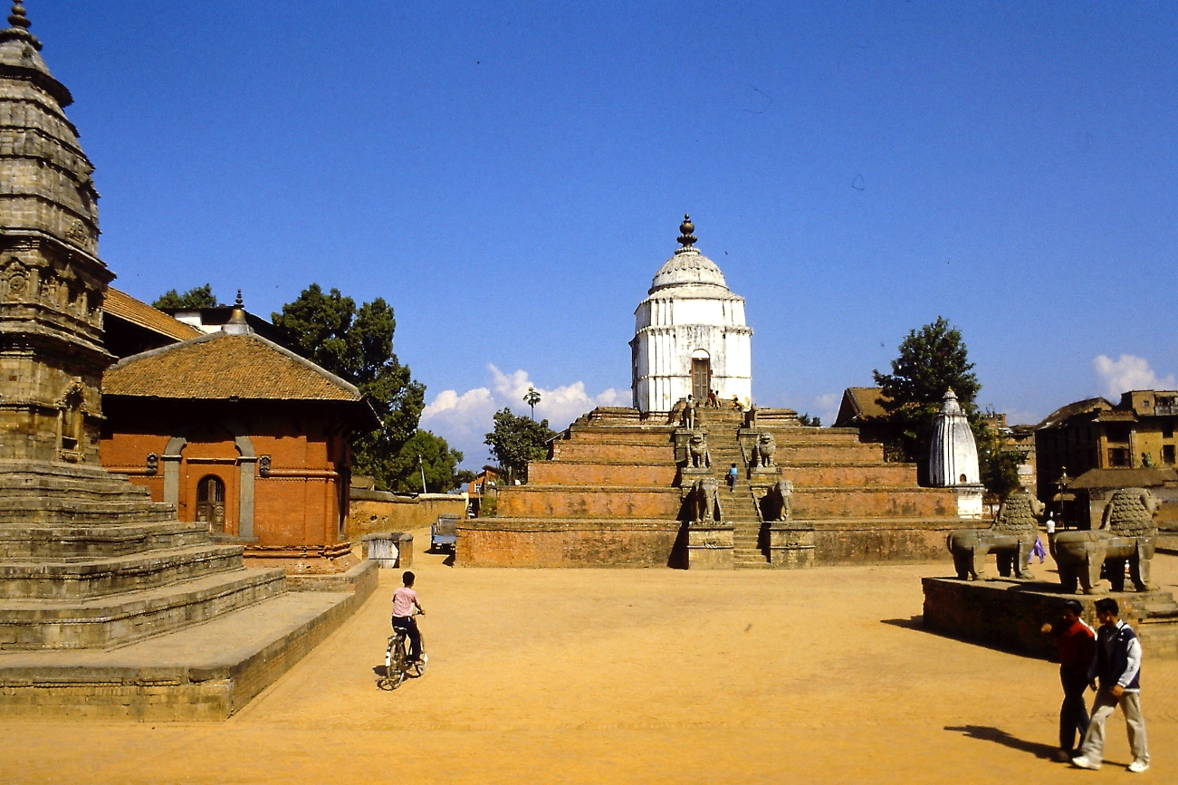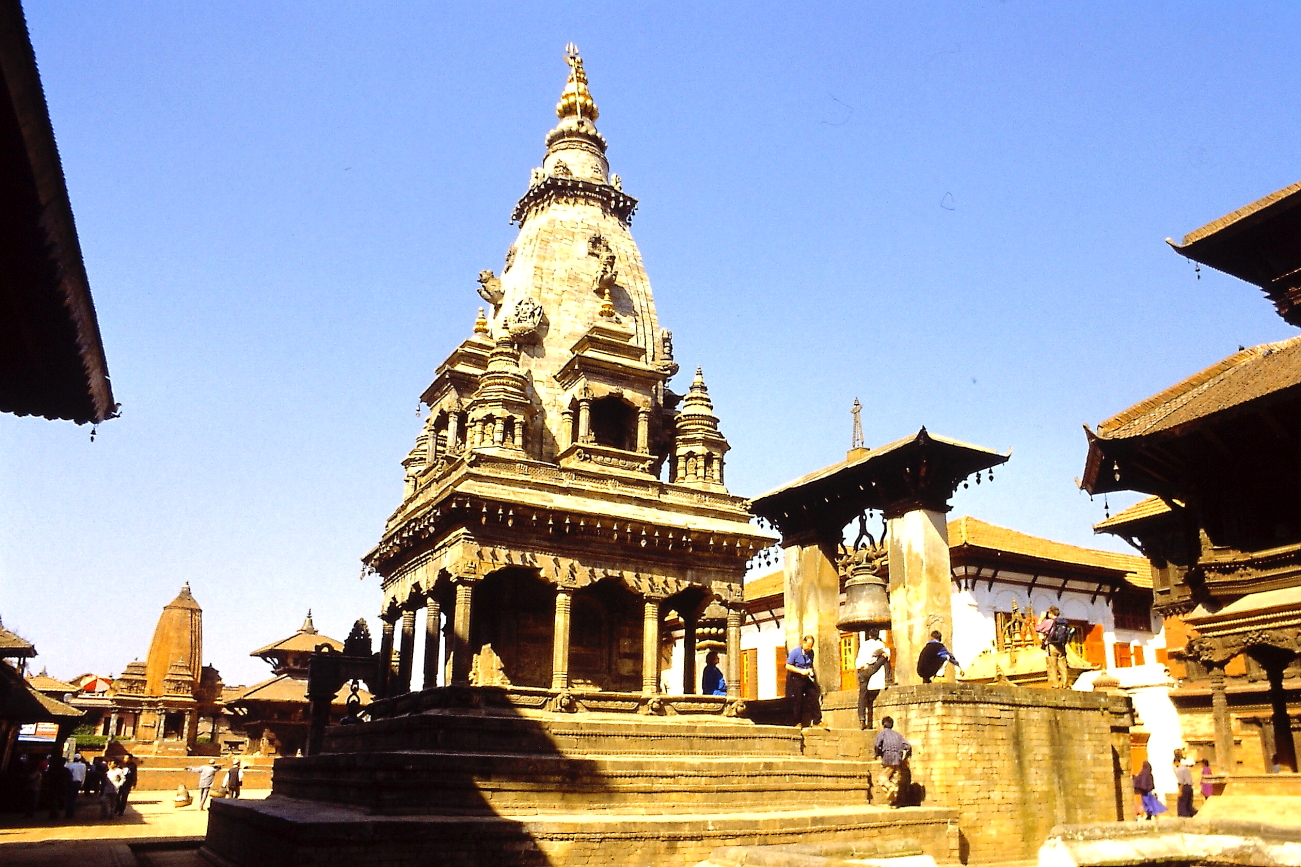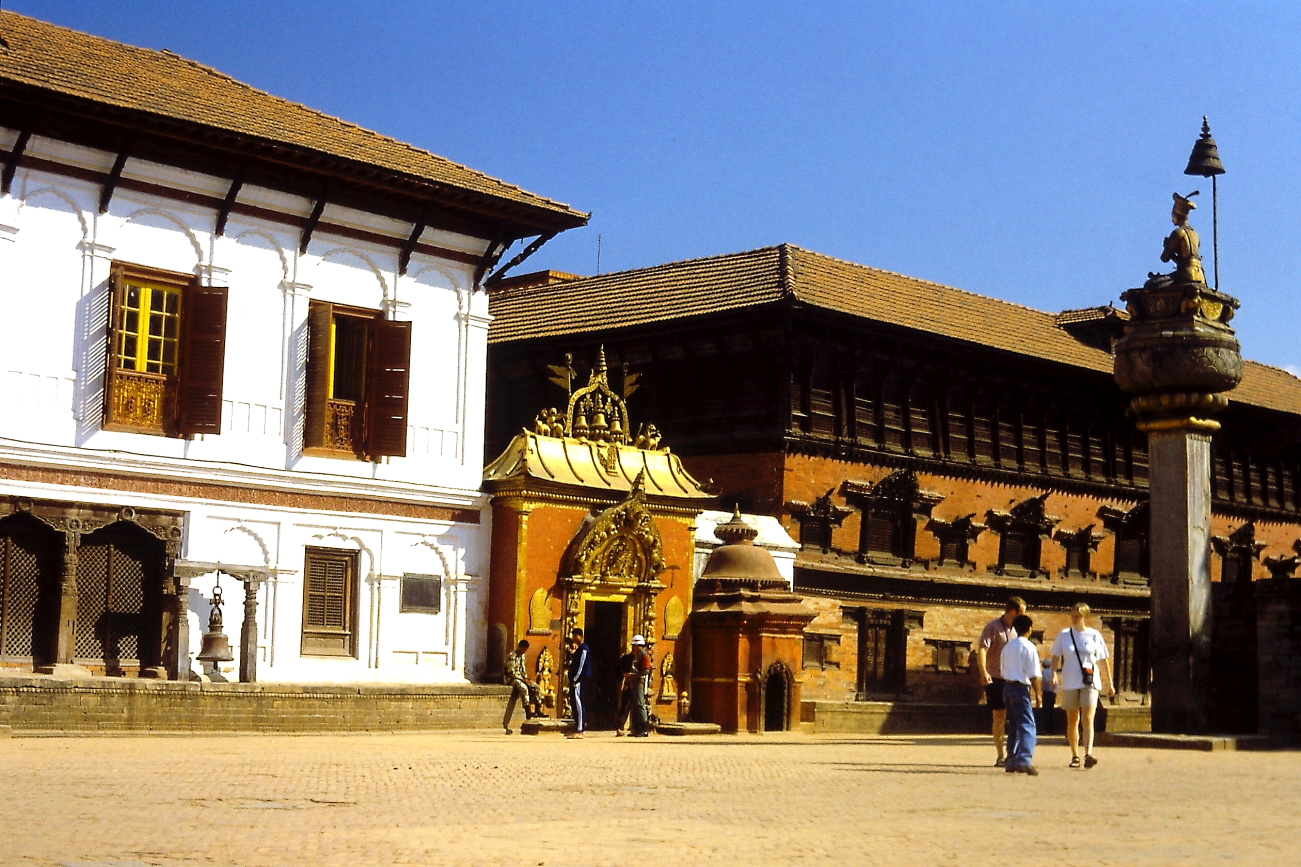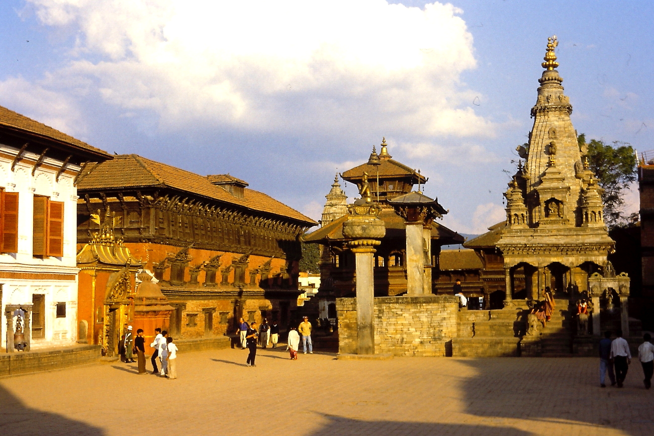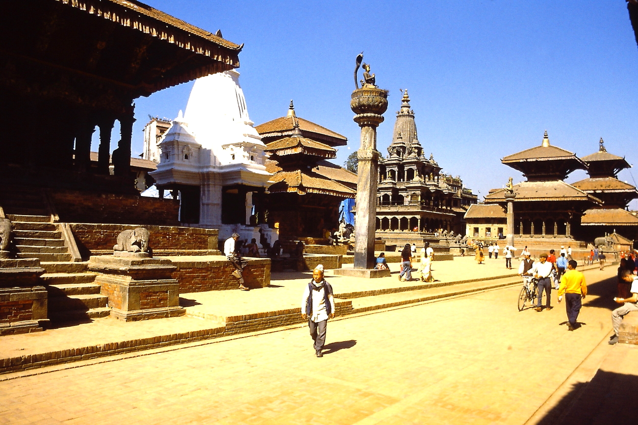 04.11 Gioved’ – Ci siamo accordati con un autista di taxi e lui, in alcuni giorni, sarà a nostra disposizione. Oggi si va prima a Patan, poi Bungamati pochi km più a sud. L’autista ci accompagna direttamente alla piazza principale di Patan, mostrandoci dove ci attenderà alcune ore dopo ed entriamo in questa stupenda piazza. Ricordo alcuni templi bianchi ed alcune donne vestite con dei Sari arancioni sulla terrazza superiore di uno di questi templi. Visitiamo il Museo che si affaccia sulla piazza. Terminata la visita optiamo per una bibita al bar del Museo, sulla porta che immette al giardino una enorme “campana di Legno”, mossa dai refoli d’aria, emette un tono basso e rilassante, ci rigeneriamo e proseguiamo per un ulteriore giro nella citta. Ripartiamo, con l’autista alla volta di Bungamati e qui trascorreremo alcune ore prima di rientrare a Kathmandu dove decidiamo di rientrare a piedi lungo la KantiPath, incuriositi dagli enormi pipistrelli appesi agli alberi di alcuni giardini. Ceneremo in albergo.