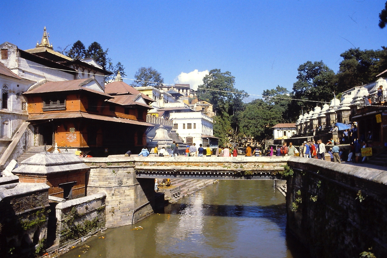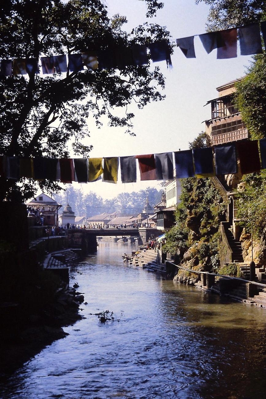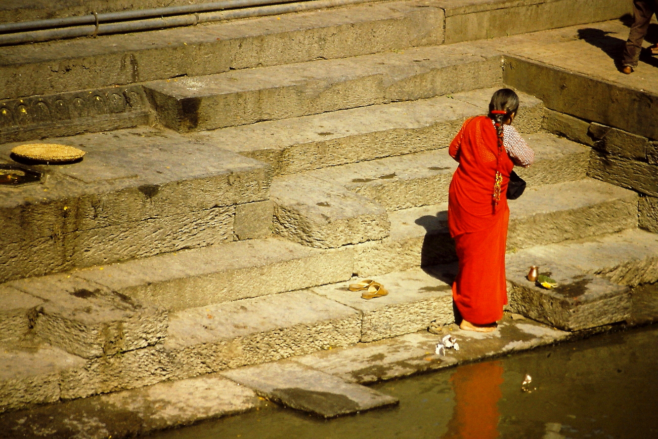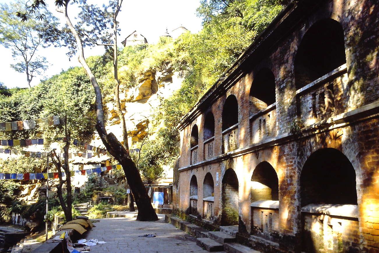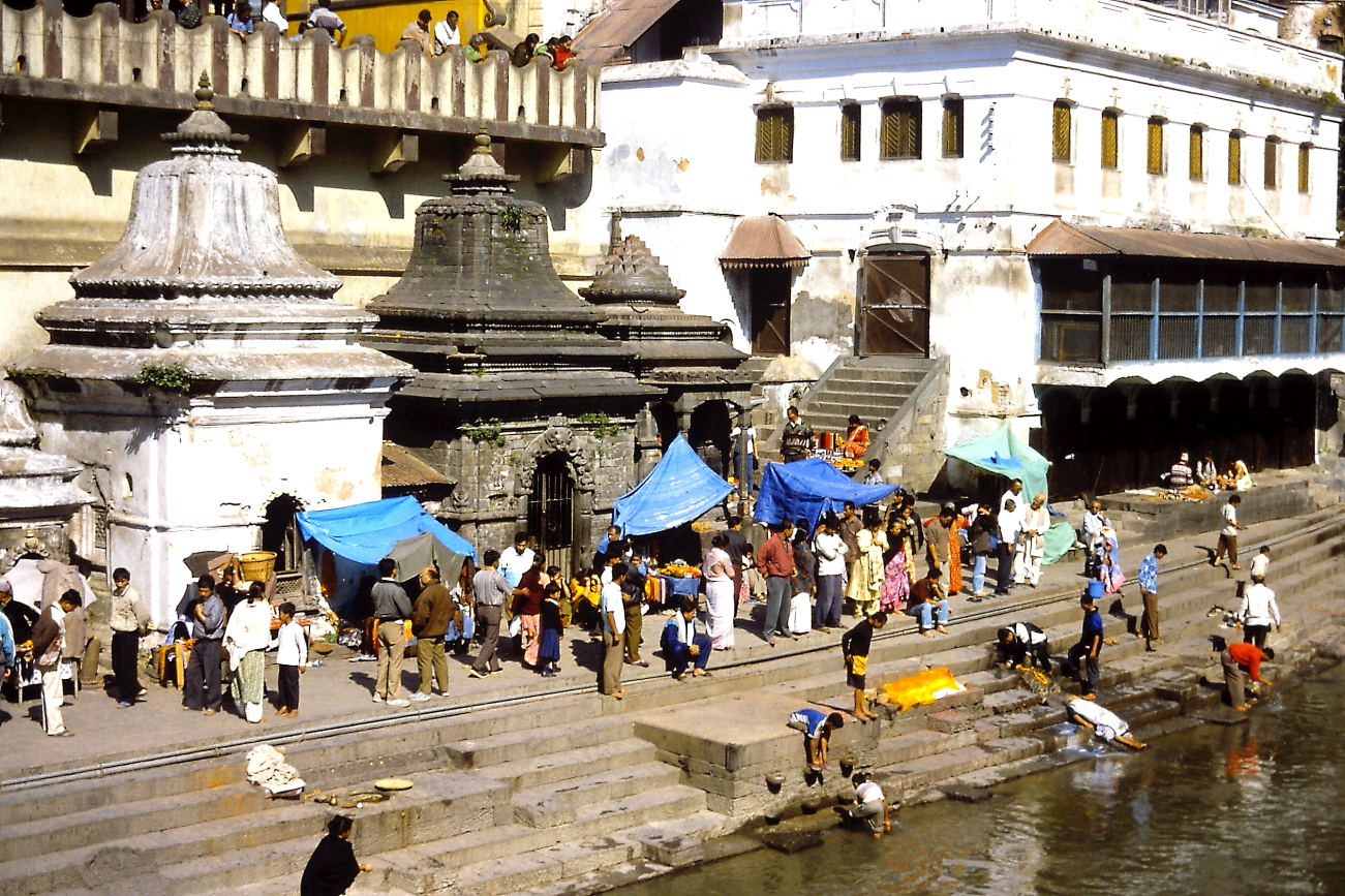 08.11 Lunedì – con altro Taxi raggiungiamo la zona di Pasupatinath, raggiungiamo il tempio di Guhyeshwori e da qui, lungo il fiume Bagmati prima e sulla collina poi, visiteremo la zona dei Ghat. Affascinante la passeggiata lungo il Bagmati, poi raggiunta la zona dei Ghat decidiamo di risalire la collina verso il tempio di Goraknath. Ci fermiamo su alcune terrazze prospicenti ai Ghat ad osservare i preparativi per alcune pire sino a quando una di queste pire viene accesa, a quel punto il vocio dei turisti ed i lampi dei flash utilizzati inutilmente, mi convince a “dissociarmi” da quel disturbo di un momento privato, così continuiamo il percorso verso la collina. Torneremo ad osservare i Ghat al ritorno, quando le pire saranno spente e ci saranno meno turisti.