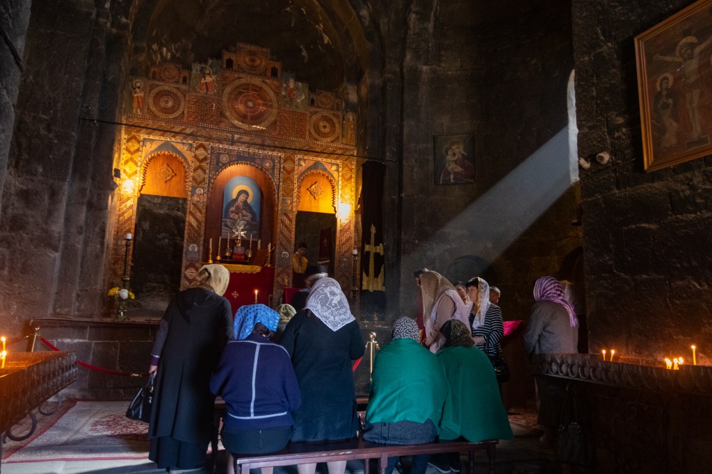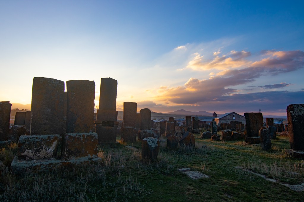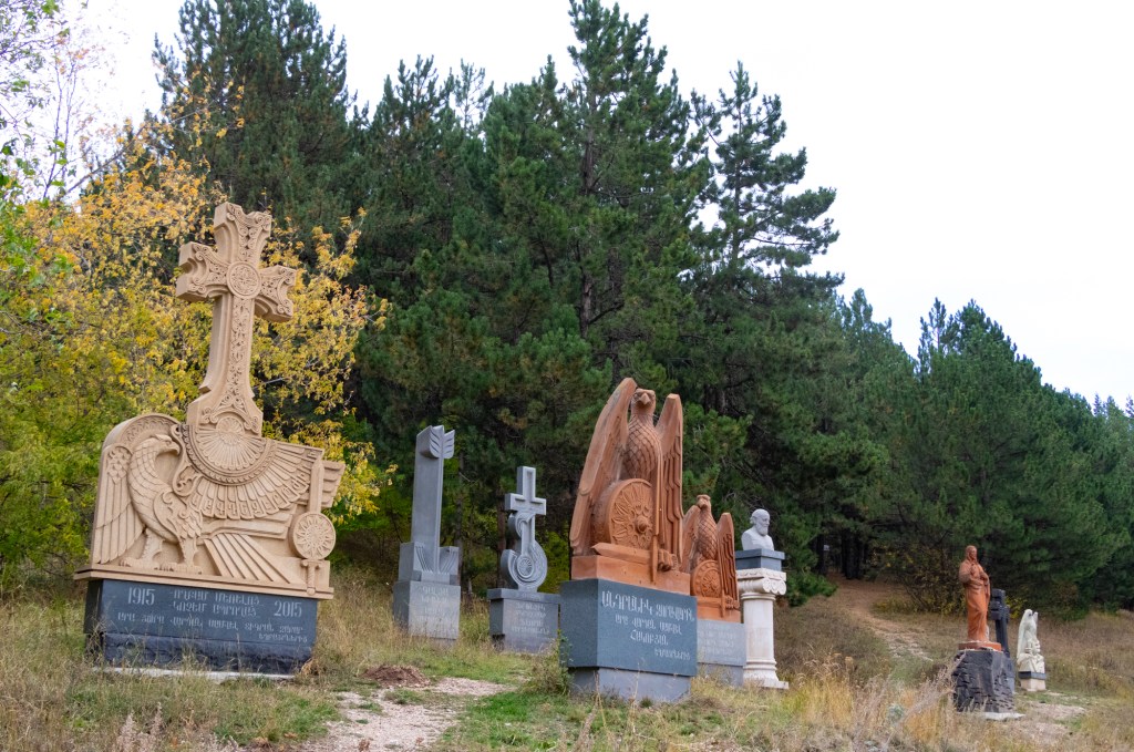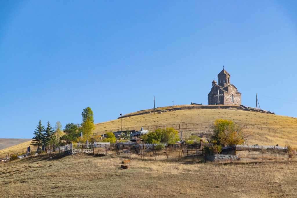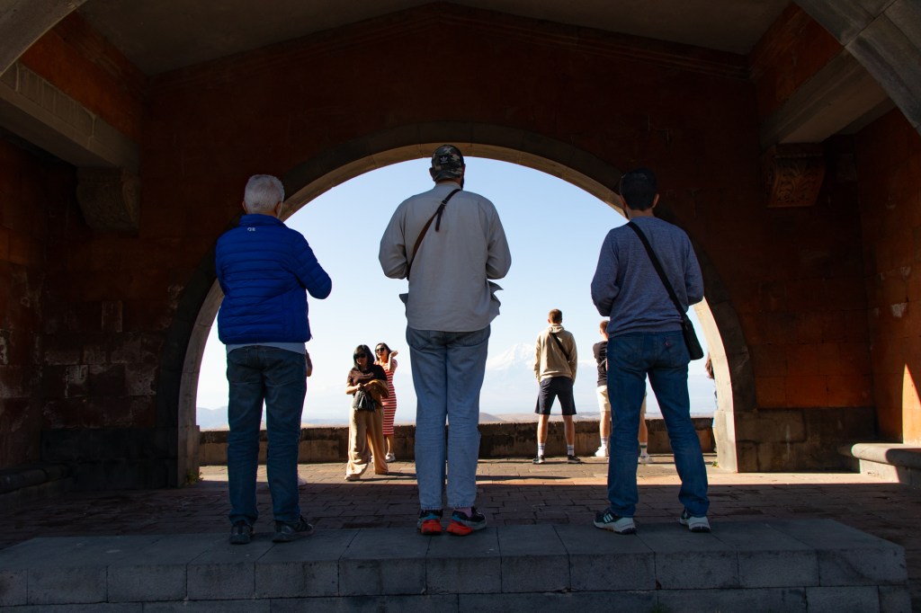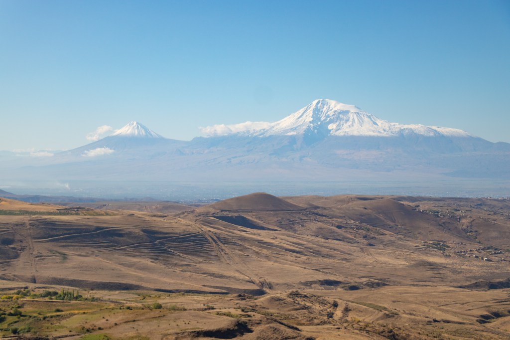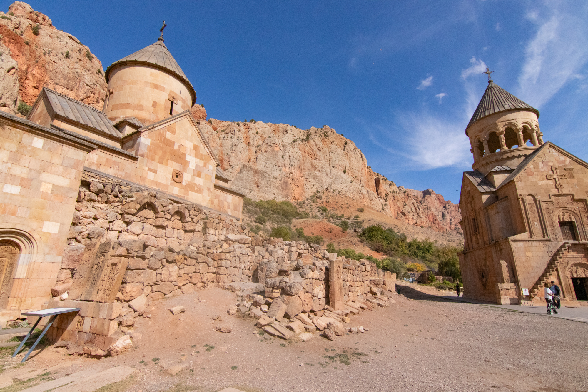 In una splendida soleggiata limpida giornata con ottima visibilità siamo diretti a sud mentre l’Ararat diventa sempre più grande. Lasciamo l’autostrada diretti a Khor Virap e dopo una breve pausa “Caffè e Frutta secca”, raggiungiamo il monastero con la vista mozzafiato verso la pianura e le montagne in direzione Est, ma soprattutto sull’Ararat ad Ovest, oltre all’orribile recinzione che separa la Turchia dall’Armenia. La Turchia si trova a duecento metri, sull’altra sponda del fiume Aras. Molti i visitatori ma c’è comunque tranquillità, simpatico il siparietto della scolaresca, guidata dalle maestre, che viene ricevuta dal prete, siparietto al quale abbiamo l’immenso piacere di assistere, pur senza capire i dialoghi e gli insegnamenti. Bellissimo il monastero e le vedute che offre, bello lo scorcio dalla collinetta che lo sovrasta interessante anche la vista sul cimitero che si trova nei pressi del posteggio e che visiterò prima di ripartire, constatando la differenza con altri cimiteri sino ad ora visti in giro per il mondo e restando “colpito” dalle tombe dei militari morti nelle diverse guerre che hanno coinvolto questa nazione, in particolare negli anni tra il 2016 ed il 2020. La Turchia è vicina, mentre l’Azerbaijan è a soli pochi km più a sud.