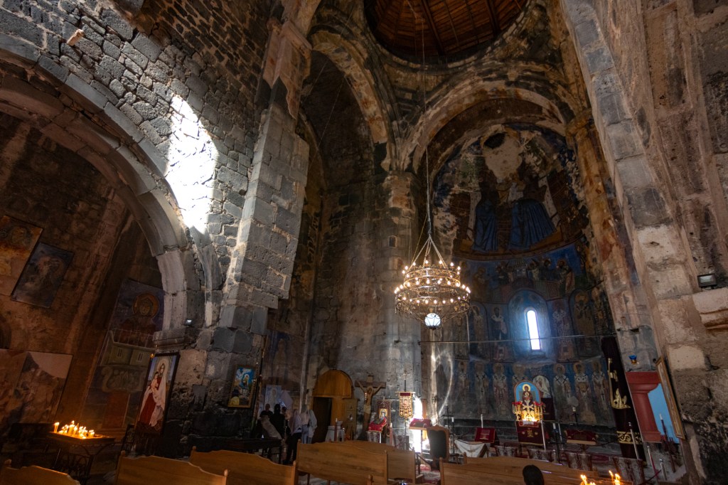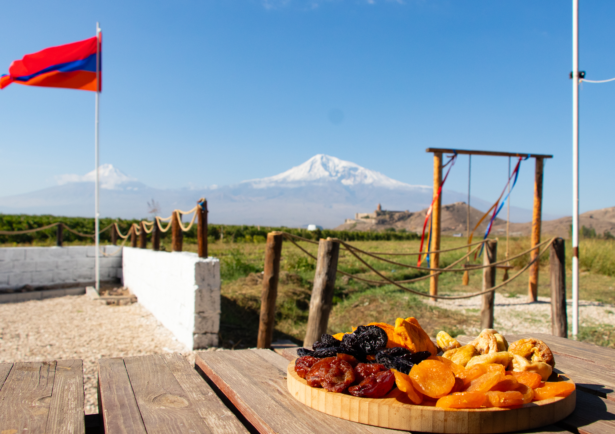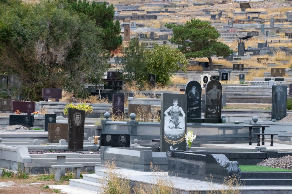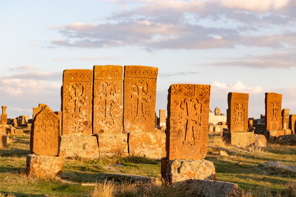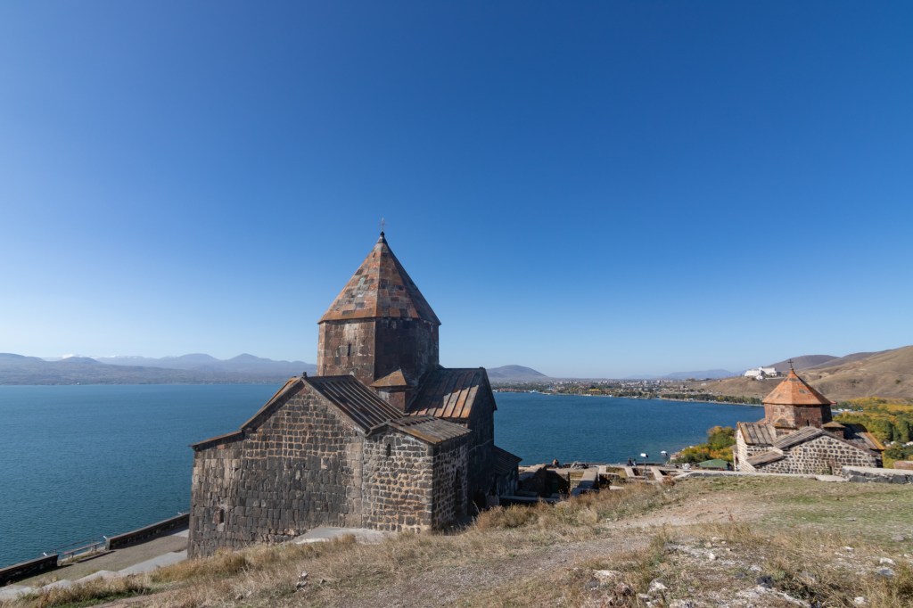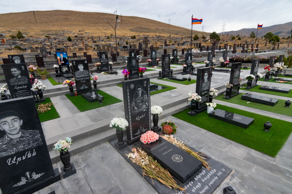 In una splendida soleggiata limpida giornata con ottima visibilità siamo diretti a sud mentre l’Ararat diventa sempre più grande. Lasciamo l’autostrada diretti a Khor Virap e dopo una breve pausa “Caffè e Frutta secca”, raggiungiamo il monastero con la vista mozzafiato verso la pianura e le montagne in direzione Est, ma soprattutto sull’Ararat ad Ovest, oltre all’orribile recinzione che separa la Turchia dall’Armenia. La Turchia si trova a duecento metri, sull’altra sponda del fiume Aras. Molti i visitatori ma c’è comunque tranquillità, simpatico il siparietto della scolaresca, guidata dalle maestre, che viene ricevuta dal prete, siparietto al quale abbiamo l’immenso piacere di assistere, pur senza capire i dialoghi e gli insegnamenti. Bellissimo il monastero e le vedute che offre, bello lo scorcio dalla collinetta che lo sovrasta interessante anche la vista sul cimitero che si trova nei pressi del posteggio e che visiterò prima di ripartire, constatando la differenza con altri cimiteri sino ad ora visti in giro per il mondo e restando “colpito” dalle tombe dei militari morti nelle diverse guerre che hanno coinvolto questa nazione, in particolare negli anni tra il 2016 ed il 2020. La Turchia è vicina, mentre l’Azerbaijan è a soli pochi km più a sud.