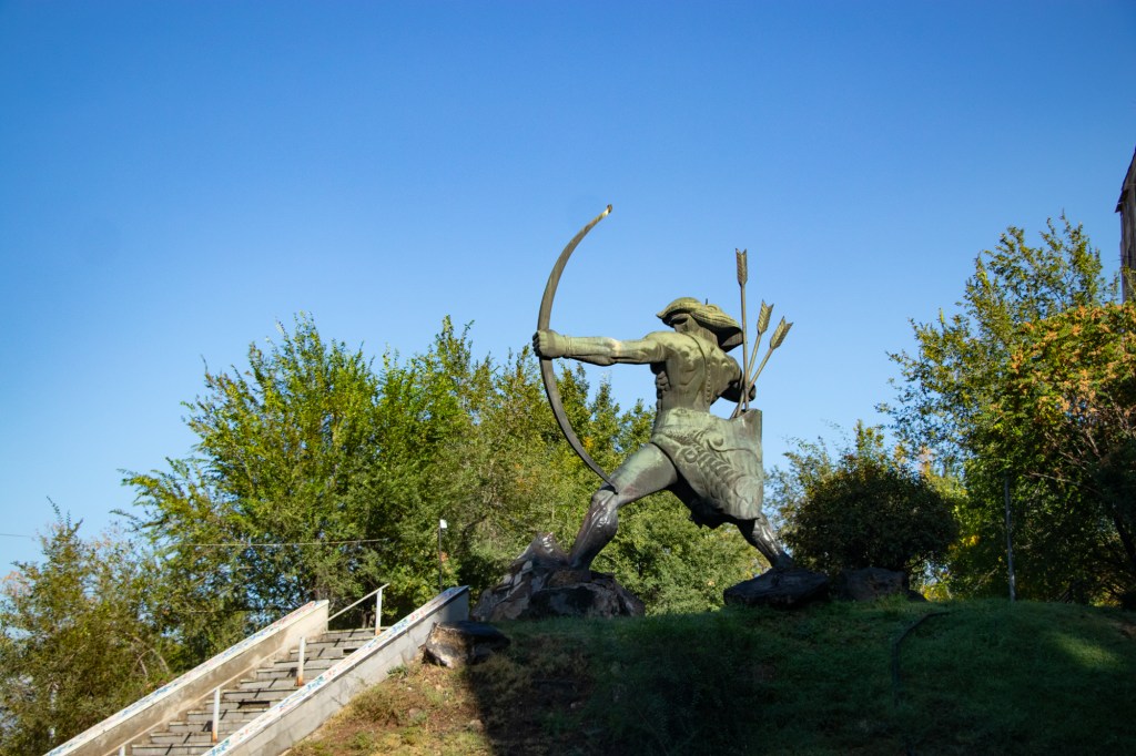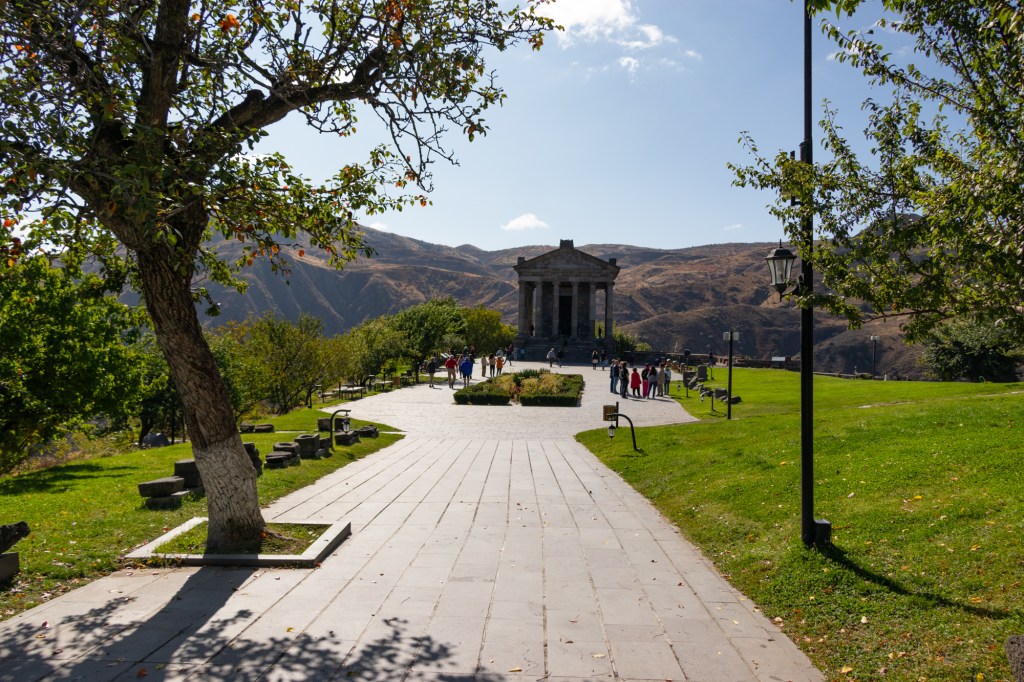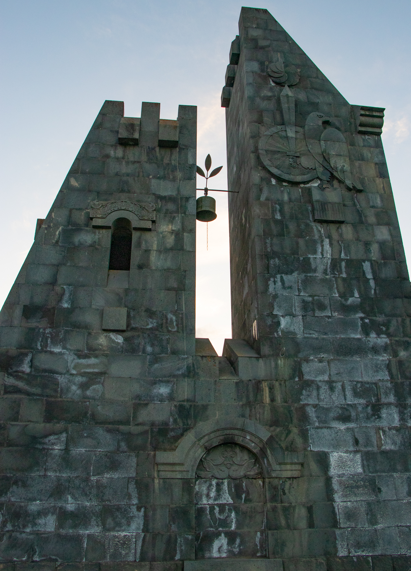 Alle 9.15 arriva Davit e partiamo, in una splendida giornata di sole, diretti a Garni e Geghard. Una breve pausa panoramica al Charent’s Arc per ammirare, per la prima volta integralmente, lo splendido il Monte Ararat, parte della cultura Cristiana ed Armena, ma fagocitato dalla nazione turca che rinnega il 1915 sognando velatamente di continuarne l’opera creando una unica nazione dai Dardanelli al mar Caspio.