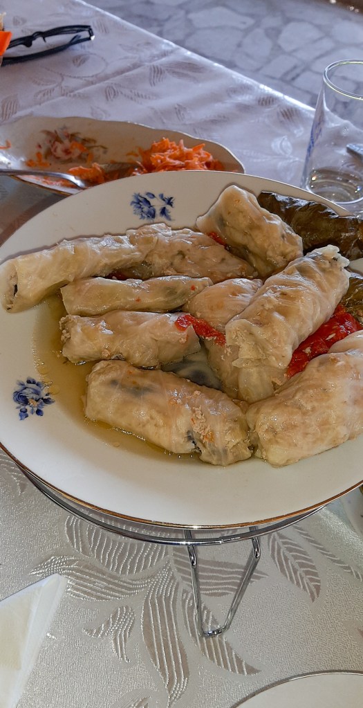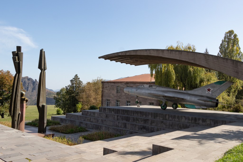 Alaverdi, che abbiamo ammirato ieri sera e questa mattina dalla finestra della camera, è la prima destinazione del programma odierno; la raggiungiamo poco prima delle 10 dopo che ho insistito con l’autista per deviare sino al “Ponte di Sanahin” che si trova nel centro abitato nei pressi della vecchia fabbrica di rame. È un ponte in pietra costruito nel XII secolo, qui ho anche il tempo di osservare alcuni particolari del vecchio sito industriale prima di avviarci verso il Monastero di SANAHIN. Oggi è lunedì, giornata in cui molti uffici pubblici e siti turistici restano chiusi, il sito è aperto e visitabile, fortunatamente ci sono anche pochi venditori di souvenir. Visitiamo il sito in totale solitudine e tranquillità, Bellissimo! All’uscita Assunta riesce a finanziare i due rivenditori di Souvenir per i quali la giornata alla fine avrà un suo perché 😊. Saliti in macchina chiedo all’autista una breve sosta al vicinissimo Museo Mikojan (chiuso) per un paio di fotografie dall’esterno, dove è esposto un vecchio MIG-21. Poi il viaggio prosegue alla volta di Fioletovo, uno dei due villaggi rurali abitati dai “Molokani” una piccola comunità di origine e lingua russa; qui ci fermiamo brevemente per un Te ed alcuni dolci oltre ad una breve passeggiata nei dintorni dell’abitazione del nostro ospite Mihail. Appena ripartiti Davit ci chiede di poter far volare il suo Drone per un filmato, così approfitto per fotografie in un ambiente bucolico assistendo all’incontro tra Mucca e Drone. Ancora 85 km prima di raggiungere Gyumri, ma lungo il percorso chiedo di effettuare ulteriori 2 soste extra: una brevissima visita ad un altro “mausoleo del Genocidio del 1915” piccolo e particolare, ed al vasto al cimitero di Shirak che ho letto avere un settore “militare” ed uno dedicato alle vittime del terremoto del 1988. Trovo il settore militare e non l’altro, poi si riparte. L’attraversamento di Gyumri è difficoltoso a causa di cantieri stradali, ma riusciamo comunque a raggiungere il Monastero di Marmashen, dove Davit rimane stupito quando, arrivando e parlando con lui della strada, gli anticipo che: “dovremo girare a sinistra, scendere per alcuni tornanti prima di arrivare al Monastero nei pressi del fiume”. Stupito mi chiede “come faccio a sapere del Fiume?” Facilissimo: quando viaggio cerco di informarmi su dove vado e cosa visito, altrimenti come faccio a chiedere le “deviazioni mirate” che ho chiesto anche durante il viaggio? Il Monastero è interessante nonostante i notevoli i danni, non riparati, dal terremoto del 1988, meno interessante è l’insistenza ed esuberanza della unica venditrice di Souvenir che cerca di accalappiare Assunta con prezzi anche quadruplicati rispetto agli altri siti già visitati. La visita sarà breve, per il rumore di un cantiere per la pavimentazione del posteggio e di alcuni percorsi pedonali oltre che per il vento che si sta rafforzando. Poi raggiungeremo Gyumri! A nostro avviso meriterebbe più dell’oretta libera che ci è stata lasciata per visitare La Piazza Vartanants, le due chiese (una è la cattedrale) che vi si affacciano e per una passeggiata sulla Abvoyan str, fortunatamente c’è anche il tempo per un caffè all’ AREGAK, la pasusa merita anche per lo scopo benefico del locale. Avendo tempo sappiamo già che ci sarebbe molto altro da vedere, ma “Tempus Fugit“: abbiamo raggiunto l’albergo, depositato i bagagli ed in 30 minuti siamo stati pronti per andare alla Cena prevista al NOR ALEPPO, buona cena e poi veloce rientro all’albergo.