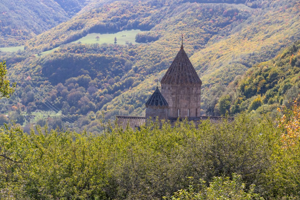 6 Ottobre – Venerdì La solita sveglia vibrante delle 7.00, ma riposiamo ancora un po’ prima di scendere per colazione, poi alle 9.15 arriva l’autista, oggi si parte diretti a sud, sino a Goris che raggiungeremo dopo alcune visite per strada. Inizialmente non era prevista questa tappa, l’ho fatta inserire io per vedere il vicino famoso monastero ed alcune altre località lungo il percorso. L’ambasciata italiana sconsiglia spostamenti in questa regione, Syunik, ed i fatti del 20 settembre precedente mi hanno fatto temere un cambio di programma, ma Arpine, la referente dell’agenzia locale, mi ha tranquillizzato, “lì non ci sono problemi anche se si trova a 40km dal confine”.