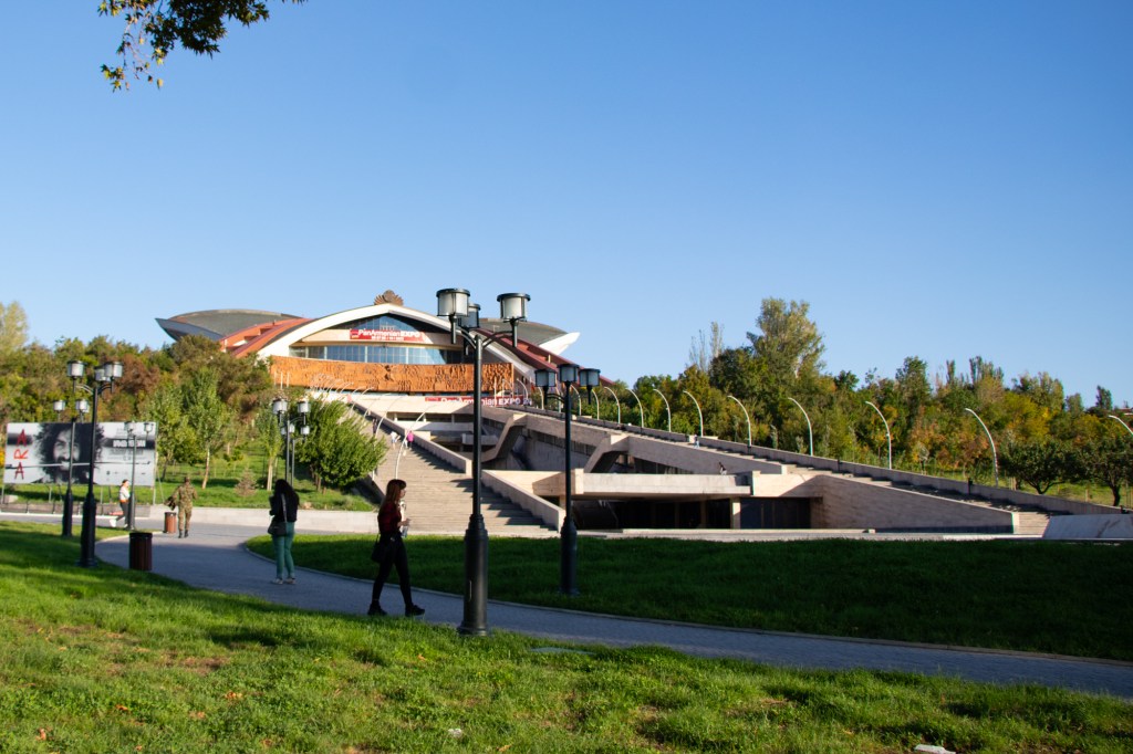 4 Ottobre – Mercoledì Alle 7 di mattina “vibra” la sveglia. E’ la metropolitana che inizia le corse alle 7.00 passando sotto il monumento Cascade che si trova accanto all’albergo, la nostra sveglia è invece fissata per le 8.00. Scendiamo a colazione in anticipo sul previsto per consumarla in una affollata saletta con pochi tavoli e tanti ospiti che parlano una lingua dapprima accantonata in un meandro tra le mie sinapsi e man mano più familiare fino a pronunciare un “Dobre Urto” (Buongiorno in russo). Assunta viene subito presa in simpatia da una addetta al servizio colazione non appena questa scopre che è italiana. Scandisce un bellissimo “buongiorno” certamente l’unica parola italiana che conosce, ma che è contentissima di pronunciare, seguono poi le altre in inglese. Alle 9.30 arriva Davit con un collega, dice che guidare e contemporaneamente spiegare la città a Yerevan è impossibile così, invece, si può dedicare a noi mentre il collega guida e subito partiamo per le visite: la statua della Madre Armenia ed il panorama, coperto dalle nuvole che dovrebbe includere l’Ararat, ripartiamo subito diretti al monumento “Cascade” saltando il Parco della Vittoria , considerata la distranza pensavo che da lì avremmo visitato “Cascade” scendendo a piedi invece ci ingolfiamo nel traffico. Pochi minuti a disposizione al giardino nei pressi del “Cascade”, per ammirare velocemente alcune delle statue esposte e la scalinata dal basso, prima di ripartire alla volta di Piazza della Repubblica ed immergerci nel Museo di Storia Armena. Bello il museo dove una dipendendte del museo “giovane e graziosa”, ci spiega approfonditamente la storia ed i reperti esposti; splendidi alcuni oggetti ed in particolare i carri funebri, in legno massiccio, riaffiorati dal Lago Sevan. Terminata questa visita raggiungiamo Davit che ci attende nel posteggio con l’autista per poi accompagnarci direttamente al Ristorante. Lasciata Assunta davanti al ristorante proseguo, con Davit sino ad un Cambio Valute per convertire 300 euro con 129.000 dram, sembra un buon cambio stando a quanto vedrò i giorni seguenti. Svolta questa missione raggiungiamo nuovamente Assunta e ci accomodiamo per un ottimo ed abbondante pranzo in una bella sala. La visita successiva è la Moschea Blu, seguita dal Magazzino GUM non particolarmente interessante, non almeno quanto il limitrofo mercato all’aperto di Frutta e Verdura dove acquistiamo dell’ottima uva. Dopo la veloce visita rientriamo a Piazza della Repubblica per poi proseguire a piedi, attraversando il centro citta e risalendo lungo la Tashir sino a piazza dell’Opera dove rimango “folgorato” leggendo su un manifesto 2 parole in Cirillico che mi sono familiari “Лебединое Oзеро”, la mia reazione colpisce Assunta che mi chiede cosa sia successo, le indico il tabellone con le scritte in Armeno, Russo ed Inglese, “Swan Lake” ….. il nome Tchaikovsky e l’immagine di una ballerina, nel frattempo leggo le date… 9, 10, 13, 14, 16, 17, 18 ottobre… noi, il 10 saremo a Erevan! Non ci posso credere, da oltre 10 anni attendiamo l’occasione…!