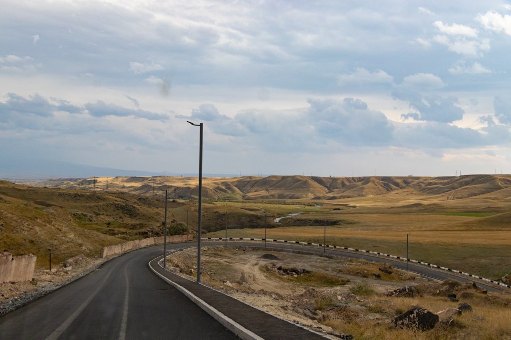 Percorrendo nuovamente la strada principale in direzione Sud osserviamo i carri carichi di angurie che sostano ai bordi della strada per la vendita, poi raggiunta Yeraskh svoltiamo diretti ad Est: 500m a sud c’è il confine (chiuso) con l’Azerbaijan, in linea d’aria ad altri 6km c’è l’Iran ed abbiamo costeggiato per chilometri il confine con la Turchia: due nemici ed un sostenitore. Ora proseguiamo lungo una strada diretta ad est che inizia a salire e che costeggia un terrapieno: il terrapieno è stato eretto nel 2016, quando su quella strada gli Azeri sparavano per tagliare i collegamenti con il Sud-Est dell’Armenia ed il Nagorno-Karabak. Ancora 50km prima di arrivare ad Areni dove ho chiesto una piccola deviazione per vedere una chiesetta, non visitabile, al di fuori del paese prima di raggiungere il più turistico sito di Areni-1. La strada per la chiesetta è sterrata e non c’è nessuno, l’ambiente è molto affascinante: ci fermiamo 15-20 minuti poi ripartiamo alla volta della Caverna con i resti delle più antiche anfore per la conservazione del vino sino ad ora scoperte e dove è stata trovata la scarpetta in pelle n.37 risalente a 7000 anni fa, quella che abbiamo visto al museo di storia Armena di Erevan. Questo sito non mi colpisce particolarmente, ma ci dedichiamo mezzora prima di proseguire lungo una strada sul fondo di una interessantissima gola diretti a sud, al termine della quale, prima di risalire tre tornanti, mi accoglie la bellezza scenica ed architettonica di NORAVANK. Qui la sosta merita tutto il tempo necessario, anche di più, compresa la pausa Toilette 😊. Dopo altri 30km ci fermeremo a Vaik per pranzo, noi ne faremmo anche a meno dato che siamo abituati a mangiare poco per pranzo, ma non possiamo costringere l’autista a fare altrettanto, così troviamo il compromesso: pausa al FOOD COURT un self service con buon assortimento e pulito dove con l’equivalente di 6 euro prendiamo da bere e 2 piatti del menu prima di ripartire alla volta dei 2344m del Passo Vorotan che raggiungeremo dopo altri 30km e dove faremo solo una veloce pausa per 2 fotografie nonostante l’aria pulita e la splendida luce; sono però quasi le 16.00. Ripartiamo mentre 2 aquile volano sopra ed accanto a noi mentre scendiamo. Qualche cantiere per strada e alcune brevi soste prima di raggiungere, verso le 17.20 il sito di Zoras Karer; manca poco al tramonto e si sta alzando il vento; ho dimenticato la giacca a vento in macchina così la visita è veloce perché, quando il sole scenderà proiettando l’ombra della collina sul sito, la temperatura crollerà, così rientriamo velocemente. Passeremo accanto alla Base dei “Peacekeepers Russi” di Sisan di cui si vedono le postazioni e le bandiere percorrendo la strada principale, faremo ancora una pausa al Monumento d’ingresso a Goris con le ultime luci della giornata. Da qui inizieranno ad accendersi le luci della scarsa illuminazione, passeremo davanti ad un’altra caserma usata dai Russi, il tutto osservando parte della piccola città che sembra interessante, prima di raggiungere l’ottimo Hotel MIRHAV, per una notte in una splendida camera. Dopo aver portato le 4 valigie (2 medie e 2 Trolley) ed i 2 zaini al piano superiore decido che dal giorno dopo ne porteremo 1+1 oltre agli zaini e mentre ne discuto con la “Capa” realizziamo che, in 30 minuti, dobbiamo avviarci diretti al ristorante che ci hanno prenotato: oggi la cena è compresa nel programma! Dopo 3km di strada buia nel mezzo di un quartiere di casette, posteggiata la vettura Davit ci fa attraversare una porta sino ad un cortile interno, poi salire una piccola scala e raggiungere il piano superiore dove si apre una graziosa stanza, riscaldata da una stufa a legna, con arredamento tipico ed una tavola apparecchiata; è il ristorante LOBY (Fagiolo in armeno) che fa servizio ristorante solo su prenotazione, prenotazione da farsi almeno il giorno precedente. Ottima e Abbondante la cena! Rientrati all’albergo noi optiamo per una ulteriore passeggiata, dapprima al forno ancora aperto dove ammiriamo il lavoro dalla vetrina, poi proseguendo al buio lungo la strada alberata prima di rientrare. Una splendida Giornata, “stravissuta, stra-ammirata, stra-biliante, cominciata con un’alba timida”.