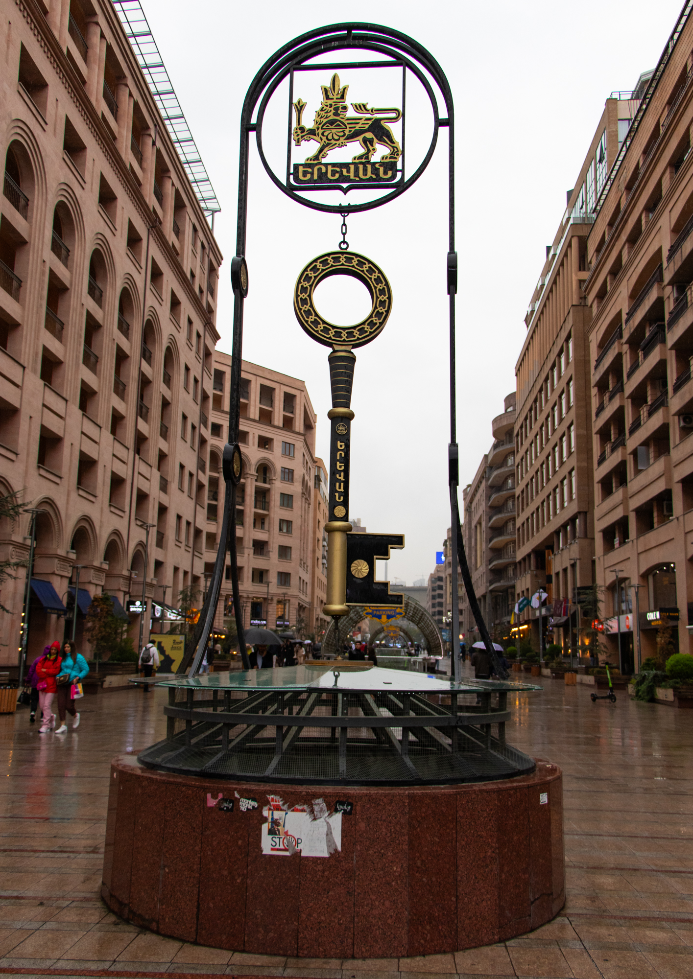 Interessante questo memoriale: scenografico sopra la città con un affaccio a sud, verso l’Ararat il cuore della antica nazione armena dalla quale gli armeni sono stati allontanati mentre tuttora, da altre parti ad est ovest e sud qualcuno li sta tuttora allontanando. Arrivando incrociamo una delegazione, alcuni sembrano politici, altri sono prelati, molti sono giornalisti e fotografi al seguito, ci incrociamo e poco oltre apprendiamo da una turista inglese emozionata che uno di loro era l’Arcivescovo di Canterbury. Terminata questa vista ci facciamo accompagnare e lasciare sulla Isahkyan Str nei pressi del Centro Commerciale “Metronome” da dove rientreremo a piedi. Ho l’appuntamento con la mia versione in lingua armena de “Il Piccolo Principe” la mia collezione aumenta! Il rientro è più lungo del previsto, ho sbagliato strada: all’uscita dal centro commerciale interrato, il GPS ci ha messo più del previsto ad aggiornarsi ed io l’ho notato un chilometro dopo ☹! Assunta, stanca, mi rimprovera e per farmi perdonare ci concediamo una “pausa gelato”. Anche oggi il pranzo è stato abbondante, più di quanto sia il nostro standard, così anche oggi niente cena. Ci resta giusto il tempo per depositare gli acquisti in camera e fiondarci nuovamente verso il Cascade, su per le scale mobili, sino alla penultima terrazza… La “Blue Hour” è passata, ma il panorama no, peccato per quel faro che mi spara dritto nell’obiettivo riducendomi il campo utile alle foto panoramiche; interessante la statua de “I Tuffatori”. Rimarremo lì, in mezzo alla gente, ad ammirare il profilo dell’Ararat e le luci della città per una buona mezz’ora prima di rientrare in albergo e mangiare la buona e profumata frutta seguita dalle prelibatezze del PAPAYA.