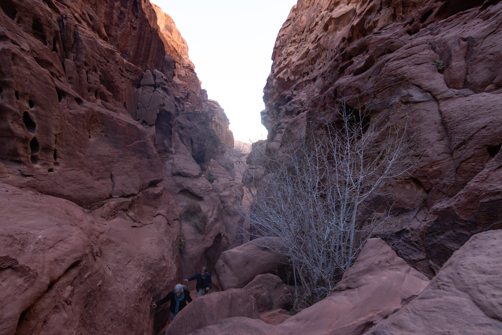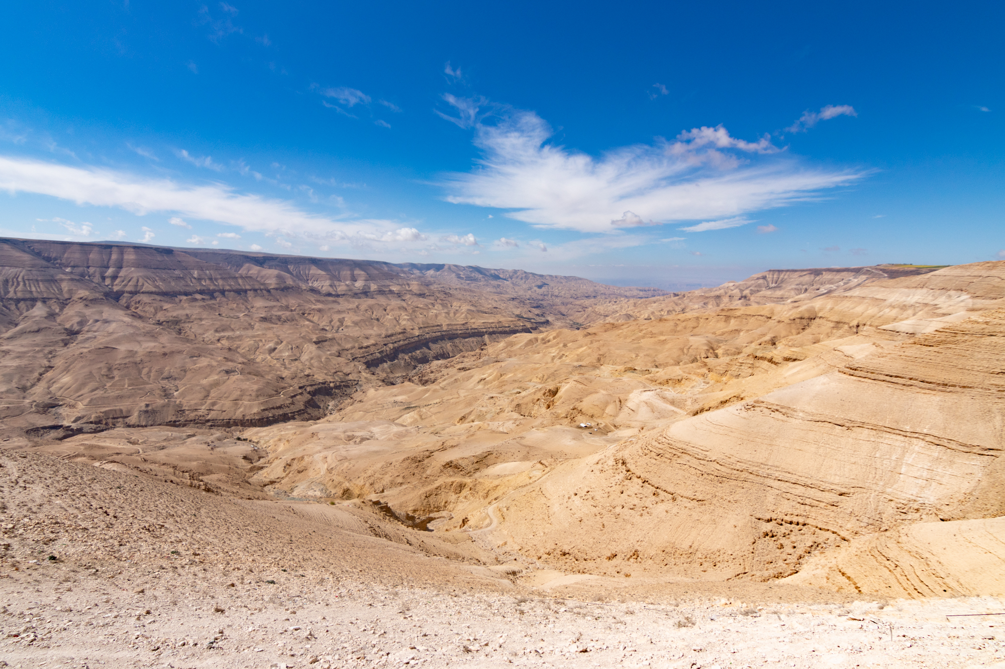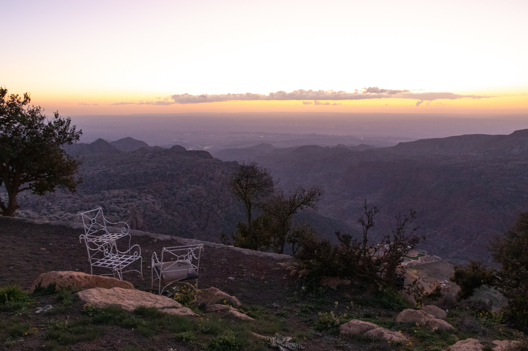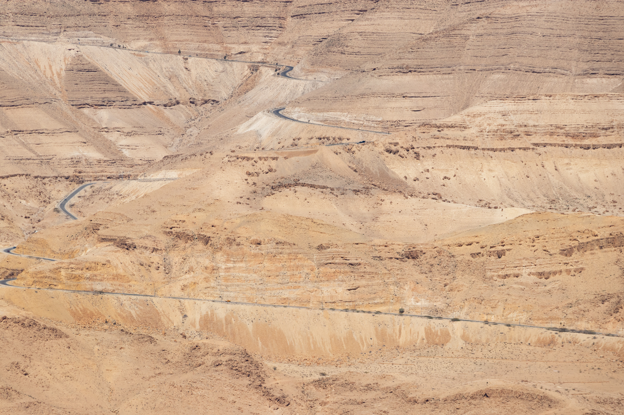 9 marzo, giovedì – Ci svegliamo presto, inizia l’intenso programma su strade sconosciute, in un paese nuovo, con il cambio automatico che mi spaventa ancora. Terminata la colazione, chiusi i bagagli e riorganizzato il mio zaino con l’attrezzatura fotografica carichiamo tutto in bagagliaio, ma con le mie fide Canon800 a portata di mano. Predispongo la mia Dash-Cam, imposto in navigatore che funziona male e per sicurezza attivo anche il mio GPS per registrare le tracce, poi si parte…….. “Inch Allah”. Il programma prevede la prima sosta ad UM AS-RASAS, poi percorreremo la Kings Highway sino a KERAK da dove proseguiremo alla volta di DANA. Arriviamo ad Um As-Raasas verso le 9.30 quando i pochissimi visitatori di una comitiva stanno partendo, batte un po’ di vento e nonostante il sole fa ancora freschetto. Trascorriamo un’ora circa visitando il sito e saltandone alcune piccole parti, poi una pausa all’adiacente cimitero islamico prima di riavviarci. In pochi km raggiungiamo la strada principale e dopo una ulteriore manciata di km iniziamo la discesa al Wadi Mujib: qui la sosta è d’obbligo! Sosta che bisseremo anche sul versante opposto, apprezzando il panorama dai due versanti e bevendo un tea alla seconda sosta. Guideremo per altri 50km prima di raggiungere Kerak, percorrendo una strada scorrevole con l’unico rallentamento a Rabba. A Kerak mi distraggo e, saltata la deviazione per la città alta, devo fare inversione, perdo però solo pochi minuti. Troviamo subito un posteggio “riservato” tatticamente, con delle sedie, dai “Buttadentro” di una trattoria; ne approfittiamo e promettiamo di tornare a mangiare da loro dopo la visita al castello. Tanto il castello che la trattoria risulteranno deludenti, così, prima di ripartire faccio una breve deviazione fotografica nei viottoli retrostanti, notando un ristorantino molto più accattivante… peccato! Comunque abbiamo perso poco tempo e speso ancor meno. Lungo il percorso una deviazione per lavori ci farà attraversare alcuni villaggi che altrimenti sarebbero rimasti esclusi dal percorso e dopo altri 85 km raggiungiamo finalmente lo Jabal Dana hotel. Il sole è ancora alto, e, mentre stiamo scaricando i bagagli un responsabile dell’“hotel” ci raggiunge chiedendoci se abbiamo una prenotazione, alla mia risposta affermativa mi dice un nome che non è il mio sostenendo che è l’ultima camera rimasta, gli rispondo semplicemente che la conferma della prenotazione è in valigia, così lui, perplesso, mi accompagna alla camera. Raggiunta la camera e posati i bagagli che NON intendo riprendere, gli mostro la Mail inviata il giorno prima con cui comunicavamo l’ora di arrivo, che sostiene di non aver ricevuto, e mentre ancora ribadisce di non trovare la mia mail, gli metto in mano la “Conferma Prenotazione” ricevuta 2 mesi prima da loro (in arabo) avuta dal sito di prenotazioni online oltre alla copia della Mail con la quale, confermando la prenotazione, rispondevano a mie richieste integrative. A questo punto l’uomo, rassegnato, non dice più nulla e riparte lasciandoci appezzare il panorama sulla vallata sottostante. Sottostante nel senso esatto del termine! Non è propriamente un Hotel, direi più un gruppo di Bungalow in muratura, alcuni ancora in costruzione, molto semplici e piccoli con un riscaldamento “elettrico” molto debole; di Hotel ha solo il prezzo, ma il panorama ripaga tutto. All’approssimarsi del tramonto crolla la temperatura e s’alza il vento, così raggiungiamo la “sala comune” per la cena, protetti da giacca a vento e berretto di lana. Ceneremo affacciati ad una parete a vetri orientata verso il tramonto, cena self-service, abbondante ed interessante, riscaldati da stufe a gas. La notte sarà freddina in attesa del panorama mattutino che, da solo, ripaga della scomodità della notte.