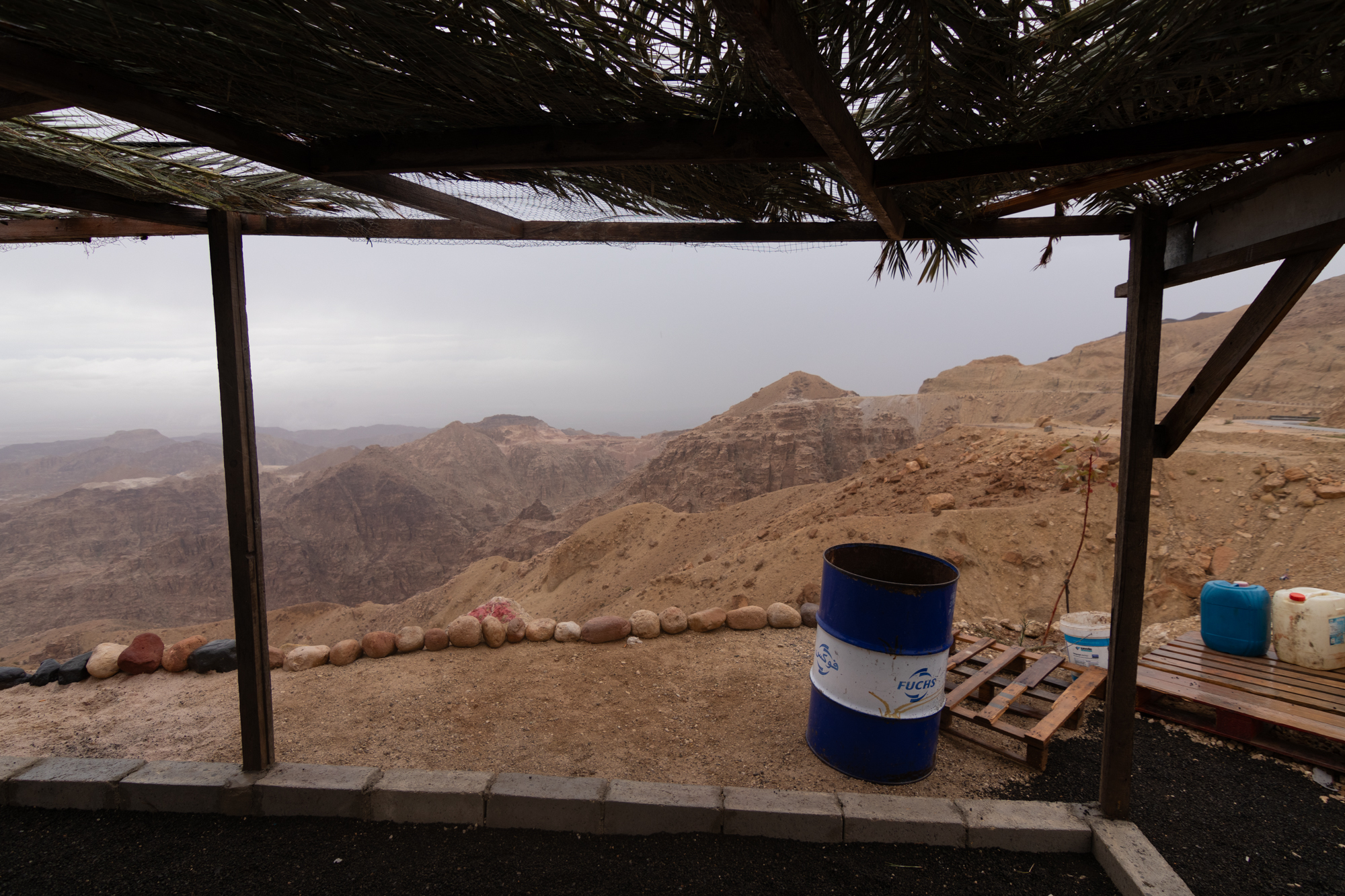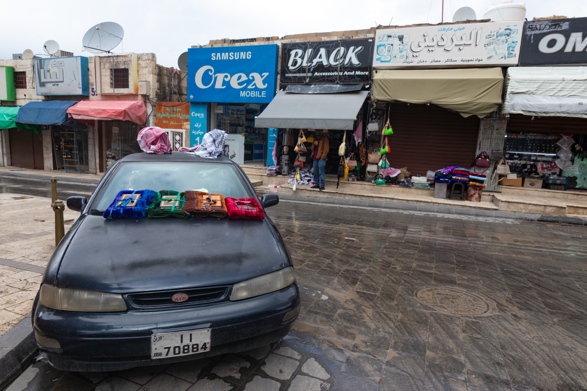 14 marzo Martedì Il nostro programma in origine ipotizzava un’ulteriore passeggiata a Petra prima di raggiungere Piccola Petra e poi partire, ma il cielo e le previsioni meteo ci hanno convinti a modificare i piani. Dopo colazione, caricati a bagagli e partiti, abbiamo appena il tempo per 2 foto panoramiche della Valle di Petra prima che il cielo cominci a liquefarsi! A Piccola Petra abbiamo ammirato l’ingresso dalla macchina, senza scendere dato il diluvio, siamo quindi ripartiti diretti a Shobak che abbiamo trovato chiuso. A quel punto, sotto nuvoloni intensi e pioggerella intermittente abbiamo optato per raggiungere il Mar Morto e costeggiarlo per circa 50km prima di risalire alla volta di Madaba e pernottare al BLACK IRIS 2. Prima di cena una Interessante passeggiata dall’albergo al centro città ci ha permesso di ammirare una serie di negozietti al di fuori del giro turistico, poi la sosta ristoratrice per una Cena interessante allo JAW ZAMAN, un ristorante libanese in centro città, prima di un’altra passeggiata notturna.