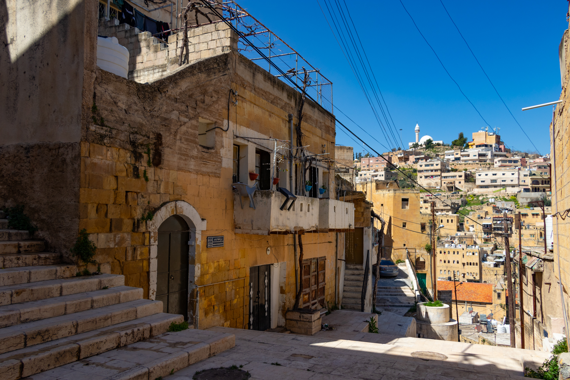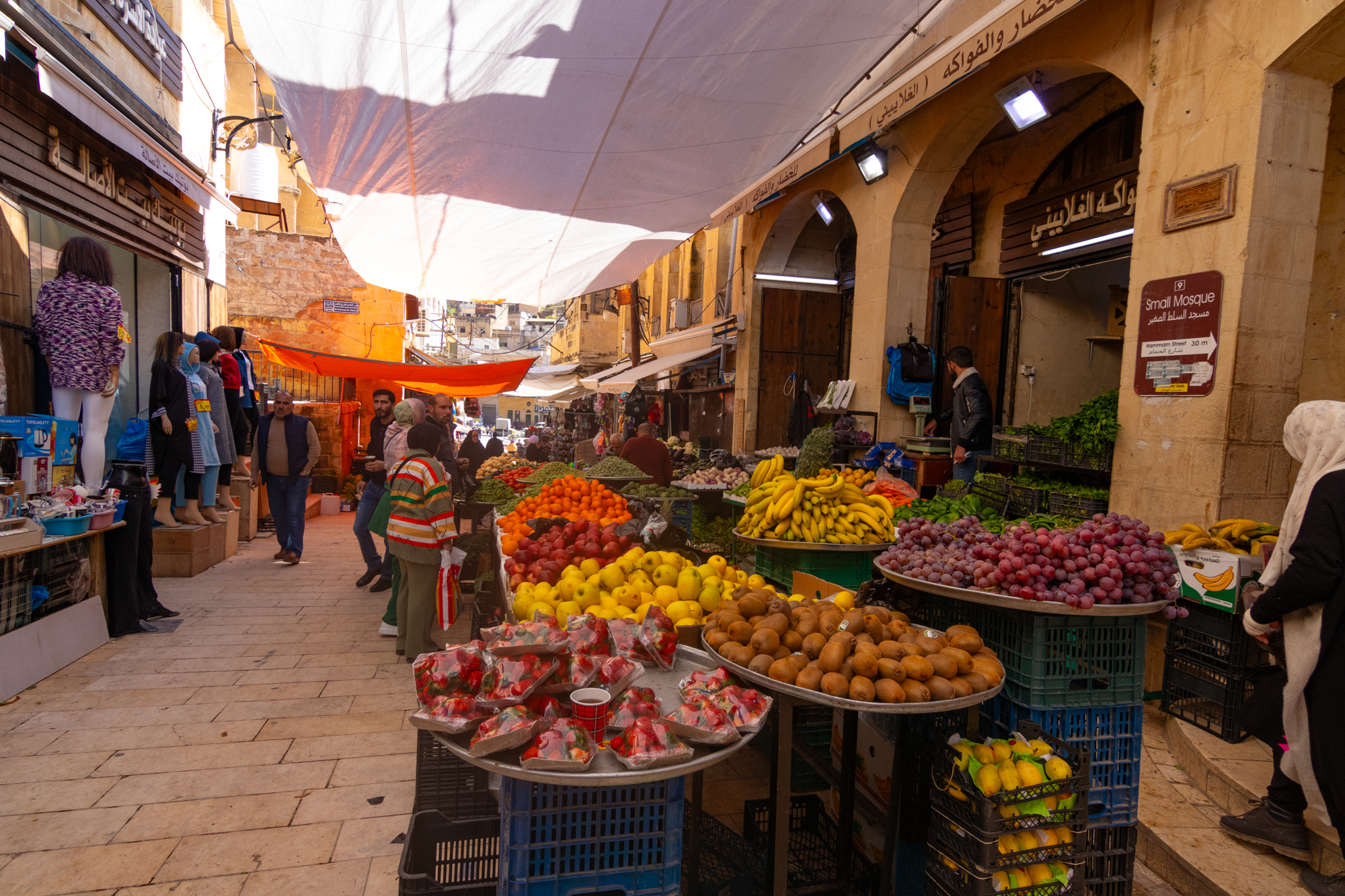 16 Marzo Giovedì Poco costa, poco offre. Anche la colazione appare minimalista e così, dopo la minima colazione, prendiamo i dolci che ci siamo comprati la sera prima e partiamo alla volta di Al Salt. Si tratta di una piccola cittadina, a circa 30km ad Est di Amman, pur inserita nella lista del Patrimonio Unesco è ancora poco conosciuta. Ci si arriva facilmente e si posteggia comodamente nel parcheggio pubblico interrato e gratuito, che si trova sotto la piazza principale. L’ingresso al posteggio è proprio davanti al Museo archeologico, sul lato opposto della strada. Al nostro arrivo il posteggio appare semivuoto, forse poco conosciuto, certamente non pubblicizzato. Dal posteggio risaliamo subito al piano superiore che è un parco/giardino, da dove arriva musica, ci ritroviamo nel mezzo di un evento che consiste nella presentazione di prodotti tipici Alimentarie d Artigianali, prodotti da donne ed associazioni. dolcetti che acquistiamo e mangiamo immediatamente sono ottimi! Da qui, dopo un breve giro si dirigiamo subito al vicino Souk di Hamman Street ed iniziamo a camminare, senza meta, ammirando tutto ciò che troviamo: banchetti di Verdura e Frutta, Negozi di Profumi, e di ogni altro tipo, in alcune vie laterali panifici, calzolai, e tanta gente, la sensazione è gradevole, si gira facilmente, poi raggiungiamo la piazza Al-Ain su cui si affaccia la Grande Moschea e nella quale alcuni uomini sono intenti ad un gioco di società, qui faccio attenzione a non fotografare, sono tolleranti, ma intuisco come preferiscano evitare le immagini che posso prendere. Ci accomodiamo anche noi su una panchina, guardando i dintorni prima di avviarci in salita, diretti alla chiesa ortodossa di San Giorgio, nei pressi della quale faremo una prima sosta, per un Te. Una cittadina interessante. Dopo la prima pausa decidiamo di proseguire la passeggiata percorrendo le stradine più alte per ammirare la cittadina dall’alto. Il centro storico sorge infatti al centro di una conca tra 3 colline e gli edifici storici sorgono sulle pendici delle tre colline da dove, da alcune terrazze e strade, è possibile ammirare il panorama ed il profilo degli edifici. È patrimonio UNESCO proprio per l’architettura dei vecchi edifici, in stile turco. Dopo un primo giro panoramico scendiamo nuovamente alla piazza principale e la piazza Al-Ain dove decidiamo di entrare in un Caffe che ci attrae, l’Akthams 1881. Saliamo una stretta scala attraversando un ingresso quasi nascosto e raggiungiamo il primo piano, da qui un’altra scala risale alla terrazza panoramica affollata di ragazze in abiti occidentali e tradizionali che fumano il narghilè. Decidiamo di fermarci al 1’ piano dove si affacciano diverse stanze, tutte diverse una dall’altra, ne scegliamo una più tranquilla e che si affaccia sulla piazza sottostante, ci accomodiamo e salutiamo, ricambiati, le due ragazze sedute ad un tavolo che conversano fumando il narghilè ed hanno “accomodato” un bambino sul tavolo. Ordino al banco e veniamo subito serviti. L’ambiente è gradevole e particolare; la scena delle due ragazze con il “bambinello” sul tavolo mi ispira, così mi faccio coraggio e chiedo se parlano inglese… tedesco… od altra lingua a me nota. Negativo! Parlano solo arabo, ma sono sveglie e curiose come scoprirò dopo, quando una di loro mi si avvicinerà offrendomi il suo cellulare con il traduttore attivato 😊 allora si, iniziamo la conversazione! Chiedo se posso fotografare, avvisandole che apparirebbero anche loro nella fotografia. Si meravigliano della mia richiesta e mi rispondono di si, allora scatto, e mostro loro la foto così rompiamo il ghiaccio e con l’ausilio dello smartphone ci intratteniamo in una conversazione digitate nel corso della quale riescono a sorprendermi ulteriormente con un apprezzamento ai miei occhi 😊. Trascorriamo così in tranquillità una quarantina di minuti, poi le salutiamo, paghiamo e ci avviamo. Sono ora alla ricerca di una Libreria nella speranza di trovare il mio Piccolo Principe in arabo, la ricerca è vana, al contrario Assunta riesce a trovare negozietti di bigiotteria e dolci ovunque. La disponibilità delle persone è notevole, solo uno, in tutta la giornata, mi negherà il permesso di fotografare, Molti si fermeranno, per non disturbare, quando vedono che sono intento a catturare un’immagine, altri ancora mi chiederanno incuriositi cosa sto fotografando. Bella Gente, bell’ambiente! Nel frattempo, si sono fatte le 14 e la pancia inizia a reclamare, troviamo un ristorantino accanto al museo Archeologico e risaliamo le scale sino all’ingresso dell’ AL GHERBAL, qui ci fanno accomodare e ci lasciano scegliere la saletta ed il tavolo dove accomodarci: siamo soli, il ristorante e tutto per noi così ci accomodiamo in una saletta che immette su un terrazzino affacciato sula piazza, con un sole splendente ed una vista che si può ammirare dal tavolo, senza alzarci. Il pranzo sarà Strepitoso: Da Vedere e da Gustare. Ci rimane così ancora tempo prima di partire, il posteggio chiude alle 18 e lo raggiungiamo poco prima, in tempo per ammirare la manifestazione della mattina i cui banchetti sono ancora li, ma dove a gente è aumentata ed alcuni suonano e ballano. Rientreremo in albergo dopo le 19, mangeremo un po’ di frutta che abbiamo acquistato prima di coricarci. Domani sveglia all’alba e partenza mattutina! Abbiamo anche parlato nuovamente con la Receptionist che ha confermato: alle 7.00 i nostri pacchetti colazione da asporto saranno pronti al banco Reception!