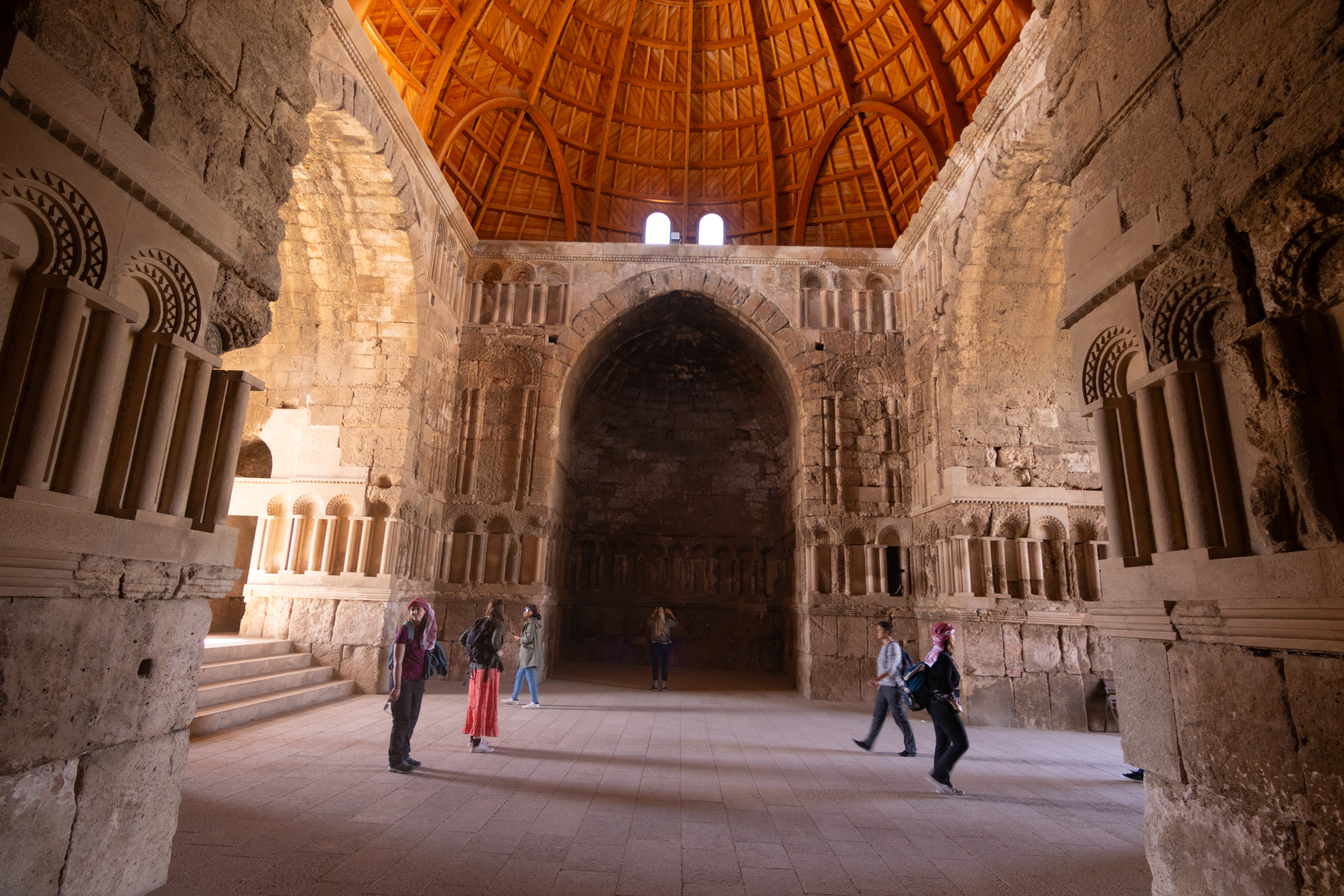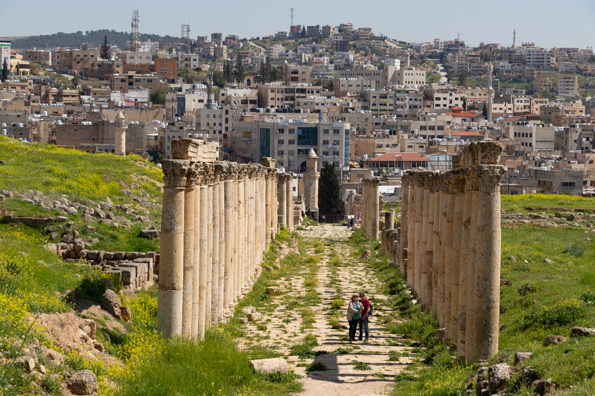 17 Marzo Venerdì Poco costa, poco offre l’albergo. Anche il gatto aveva capito che la colazione la servono dalle 9 alle 10, ma quando all’arrivo avevo chiesto espressamente se “fosse possibile avere un “Cestino Colazione” da asporto, considerando che oggi intendevamo partire alle 7 di mattina”, la Receptionist ci aveva risposto positivamente per 2 volte, confermandoci, anche la sera precedente, che alle 7 di oggi avremmo potuto ritirare i cestini colazione direttamente alla reception. Così, quando alle 7.05 raggiunta la reception per partire alla volta di Um El-Jimal abbiamo chiesto i Cestini Colazione il Portiere del turno notturno, seccato, ci ha risposto che “La colazione si serve dalle 9 di mattina” La seccatura maggiore è stata la nostra, spiegando il fatto e gli accordi pregressi a quel punto l’omone della reception che ha quindi affermato che “solo in quel momento ha letto l’avviso della collega, ma se attendevamo le 9 avremmo potuto fare colazione”. Ringraziandolo l’ho salutato chiedendo un appuntamento con il Manager per la sera, al nostro rientro, poi Via a pancia vuota, verso Um el-Jimal! Con la colazione già pagata! In questo caso il “Buongiorno” non si è visto dal mattino perchè la giornata è proseguita migliorando! Abbiamo raggiunto Um El-Jumal alle 8 di mattina e ci siamo rimasti sino alle 11, durante quelle tre ore siamo stati gli unici visitatori del sito. Poi, rientranti al rientro al Centro Visite per riprendere la macchina, i 3 impiegati dell’ufficio ci hanno offerto un Te. Um el-Jimal evidentemente non è ancora incluso nei percorsi turistici; certamente non è grande e scenografico quanto Jerash, ma è più vasto di Um As-Rasas e più interessante. Da quanto ho appreso ci stanno ancora effettuando scavi e ricerche. Era una città romana, costruita in basalto scuro come Al-Azraq, distrutta da un terremoto e poi abbandonata. Vasta con strutture molto fitte ed alcuni scorci particolari. Visitarla da soli, con calma dedicando a questo 3 ore senza altri turisti in giro, merita l’alzata mattutina ed i 70 km di strada scorrevole. Da qui per raggiungere Jerash si percorrono altri 70km attraversando paesaggi interessanti. Jerash è parso il sito più affollato di tutto il viaggio, bello sì, ma a volte a Venezia trovo meno gente e posteggio più facilmente! Il percorso di rientro è stato gradevole e, non avendo trovato un ristorante decente abbiamo fatto una scelta meno turistica: raggiunto direttamente il AREFA MALL, abbiamo acquistato un po’ di alimentari e frutta poi abbiamo visitato la pasticceria all’ingresso dello stesso per i dolci, per rientrare in albergo e cenare in tranquillità, se tranquillo può definirsi il pernottare in un albergo dove si festeggiano 3 matrimoni in contemporanea su piani diversi 😊. Molto interessanti gli abiti delle Spose!!!