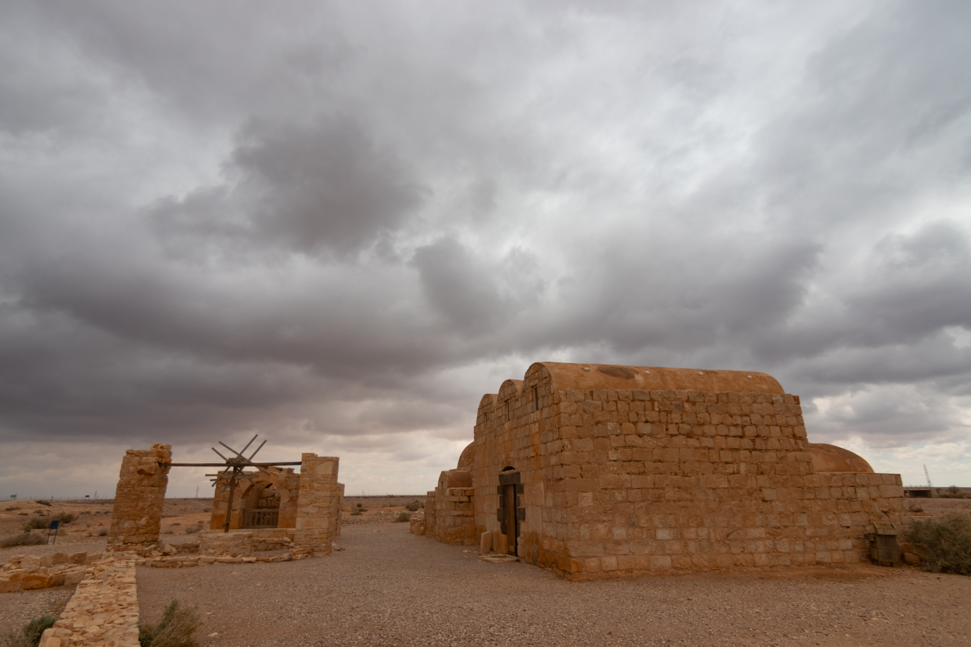 15 marzo Mercoledì Oggi sarà uno dei percorsi più lunghi del viaggio: visiteremo i Castelli del Deserto per poi raggiungere Amman. Partiremo verso le 9.00 diretti prima ad Al–Khrana con tanto vento e pochi turisti, poi visiteremo Qsar Amra: un vero gioiello con i suoi affreschi unici. La sosta successiva è Al-Azraq. Quindi, avendo ancora tempo cercheremo di raggiungere anche Al-Usaykhim, ma, le piogge del giorno prima hanno danneggiato parte della strada sterrata costringendoci così ad abortire il tentativo a soli pochi km dalla meta. Decidiamo a questo punto di iniziare il percorso che ci porterà ad Amman. Appena passata Russeifa, il concetto “fin qui tutto bene” non ha più senso: entrati nell’area di Amman iniziano le deviazioni per cantieri che ci portano fuori dalle strade principali, su e giù per “Discese Ardite”, ma senza “le risa di te”, e poi le “risalite” e le curve secche in un traffico di macchine che ci avvolge da tutti i lati, tranne sotto e sopra. Ed allora decido: guido come loro, anche se la MG che mi hanno dato non ha cambio manuale e nemmeno potenza: guido però deciso, mentre Assunta, impietrita, smette di filmare, ora guaisce pure il suo cellulare! “Tutto Bene!” Dopo aver passato il GRA e la Circumvesuviana, ed alcune strade in Romania, sono solo passato al “livello superiore” del Videogioco. Anche il ghiaccio ed il vento Islandesi ora sembrano bazzecole! “E’ andato Tutto bene!” Abbiamo raggiunto l’albergo The Castle! Dove però non tutto andrà bene! Pur recente ed esteticamente gradevole riscontreremo disguidi già all’arrivo: Posteggio garantito “privato” che si rivela essere un Marciapiede sulla strada trafficata, asciugamani Bagnati che ci cambieranno dopo 2 ore dall’arrivo, il Ristorante, pubblicizzato sia sul sito, che sulla mail di conferma per il quale mi avevano scritto “non serve Prenotare”, ora risulta essere un “Ordina fuori, lo riceviamo in Reception dove vieni a prenderetelo per mangiare in camera” Che simpaticoni sono al THE CASTLE HOTEL !