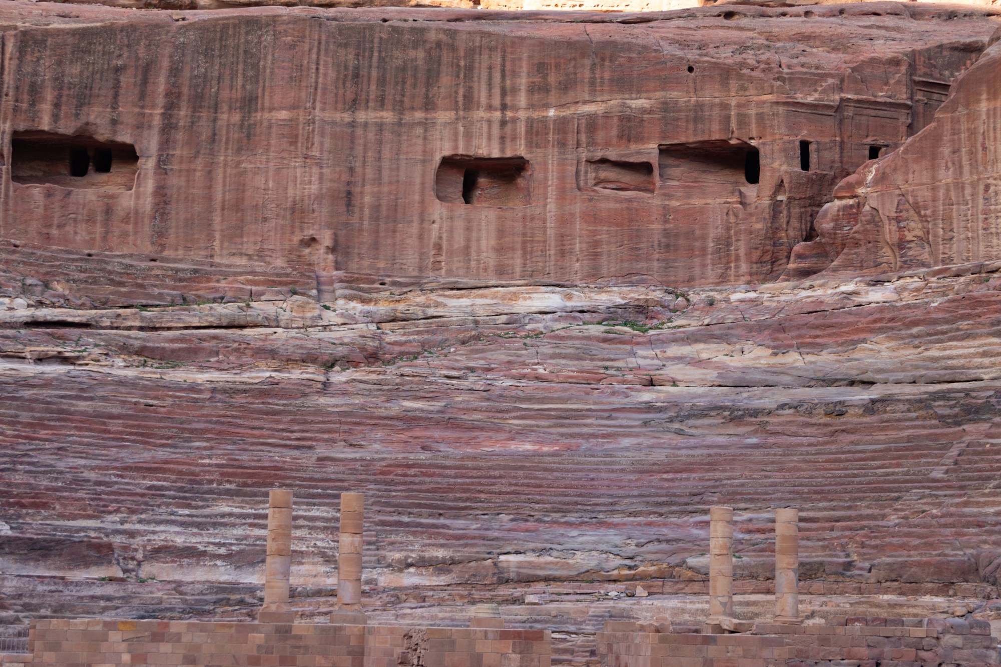 12 Marzo, Domenica – È il nostro gran giorno, oggi realizziamo un sogno: PETRA! Sveglia alle 5, ritiriamo i pacchetti per la colazione che ci hanno preparato in albergo e ci avviamo a piedi sino all’ingresso del Centro Visite che dista solo 800m. Manca poco alle 6.00, l’orario di apertura, così ci mettiamo in coda alla biglietteria assieme ad altri turisti, per far convalidare il Jordan pass e ritirare il biglietto, che sarà valido per 3 giorni. La biglietteria aprirà un po’ più tardi, ma nessuno dei presenti avrà né da lamentarsi, né da saltare italianamente la coda: c’è posto per tutti: per ora siamo 15 o 20, così appena ritirati i biglietti, raggiungiamo il controllo documenti e subito siamo dentro, li dove inizia il percorso. Un viale, dapprima ampio, costeggia alcune tombe, poi si trasforma nel più noto SIQ. Affascinante ed interessante. C’è molto da ammirare già prima del momento magico quello vissuto sino ad ora, solo nei film o nei documentari, quello in cui, al termine del SIQ appare il TESORO. Qui oltre al Tesoro c’è da ammirare anche la civiltà dei turisti: senza dirci nulla ci mettiamo tranquillamente in disparte, a turno, per non impallare le fotografie degli altri, qualcuno chiede anche di farsi fotografare; I primi cammelli per turisti sono già in posa: sono le 6.30 circa. Sappiamo da tempo che il Tesoro è solo uno dei molti edifici di Petra più famoso di altri ben più interessanti, sappiamo da tempo che a Petra si deve camminare ed ancor più noi che siamo contrari allo sfruttamento degli animali per questi scopi, animali che talvolta non hanno un bell’aspetto, siamo quindi ben disposti a passeggiare. Oggi proseguiremo sino al Bacin, lungo le Tombe Reali, attraverso il Grande Tempio, la Basilica e lungo il sentiero sino li…. sino a dove le mie Vertigini lo permetteranno, poi rientriamo per lo stesso percorso, con una sosta ai negozi dell’ingresso ed una gran fregatura al Caffe per Turisti con prezzi strabilianti. A Fine giornata avremo percorso circa 14 km. All’albergo ci propongono di cenare, ma decliniamo; tenteremo nuovamente alla “barzelletta” della sera precedente dove, alle 19.40, sempre con sale completamente vuote, ci comunicano che “Oggi c’è menù Fisso”; Grazie no! 400m oltre ci accomodiamo al LITTLE PETRA Restaurant prospicente a quello visitato la sera prima. Si tratta di un Fast Food, dove la cortesia è di casa e l’ambiente gradevole: non conoscendo i piatti, spiego al gestore che vorremmo provare “di tutto un po’” indicando le preferenze sul menu e Lui, senza obiettare, si avvia alla cucina per le orinazioni. Ne usciremo “gradevolmente satolli” dopo aver assaggiato cibi interessanti ed altri un po’ meno, ma soprattutto dopo aver pagato una piccolezza! … talmente poco che decido di lasciare anche una abbondante mancia per il buon servizio. Lungo il percorso di rientro passeremo nuovamente davanti al Ristorante “Barzelletta” … costantemente vuoto.