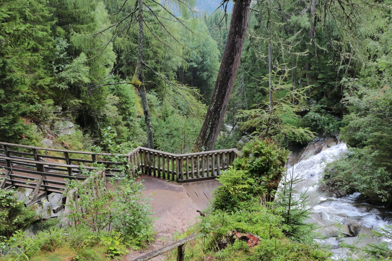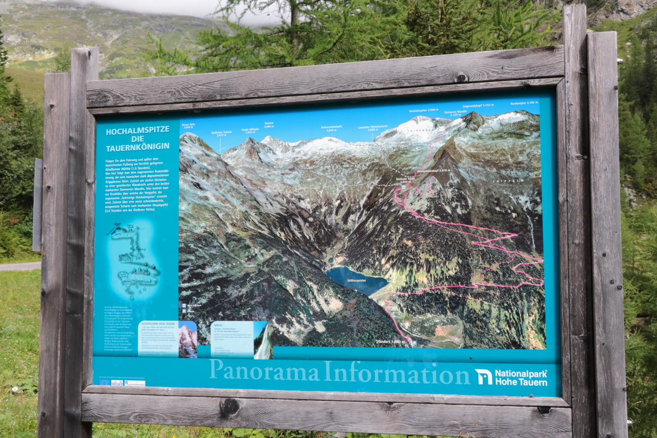 GIESSENER HUTTE – si procede lungo il medesimo percorso per le GÖßFÄLLE, ma dopo le ultime casette, anzichè procedere a destra per il posteggio, se è aperta, si prende la strada che sale sulla sinistra entrando nel bosco. Da questo bivio si continua per alcuni km in un ambiente verde e talvolta un pò piu aperto fino ad arrivare al termine della strada stessa, tutta asfaltata ma stretta, allo spiazzo adibito a parcheggio che si trova proprio sotto la parete della diga che forma il GÖßKARSPEICHER; da qui a circa 1640m di quota, partono alcuni percorsi. Indossati gli scarponi, caricato lo zaino e possibilmente anche acqua, in circa due ore di percorso si risale sino allo GIESSENER HÜTTE a quota 2215, il primo tratto in bosco, che subito diventa piu rado ed aperto permettendo scorci panoramici anche sul sottostante lago artificiale, dal percorso principale sono possibili alcuni “tagli” per accorciare il percorso e che, pur se piu ripidi, permettono di attraversare alcuni tratti boscosi. Oltre non sono andato ma alcuni sentieri continuano, oltre, verso una parete percorsa da numerosi piccoli corsi d’acqua che scendono dal soprastante nevaio. Da molti anni mi sorprendo nel constatare come le Birre, accompagnate dai Taglieri che si trovano a queste altezze e così lontani dai mezzi di trasporto, siano sempre rinfrescanti, non credo sia dovuto al riscaldamento climatico 🙂 !