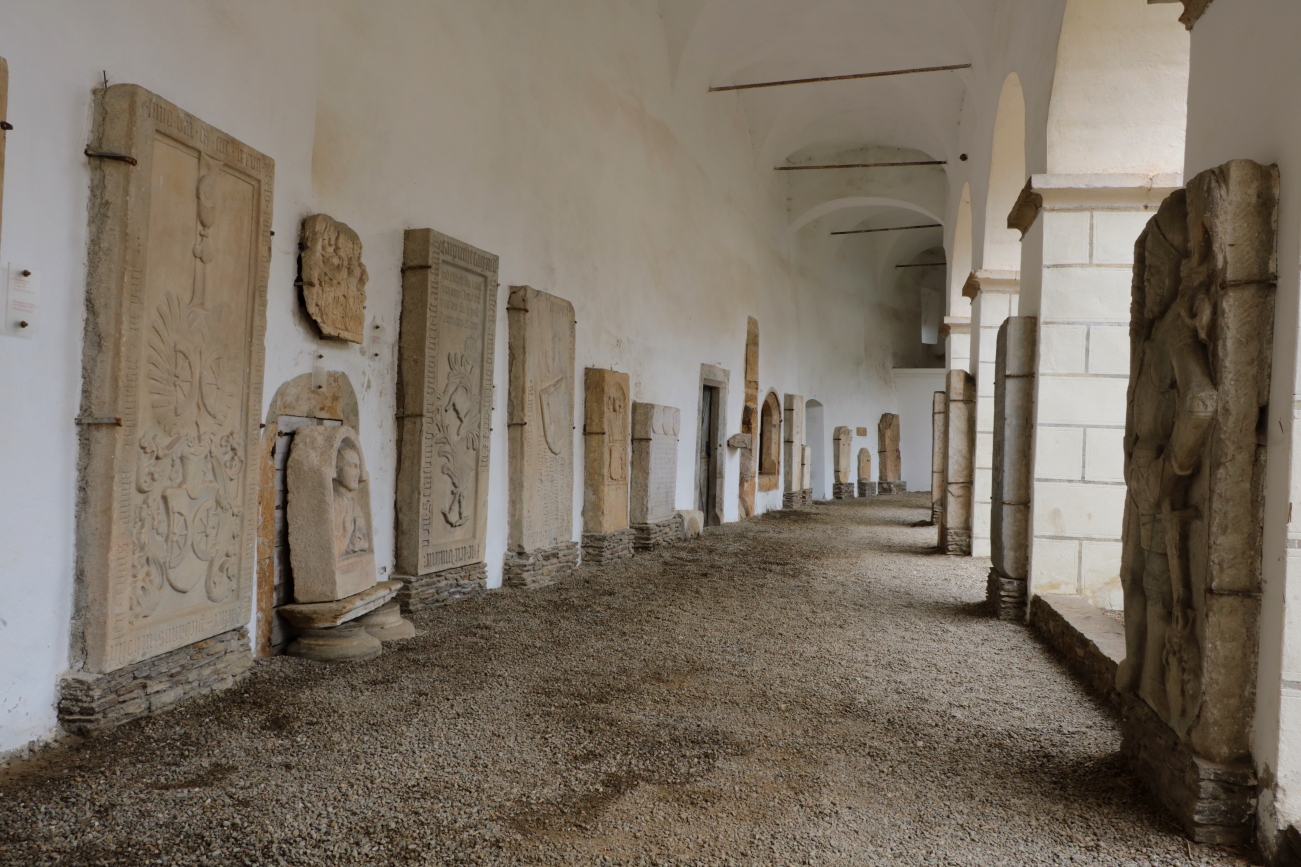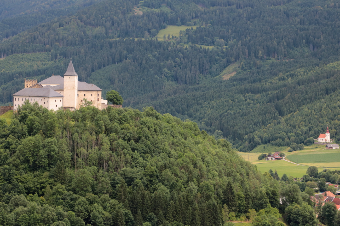 STRASSBURG – Lasciato Metniz, a 25km di strada, più a sud, si raggiunge il paesino di Strassburg, sormontato dall’omonimo castello. La passeggiata dal paese e piacevole, volendo però si può procedere sin sotto al castello dove a circa 400m a piedi dall’ingresso c’è uno spiazzo per posteggiare. Risalendo, dopo un tornante della strada si raggiunge il portale d’ingresso da cui si accede dapprima al perimetro esterno, e poi, tramite un secondo varco, al cortile interno circondato da portici sotto i quali si trovano alcune vecchie lapidi. Uno scalone conduce al piano superiore, dove, lungo tutti i 4 lati interni del palazzo si snoda una terrazza coperta affacciata sul cortile interno. Al di sopra altri piani. All’interno diverse esposizioni, tra le quali avevo trovato molto interessanti i settori legati all’abbigliamento d’epoca ed ai mobili