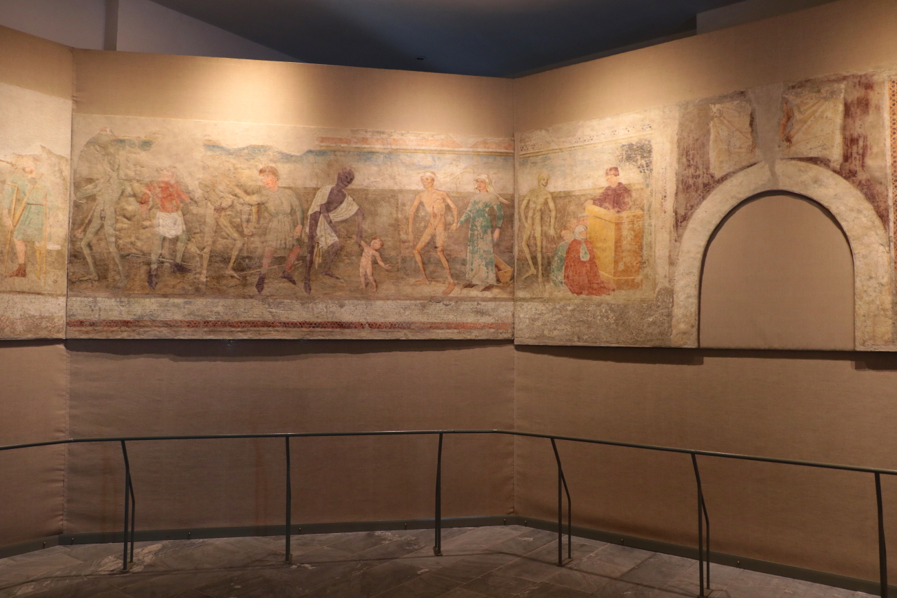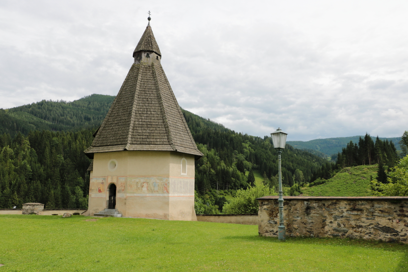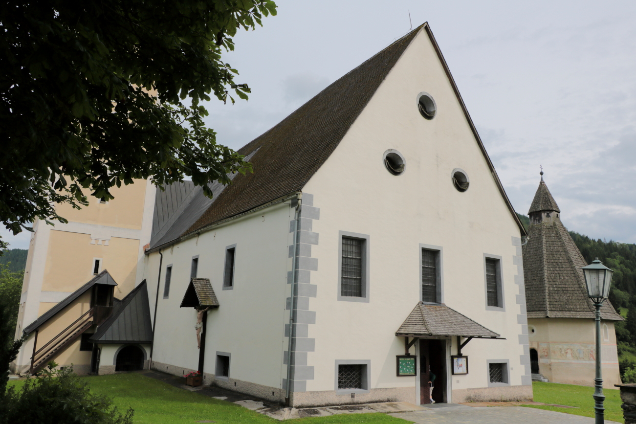 METNIZ Se si ha l’occasione di trovarsi nella zona di Klagenfurt e si ha a disposizione una giornata, si può dedicare un po’ di tempo a tre “chicche” racchiuse in pochi km di distanza tra loro, la più di stante, a circa 75km a nord id Klagenfurt si trova nei pressi di Metniz, un minuscolo paesino isolato tra le colline: nei pressi della chiesa del paesino un piccolo museo, quando ci sono arrivato ho dovuto chiedere informazioni ed attendere che venissero ad aprire, si tratta del TotenTanz-Museum, il Museo della Danza dei Morti. Danza Macabra, suona piuttosto “impegnativo” ma legato ad una usanza interessante, tracce della quale si possono trovare anche in Italia, a Clusone BG ad esempio. Qui, a Metniz è ben presentato in una apposita struttura museale, dove è presentata e spiegata nei particolari quella rappresentata nella locale cappella funeraria, con riferimenti ad altre, in altre aree d’Europa. Il prezzo dell’ingresso non lo conosco in quanto ho avito modo di accedervi utilizzando la Kärnten Card che avevo acquistato all’epoca. Accanto al museo si trova la Chiesa di San Leonardo e nel cortile della stessa, alle sue spalle, la cappella funeraria in cui la locale Danza Macabra è dipinta.