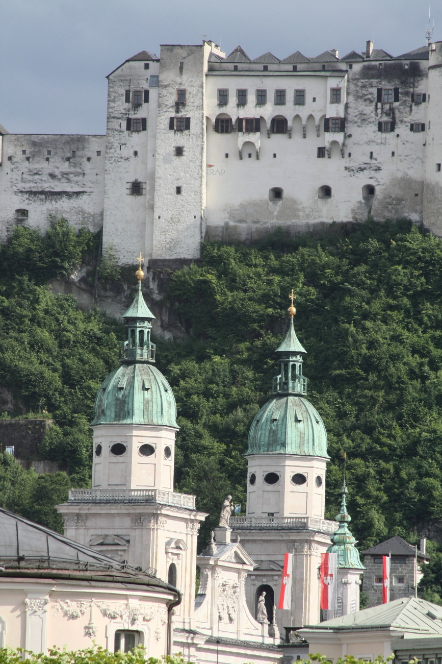Tornando a palla a cose più… turistiche. La città… offre ovviamente di tutto, il centro storico è molto raccolto, quindi può essere visitato in qualche ora, magari lasciando la macchina nel ALTSTATGARAGE scavato all’interno della rocca con uscita pedonale diretta nel centro città, sulla piazza dell’Università da cui si raggiungono facilmente la Getreidgasse, la sponda del fiume Salzach ed il Duomo nelle cui vicinanze è possibile prendere la Cremagliera per salire alla Fortezza. Prima della cremagliera suggerisco una breve visita al piccolo cimitero di St. Peter attorno alla omonima chiesa. Sulla sponda opposta del Fiume c’è la Kapuzinberg, una seconda collina con vista panoramica sulla città e poco più a nord il Castello Mirabell.