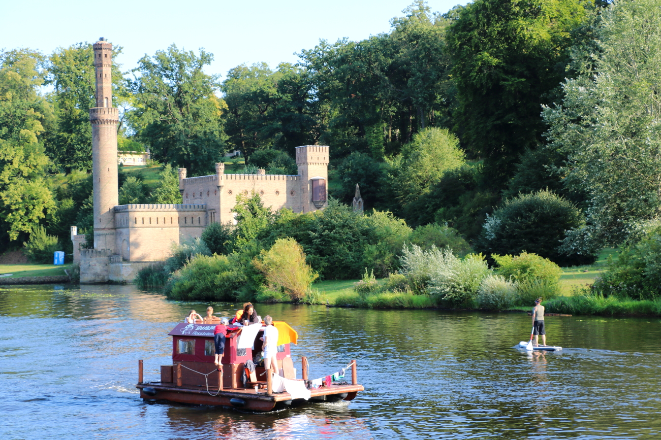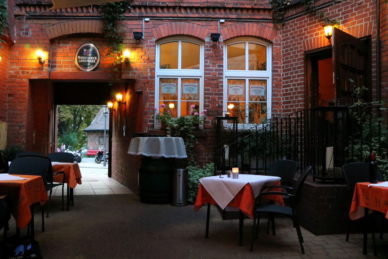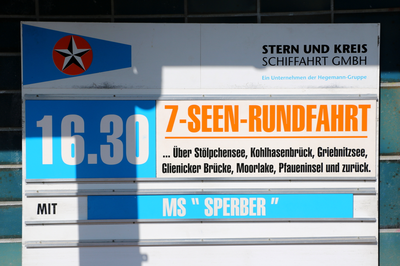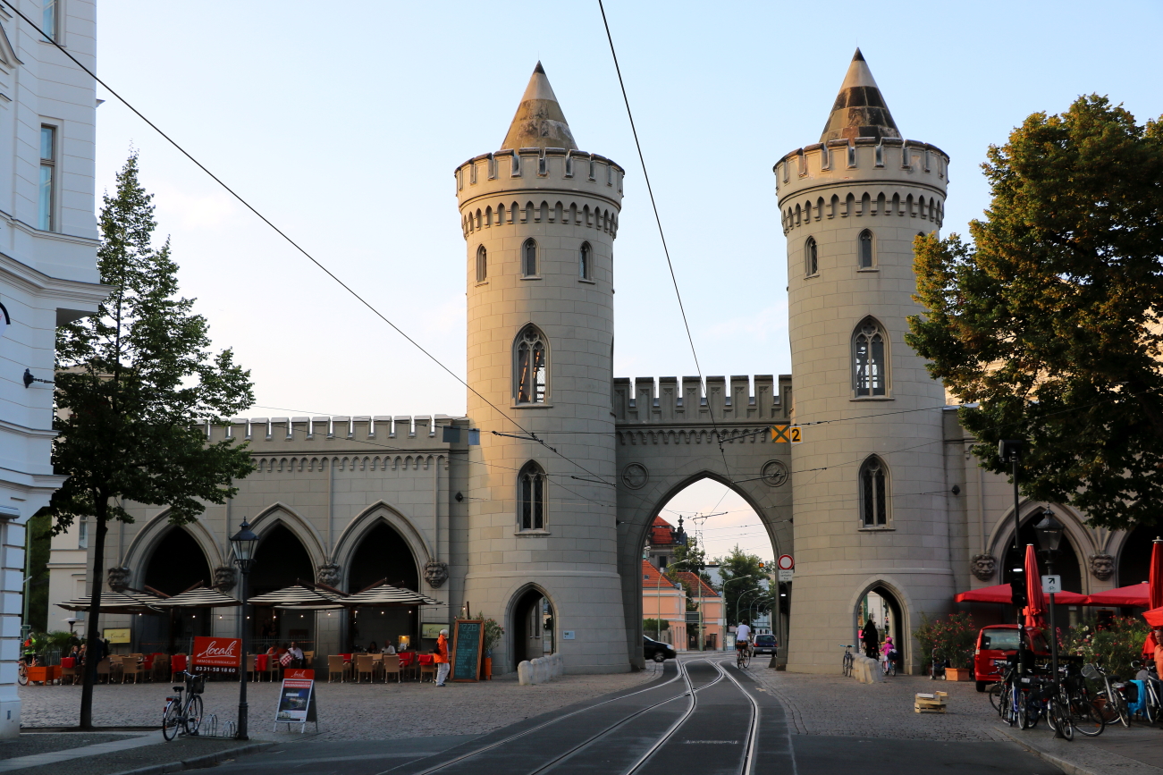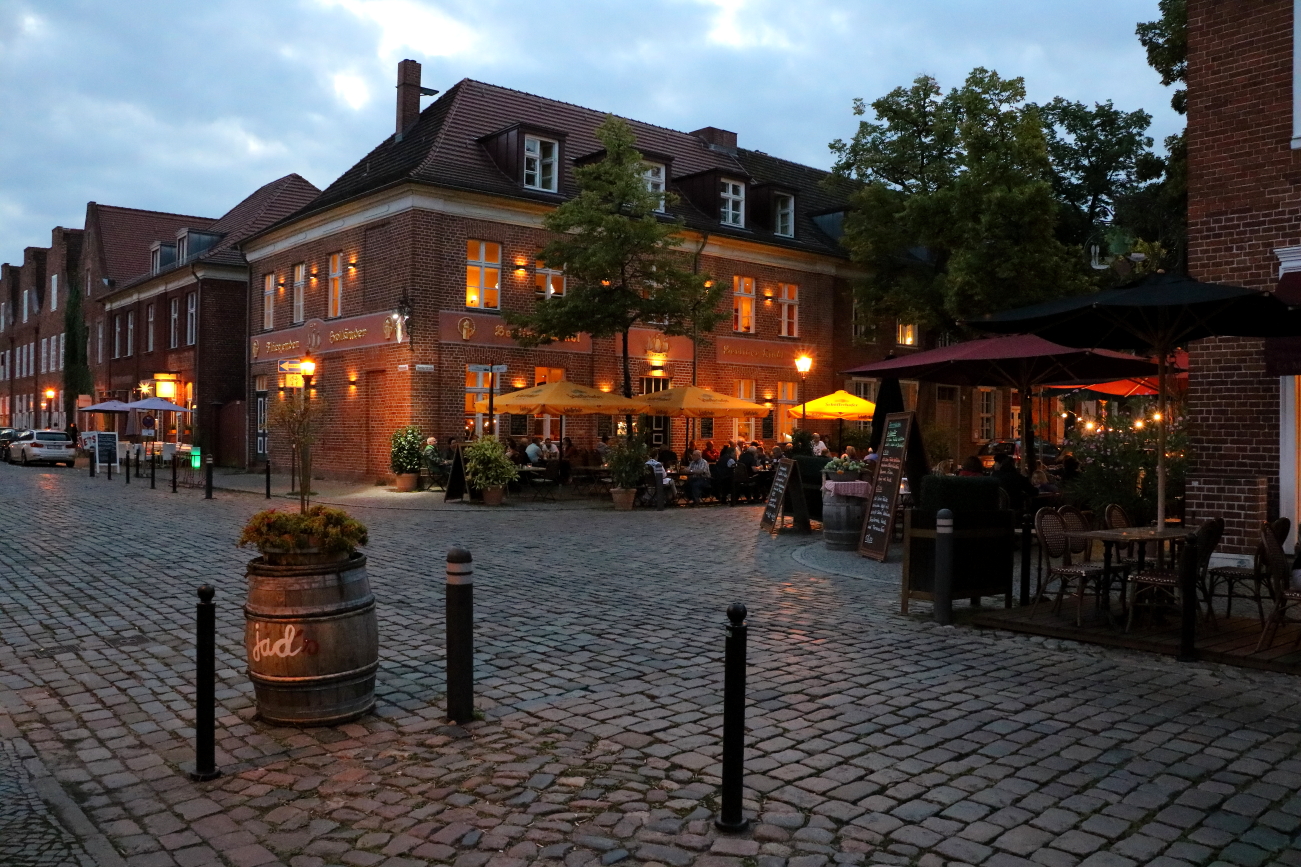 28.08 Venerdì – Per oggi abbiamo scelto Potsdam.  Si parte in Autobus da Spandau e per prima cosa entriamo nella Friedenskirche per proseguire nel parco di Sans-Souci e prenotare la visita al castello. Nell’attesa del nostro orario visitiamo anche la Chinesisches Haus. Il professore di Tedesco delle scuole medie ci raccontava di suoi viaggi e mi aveva incuriosito il nome francese di questo castello, che anni dopo scoprivo avere lo stesso nome di una birra che veniva prodotta nella mia città prima che la birreria fosse ceduta, la produzione trasferita e nuovamente ceduta. Nel pomeriggio raggiungiamo il Wannsee, vogliamo fare un giro sul lago sta per partire il giro dei 7 laghi: Visto comprato e saliti ! Resteremo seduti un paio d’ore, con il paesaggio che ci scorre attorno, in una giornata di sole un pò di relax ci voleva!  Passiamo accanto a Babelsberg, sotto al Ponte Glienker (ambientazione di scene di Libri letti e Film visti) poi a nord e ritorno sull’ampio Wannsee. Ci siamo riposati, la brezza ha messo appetito, sono le 18.30 circa ed allora, in treno raggiungiamo nuovamente a Potsdam per cenare nell’Hollandischen Virtel, “olandese?” allora il ristorante non può che essere ZUM FIEGENDER HOLLANDER. Arriviamo al tramonto con una splendida luce, ceniamo all’aperto poi passeggiamo sino alla Nauener Tor dove prenderemo un dolce, poi l’autobus che ci riporterà a Spandau.