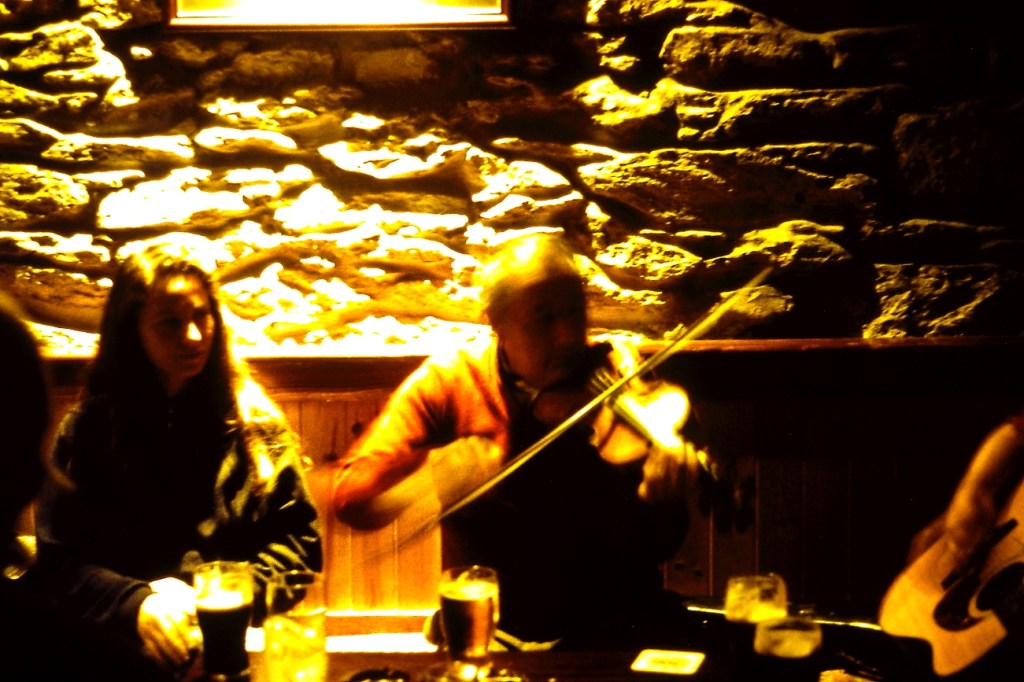 DINGLE – una serata mi è rimasta impressa, per la sua particolarità. Abbiamo pernottato allo Skelling Hotel, ma non questa è stata la particolarità. Con Gianni avevamo l’abitudine di andare spesso a camminare in montagna, lui davanti: agile, fresco ed arzillo a tenere il mio passo, io indierto a faticare, ma lo facevamo. Quella sera eravamo stufi di corriera, i compagni di viaggio si avviarono verso il paese lungo la strada, noi decidemmo di farlo lungo la spiaggia, un percorso piu lungo e meno scorrevole, con qualche passaggio di rocce, ma c’era ancora luce e si poteva fare nonostante la minaccia di pioggia. La pioggia non arrivò e raggiungemmo il centro al paesino davanti al molo, si era fatto buio e c’era con una forte umidità nell’aria quando decidemmo di entrare in un Pub. Era ovviamente pieno, anche dei colleghi di Gianni. A lui si appannarono gli occhiali e mentre lo guidavo verso il banco ordinammo le prime birre. Solo posti in piedi, ma noi eravamo atletici (lui lo è ancora, io lo sono solo a tavola). in un angolo, ad alcuni tavolini alcune persone sedute, evidentemente locali, con Strumenti musicali. Cominciarono a suonare e fu affascinante. Affascinante è la parola che per me meglio esprime l’atmosfera creata da quella musica e dalla spontaneità delle perone che suonavano per se, tra amici, non per il pubblico. Rimasi ammirato dalla bravura di una ragazza rossa (forse la ragazzina dai capelli Rossi di Charlie Brown?), che accompagnava il gruppo suonando due cucchiai dando il ritmo. Violini e cucchiai, boccali di birra e poca luce, tanta gente. Che atmosfera! che musica! Alla chiusura del locale la strada brulicava di giovani usciti dai Pub, sulle strade limitrofe alcune macchine della polizia che sorvegliavano il “passeggio”. Rientrammo ovviamente a piedi, questa volta lungo la strada. Nel 2003 sono tornato a Dingle, ho cercato il Pub, lo ho trovato e ci ho provato, mi ero illuso, ma le cose erano cambiate, era diventato un locale per turisti e di musica dal vivo neanche l’eco. Averi voluto condividere con Assunta la medesima esperienza, ha dovuto accontentarsi dei miei racconti e del mio entusiasmo. Il piacevole ricordo di una serata unica e fantastica resta comunque in me, Un grazie a quei “suonatori”