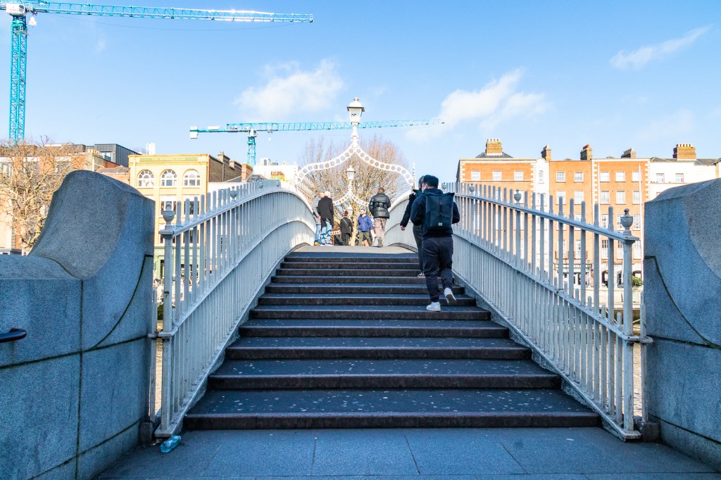 Usciti dalla Collins Barraks, riprendiamo il Tram diretti alla fermata Busaras, da dove raggiungeremo la sponda del fiume passeggiando attraverso il Famine Memorial con delle statue interessanti, raggiungendo l’Arco ed osservando il vecchio Ponte Levatoio, per poi attraversare il vicino O’Casey bridge, ponte pedonale, da dove osserviamo la vista nella direzione del Porto e del Beckett Bridge, per rientrare quindi verso l’albergo fotografando ancora qualche statua particolare ed angoli interessanti. Si avvicinano le 15, ora in cui Mattia passerà a prenderci per raggiungere casa sua, dove ceneremo trascorrendo la serata anche con Stephen ed altri suoi amici irlandesi, coccolati dai due gatti.
