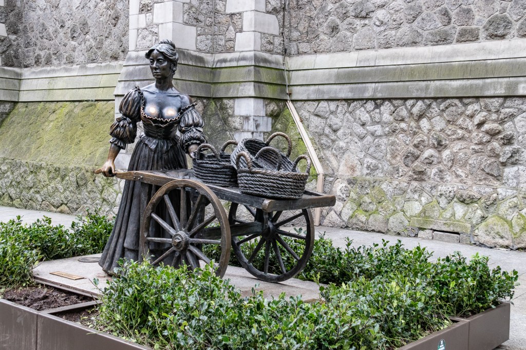 Dopo qualche fotografia al locale abbiamo proseguito l’esplorazione, diretti all’Hotel, ma con una pausa per il dolce al The Buzz, una pasticceria completamente rosa che fa alzare la glicemia solo a guardarla, una porzione enorme che non riesco a finire. Poi tra pioggerella e luci della sera proseguiamo la passeggiata, raggiungendo l’albergo dopo essermi acquistato un Classico Impermeabile Irlandese ed un comodissimo Cappello anch’esso impermeabile, al resto ci penserò i prossimi giorni! Depositati gli acquisti, “invece” della cena decidiamo di proseguire la passeggiata verso il Trinity College e Grafton Street deviando poi verso la statua di Molly (che nel 1992 si trovava in altro luogo) ed infine rientrare in albergo terminando la “giornata libera” per concederci il meritato riposo. La notte mi sveglierà un rumore continuo, proveniente dall’esterno, ronzio irregolare, che, affacciandomi alla finestra, scoprirò provenire da un elicottero in hovering sopra l’area che ritengo essere quella del Parlamento e del Trinity college, terminerà circa 30 minuti dopo e tornerò a dormire.