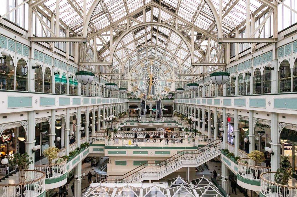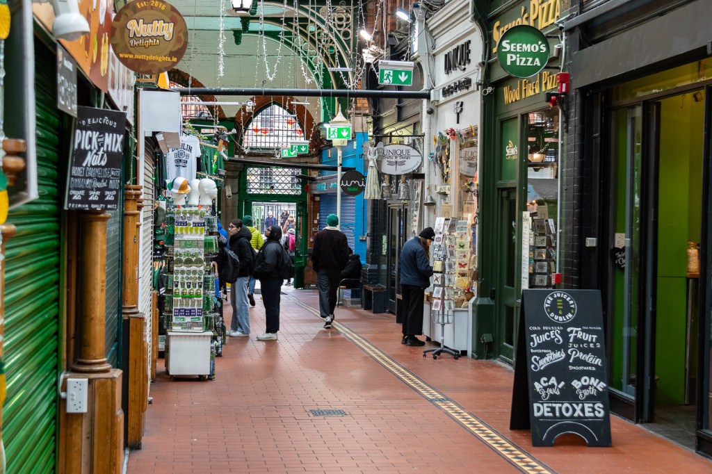 Per prima cosa raggiungiamo Grafton Street, deviando per salutare Molly diretti alla George’s Street Arcade, quindi attraversare il Westbury Mall ed infine raggiungere lo Stephen’s Green park, prima che il cielo inizi a mollare acqua spingendoci nel vicino Shopping Center. George’s Arcade lo ricordavo diverso, Stephen Green Mall è esattamente come lo ricordavo, solo la tipologia dei negozi, è meno attraente. Abbiamo comunque recuperato alcuni regali ed a questo punto rimangono da fare 2 cose: una pausa rigeneratrice e trovare il mio maglione.