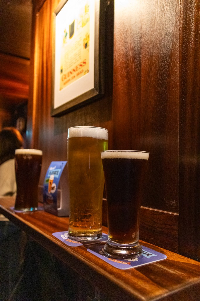 Il Primo è il Dawson Lounge, considerato “il più piccolo pub di Dublino”. Piccolo lo è davvero: porta stretta, scala angusta che conduce al piano inferiore, un divanetto con due sedie, qualche mensola alle pareti ed il banco. Arriviamo che ci sono una decina di persone, poi queste escono e restiamo solo noi 4; Stephen e Mattia conoscono il gestore così chiacchierando, scopro che fa raccolta di vecchie banconote e gli prometto di fargli avere alcune di quelle che ho “ereditato” dai miei genitori;
