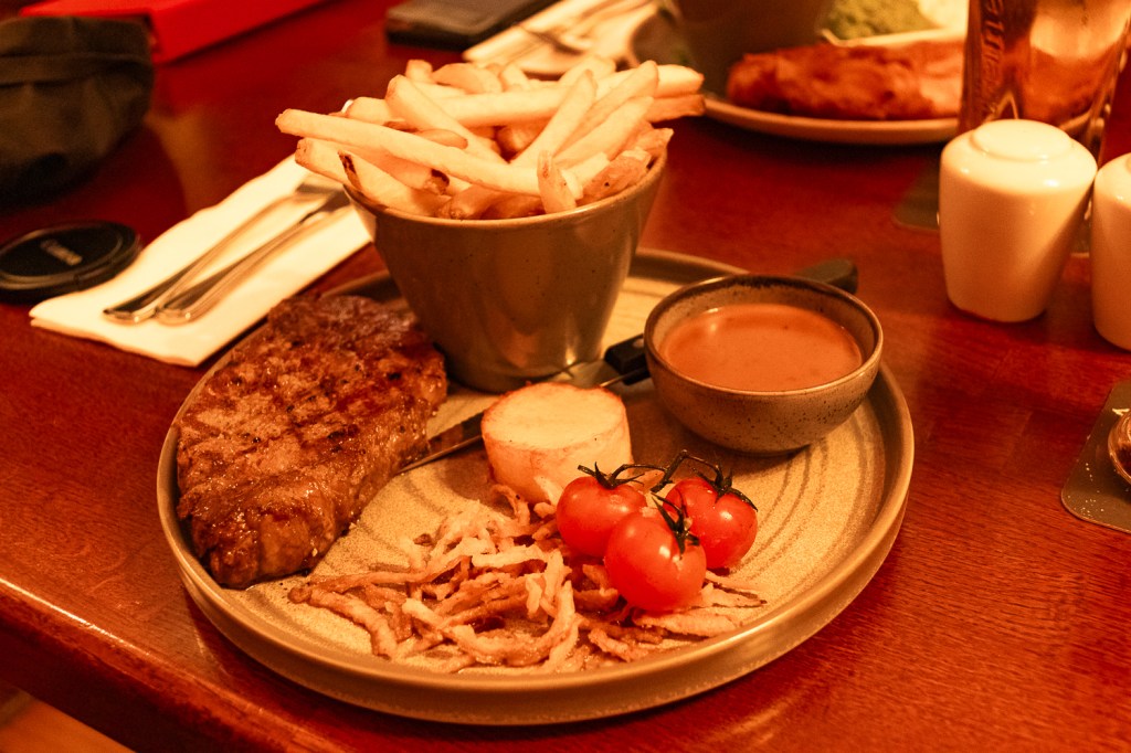 Da fuori sembra piccolo e pieno, all’interno troviamo alcuni tavoli liberi e scegliamo il preferito poi ordiniamo e finalmente la Smithwiks la riconosco: oggi è proprio lei, buona, rossa… si accompagna al mio Irish Stew ed alla Cottage Pie di Assunta; l’ambiente che ci circonda è particolare, è un piacere trascorrervi un’oretta mangiando bene, bevendo meglio… peccato solo per quell’italiana, tre tavoli più in là, che, con scarsa discrezione, parlando con il suo amico ad alta voce come un attore sul palco, ci ha resi edotti di particolari della sua vita; i tavoli più vicini erano molto discreti, Lei no ☹.
