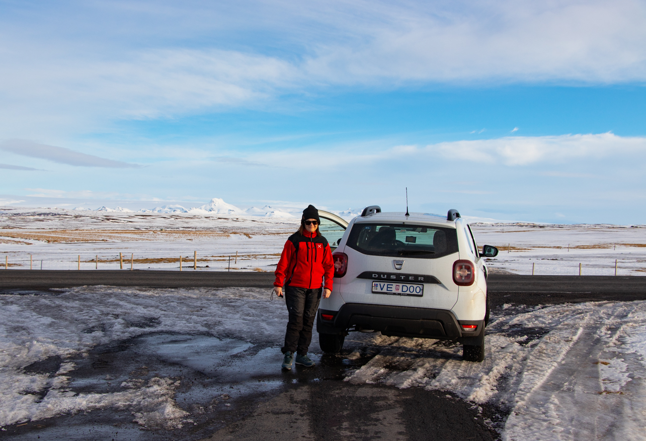 17 marzo Skogafoss–Gardur 260km. Anche oggi sveglia presto, saranno chilometri intensi. “Fate attenzione per Strada” è la raccomandazione che ci fanno all’Hotel prima di partire. Sono sicuro che non lo hanno detto sapendo che una Volpe Artica mi attraverserà la strada poco prima di Hella, sicuramente lo hanno detto perché conoscono le informazioni meteo. Blizzard, Ghiaccio, Vento contrario, in quelle condizioni la macchina consuma molto di più, così, giunti a Selfoss, decido che devo fare una pausa per riposare gli occhi e rifornire per non rischiare di restar senza gasolio. All’uscita dal Caffè della OLIS Assunta resta bloccata dal ghiaccio e dal vento ed il “Cavaliere” che c’è in me l’aiuta a sorreggersi e raggiungere la macchina per poi adagiarla sul sedile. La mancanza dei chiodi sugli pneumatici anteriori oggi si fa sentire, per fortuna sono abituato a guidare su neve e ghiaccio, anche se, “causa Pandemia” non lo faccio da 2 anni.