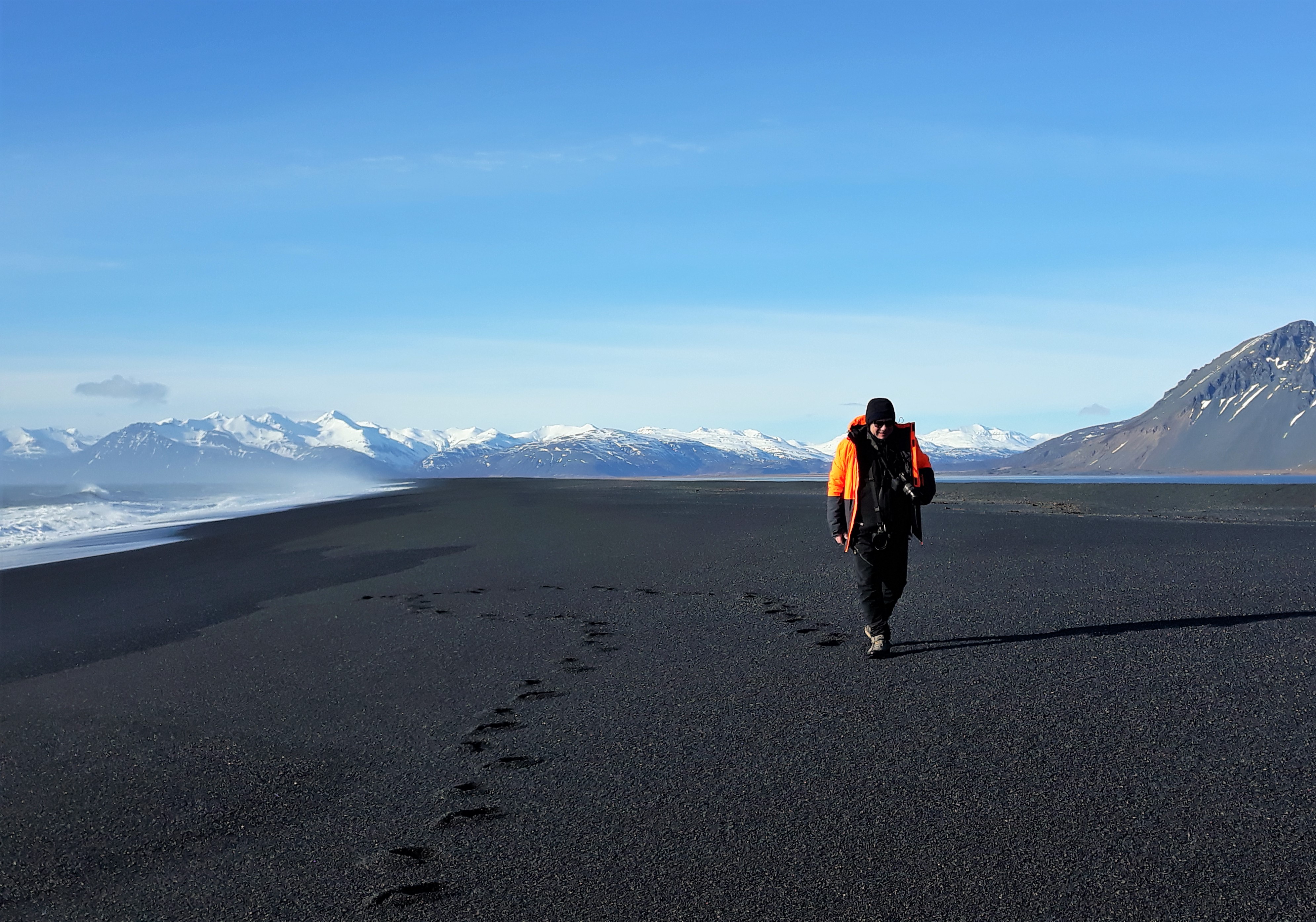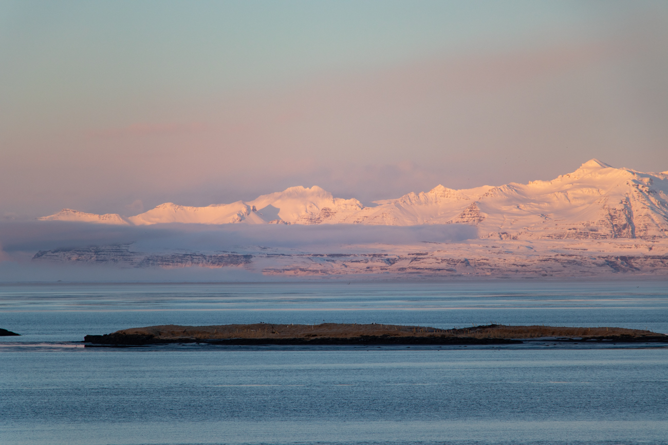 L’alba si presenterà con una luce stupenda, rosata, un cielo limpido che durerà per tutto il giorno di BUON COMPLEANNO. Sarà una bellissima giornata, illuminata dal sole e con poco vento. Anche le renne verranno a farmi gli auguri. Raggiungeremo il faro di Hvalnes e la meravigliosa spiaggia sottostante, un punto panoramico poco oltre in direzione est per poi rientrare deviando sino alla cascata di Skutafoss; ripasseremo sotto il Vestrahorn per raggiungere la penisola di Stokksnes da dove ammirare una vista da sogno. Prendiamo una cioccolata calda prima di tornare all’hotel.