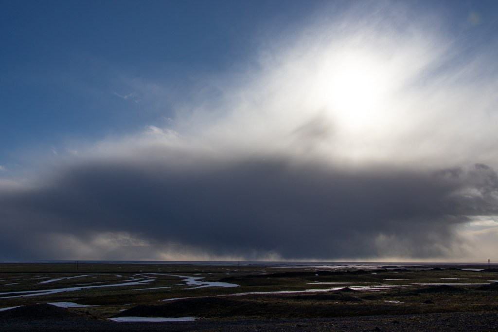 16 marzo Hali-Skogafoss, 255km. Meteo dice male! Il bel sole ad Est dura poco e lascia spazio al fotogenico muro di nuvole scure che arrivano da Sud, Ovest e Nord, noi siamo diretti proprio nel mezzo: ad Ovest!
