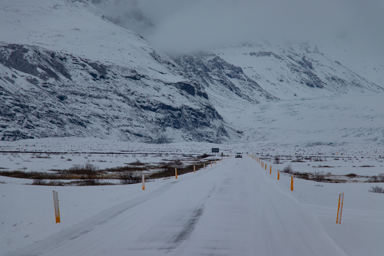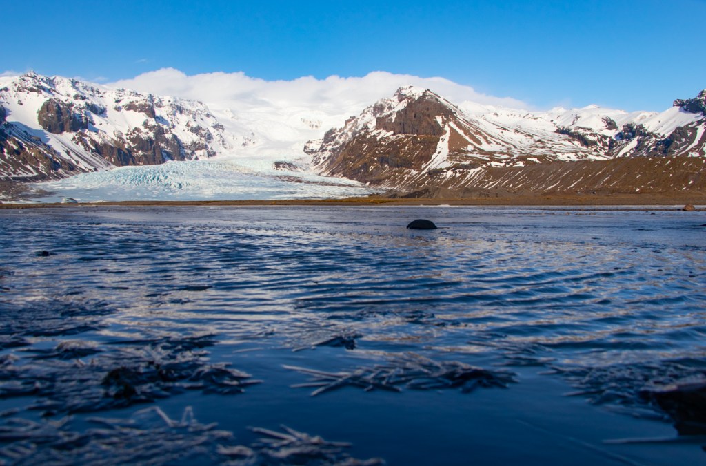 12 marzo Skaftafell–Hofn, 123km. Anche oggi sveglia presto, Aurora mi ha nuovamente dato Buca! Di buono c’è che il cielo si sta aprendo e stamattina sfoggerà il suo azzurro intenso.