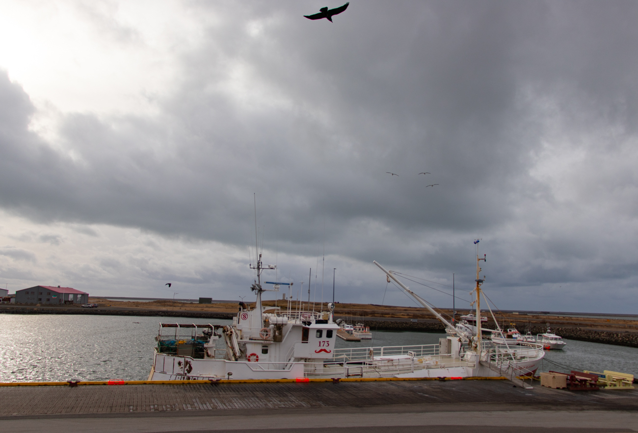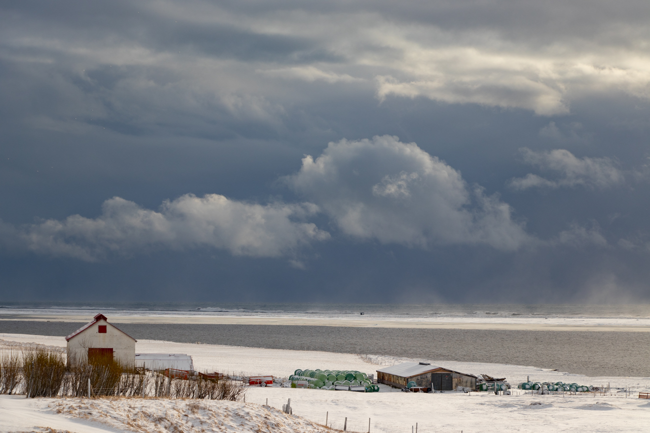 Il meteo è volubile ed il temporale di prima procede alla nostra destra sull’oceano, poi decide di deviare e tagliarci la strada senza bagnarci per dirigersi a nord, verso il ghiacciaio Hoffel dove, allora, decido di non svoltare. Sono circa le 14 e con il cielo che si riapre a tratti, decido di raggiungere subito Vestrahorn per un sopralluogo, in previsione di “Aurora” che nelle due serate seguenti è annunciata come “Intensa”, con scala 5-6 su 9.
