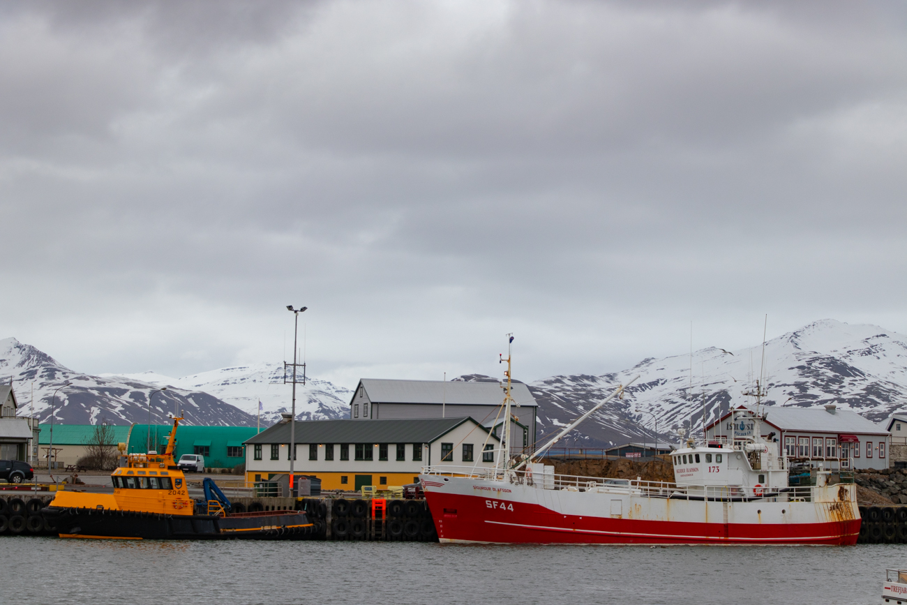 Per nostra fortuna mi sono ben informato prima ed ho gia scelto il ristorante per la cena, d’altronde una vocina nel mio inconscio intona dei versetti “Godi Fanciullo mio, piatti soavi fan qui, doman è un dì di festa ….. e tu a festeggiar t’appresti”, a queste vocine obbedisco volentieri. Il Ristorante PAKKHUS si trova direttamente sul porto, accanto al Museo/Visitor Center del Vatnajokull. E’ una costruzione di legno, su due piani, affacciata sul porto, il piano superiore è finestrato su tre lati.