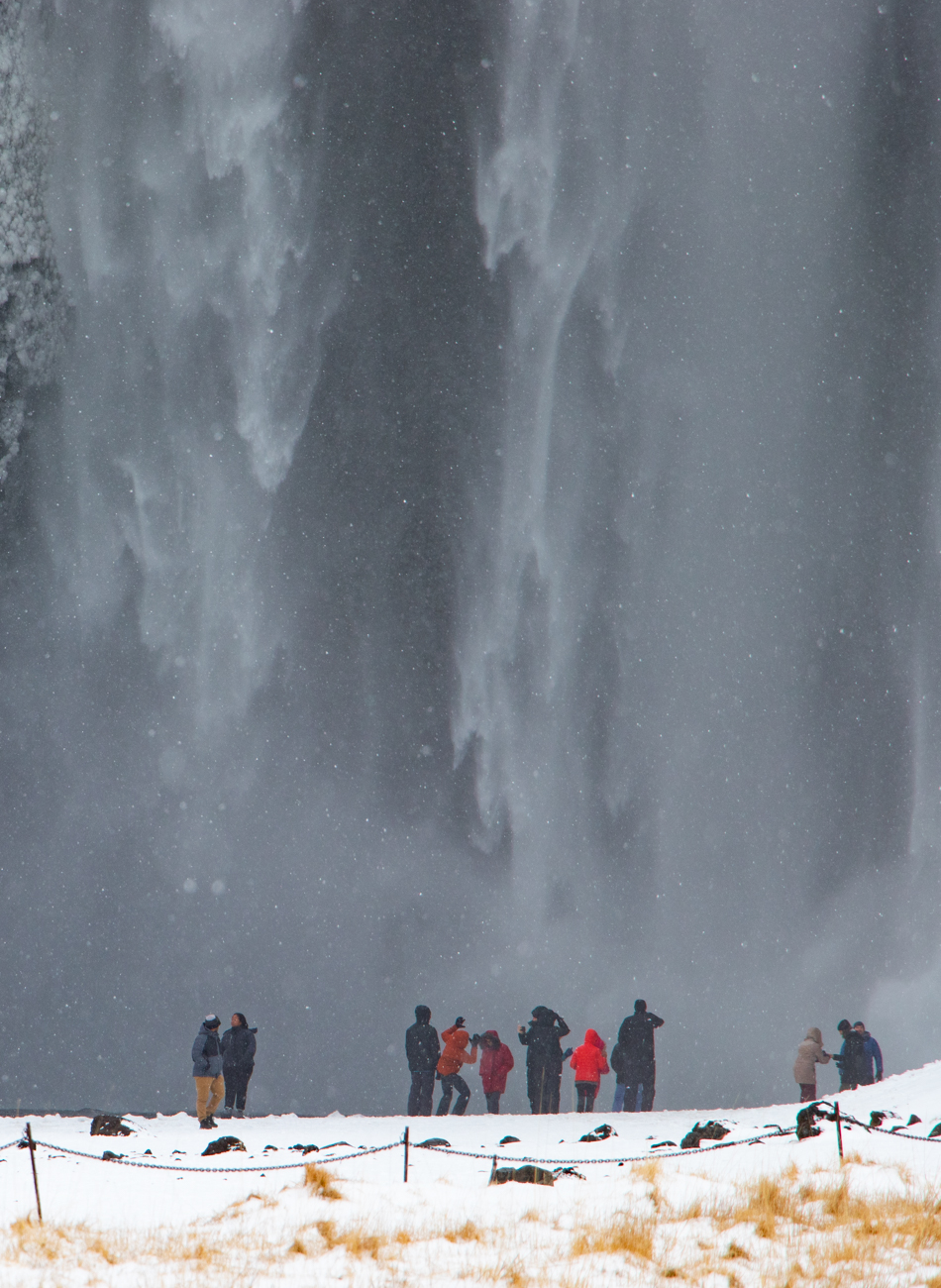 La cascata la vedremo nella ressa, interrotti dall’ennesima scarica di Neve e Vento; più tardi, uscirò, da solo, approfittando di un momento di calma e trovando rari turisti. Svanita la ressa rimarremo io ed una ragazza, i soli fotografi padroni della scena che, con cortesia reciproca, evitano di impallare la scena all’altro prima di salutarsi per rientrare, io al mio albergo lei altrove. La giornata si conclude con doccia calda e cena. Assunta ed io siamo entrambi distrutti. Domani sarà peggio, lo garantiscono le App !