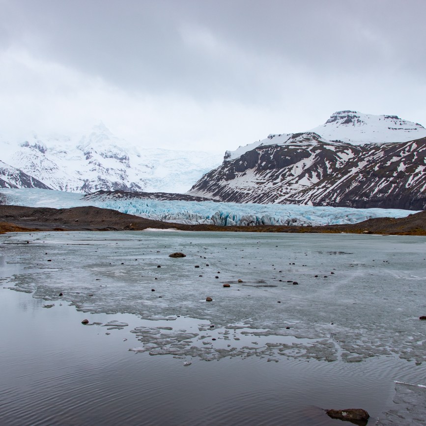 La tappa successiva è Fjallsarlon dove, raggiunto l’ampio e quasi deserto posteggio, allacciamo gli scarponi ed imbocchiamo il sentiero che risale la morena. lungo il sentiero due turiste “Occhi a Mandorla”, ignorando gli espliciti cartelli, scavalcano il fetucciato si inoltrano proprio lì, “dove è vietato”. Raggiunta la somità della morena, il paesaggio mi toglie il fiato: la laguna, il fronte del ghiacciaio e rari turisti! La passeggiata si fa interessante così proseguiamo lungo il sentiero in direzione Ovest, sino a raggiungere la Laguna, per poi rientrare al posteggio lungo un diverso percorso dal quale posso ammirare l’oceano ed il temporale che su di esso si sta formando.