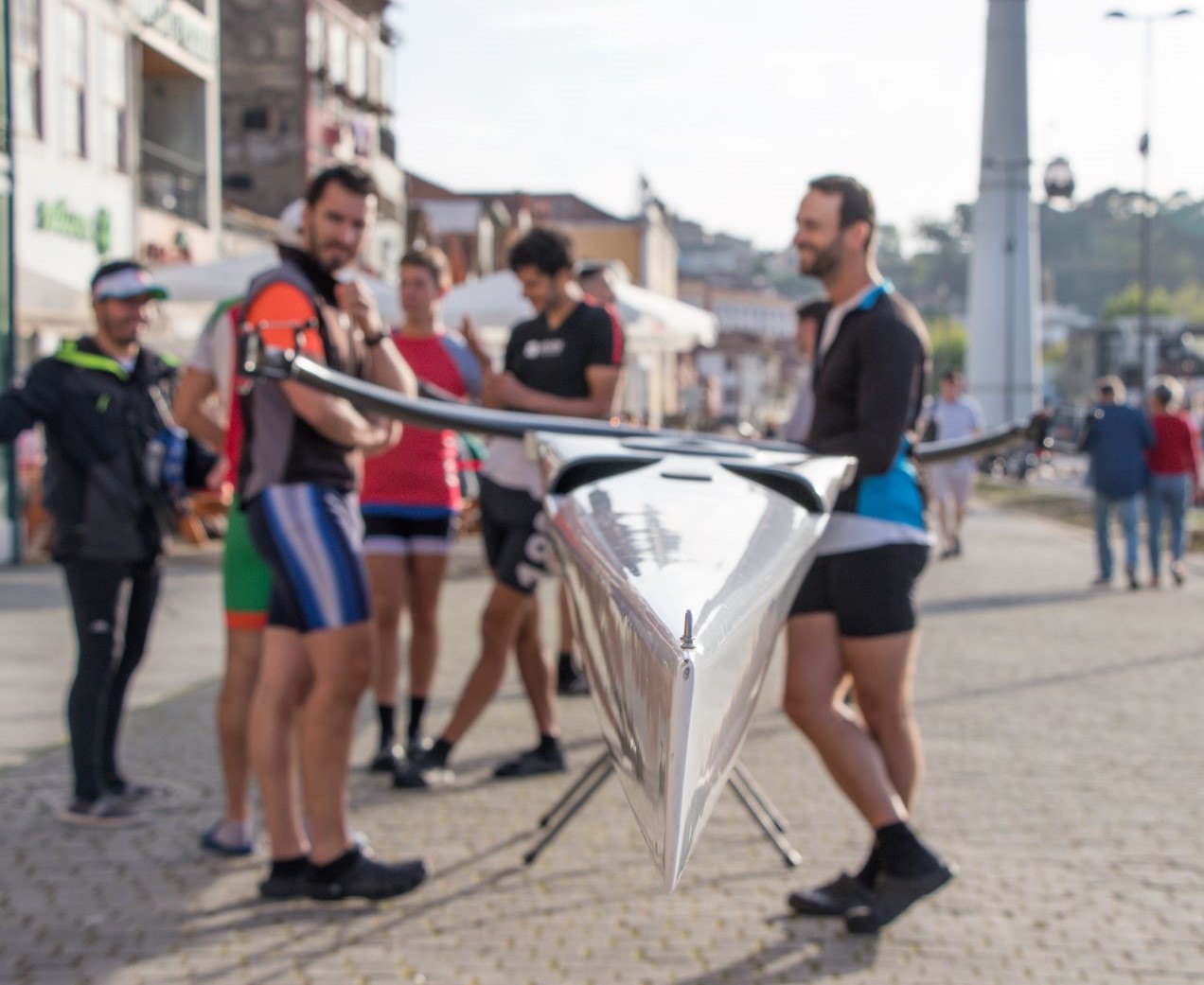 Non ho scelto a caso il baretto, è proprio nelle vicinanze di una scala che abbiamo disceso il giorno dell’arrivo, ma che per la stanchezza non avevamo potuto apprezzare, oggi si! Poi ci incamminiamo lungo i viottoli sino all’area denominata WOW, World of Wine, dove le cantine sono state trasformate polo turistico, sfruttandone anche la posizione panoramica ed ancora su sino a quando una “vociona” intima: “BASTA SALITE!” Ed allora “…. giù, per discese ardite e brevi risalite” sino al Mercado Beira-Rio dove, evidentemente, è in corso un motoraduno, per una pausa caffè con le ultime Natas.