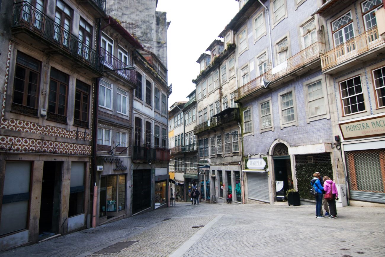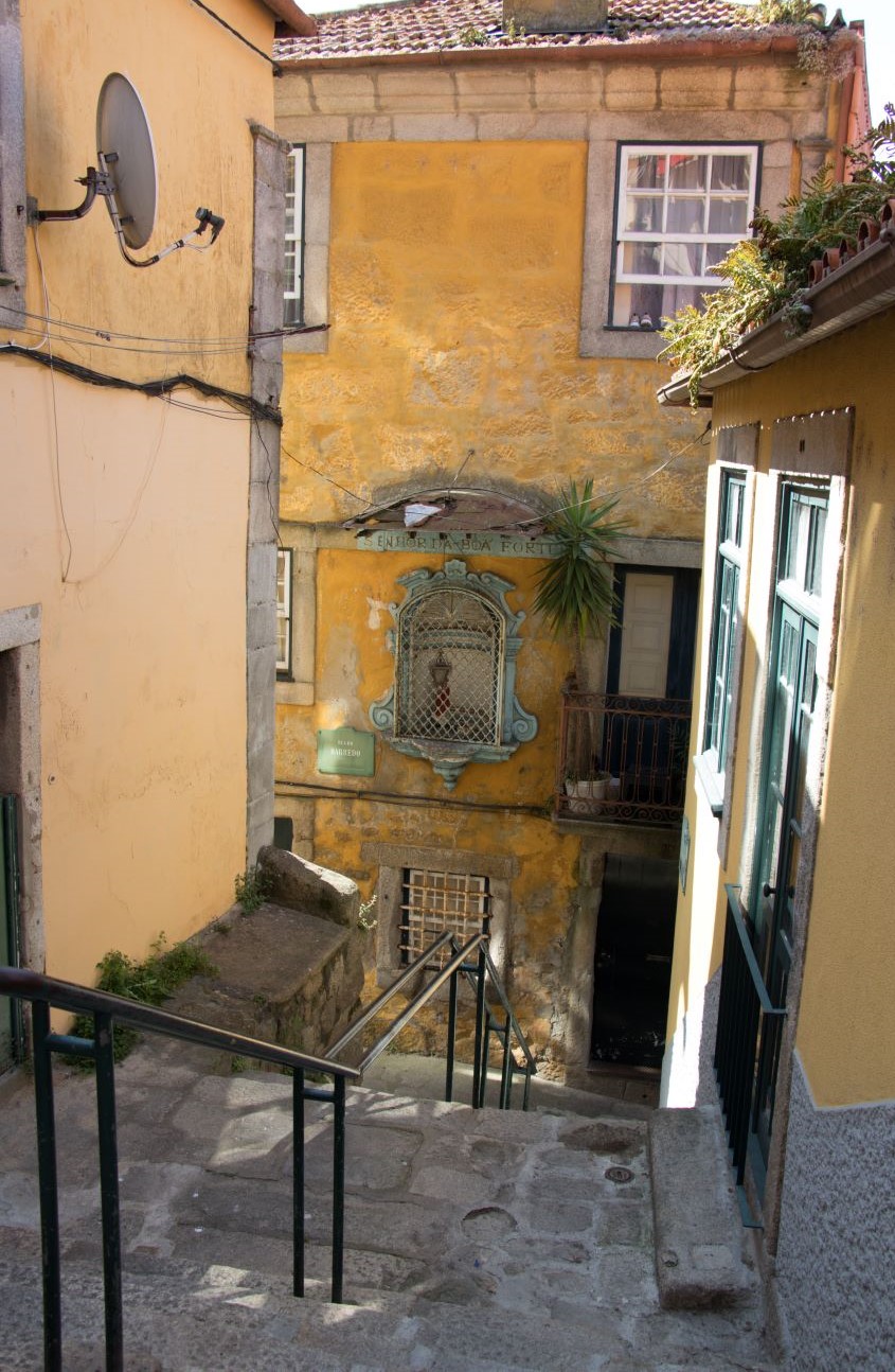 Una breve pausa per ulteriori acquisti ed optammo per proseguire verso sant’Ildefonso lungo una affascinante strada, poco trafficata, con facciate piene di terrazze, e marciapiedi contornati da negozietti dove Assunta restava appiccicata. La Chiesa di Sant’Ildefonso risultò chiusa, comunque affascinante, come la piazzetta con le bancarelle su cui si affaccia, e come la Rua de Santa Catarina che da lì inizia. Affascinanti i due negozietti, ai due lati della “Rua” con le decorazioni sugli spigoli degli edifici. Proseguimmo poi sino alla Piazza di Bathala per immetterci quindi in uno stretto viottolo che da qui scendeva. Probabilmente era un quartiere di Immigrati indiani o di quell’area, ricco di scorci affascinanti, attraversando i quali sbucammo nuovamente nei pressi della Cattedrale.