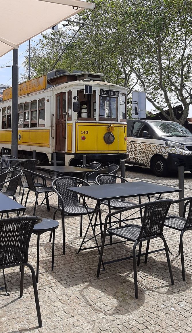 Dopo una doccia ed una breve siesta, la passeggiata lungo la sponda del fiume, prima di cena è un must! … lo diventerà pure la visita alla cantina QUINTA DO PORTAL che si trova nei pressi dell’albergo accanto ad alcuni ristorantini e dove ci accaseremo cinque volte in tutto tra Aperitivi serali e Pranzetti veloci, per l’Infilata di Vino Porto (inseparabile da Athos ed Aramis…! Tutti tre accompagnati sempre da DartaGNAM!) Alle 19 Chiude la Cantina, alle stessa ora aprono i ristoranti, basta organizzarsi! Questa sera tocca il MEET & TASTE, a 20m di distanza, non all’altezza di quello della sera precedente. Mentre ceniamo passa un piccolo bus lungo la strada, la cosa mi colpisce e la visione mi resta impressa.
