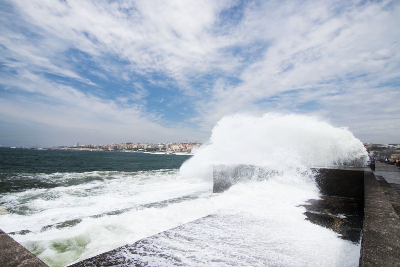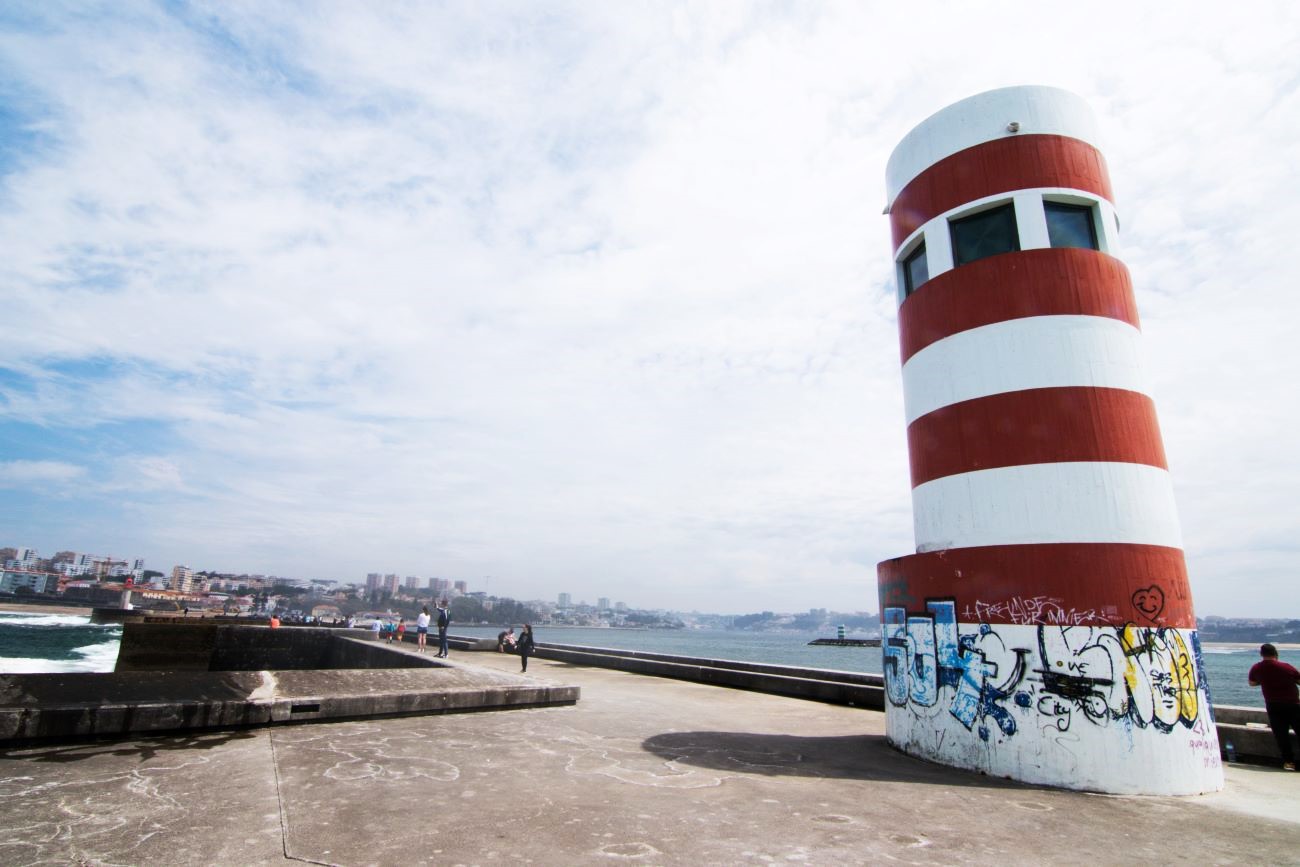 Il capolinea di questo tram è a Paseio Alegre, proprio sulla foce, davanti alla struttura della scuola di formazione per il soccorso nautico. Sono quasi le 12, allora perché non approfittare di una insalata di frutta, due spremute ed un toast in uno degli innumerevoli localini dei dintorni? Detto-Fatto! Appena rifocillati abbiamo iniziato la breve passeggiata verso i fari, poco più di un km in una calda giornata con un filo di brezza che aiutava a sopportarla e, una volta giunti ai moli dei fari, la vista, sul quartiere di Matesihnos a nord e sull’Oceano ad Ovest con le onde che si infrangono sulle dighe dei due fari e sugli scogli sottostanti.