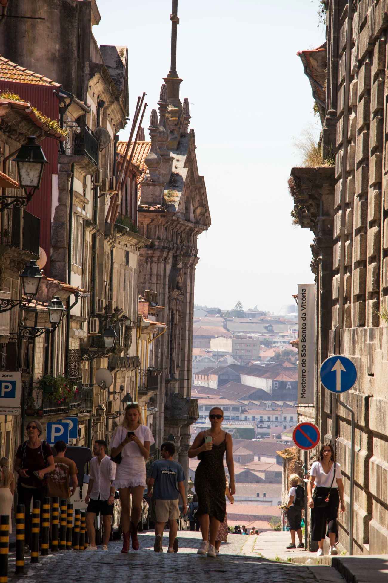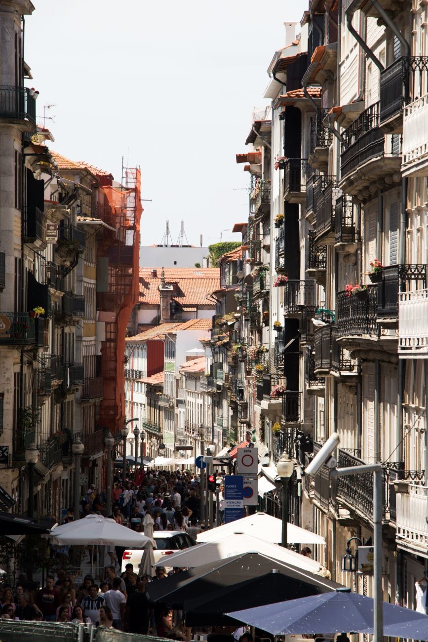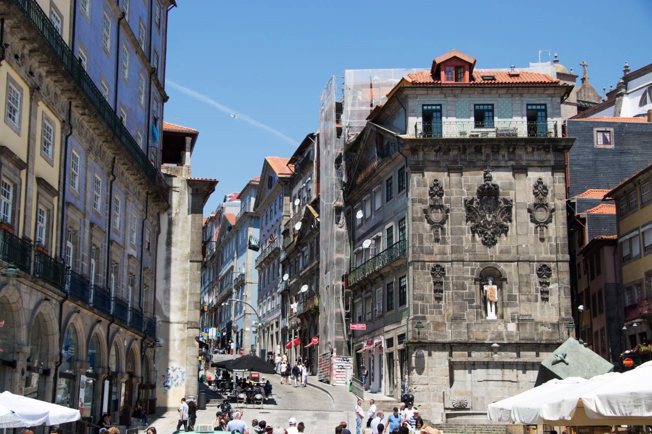 Procedemmo l’esplorazione scendendo per altri 100metri, sino ad un incrocio che ci presentò tre belle prospettive: Avanti in basso verso la Stazione Sao Bento; a destra in alto verso Torre de Clerigos; sinistra in alto a Sant’Ildefonso.