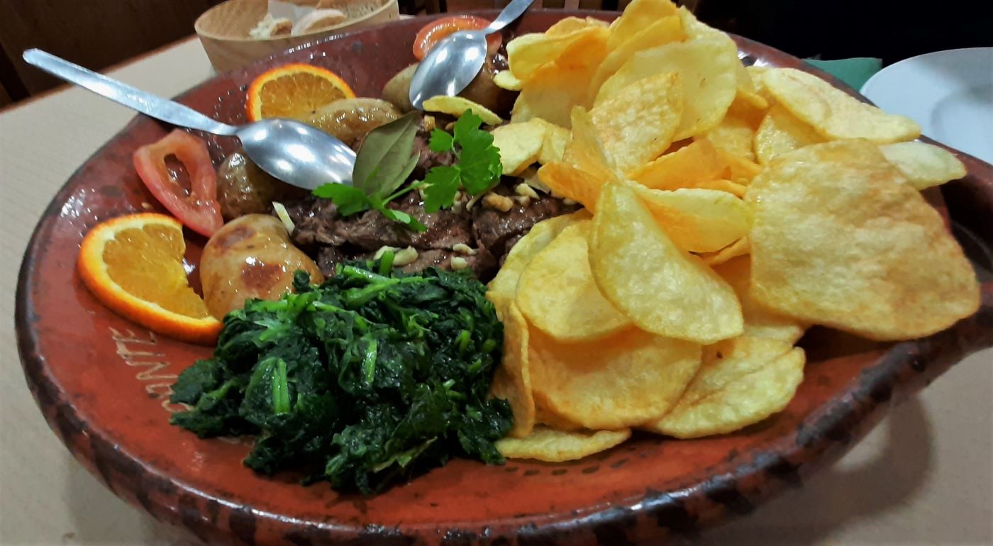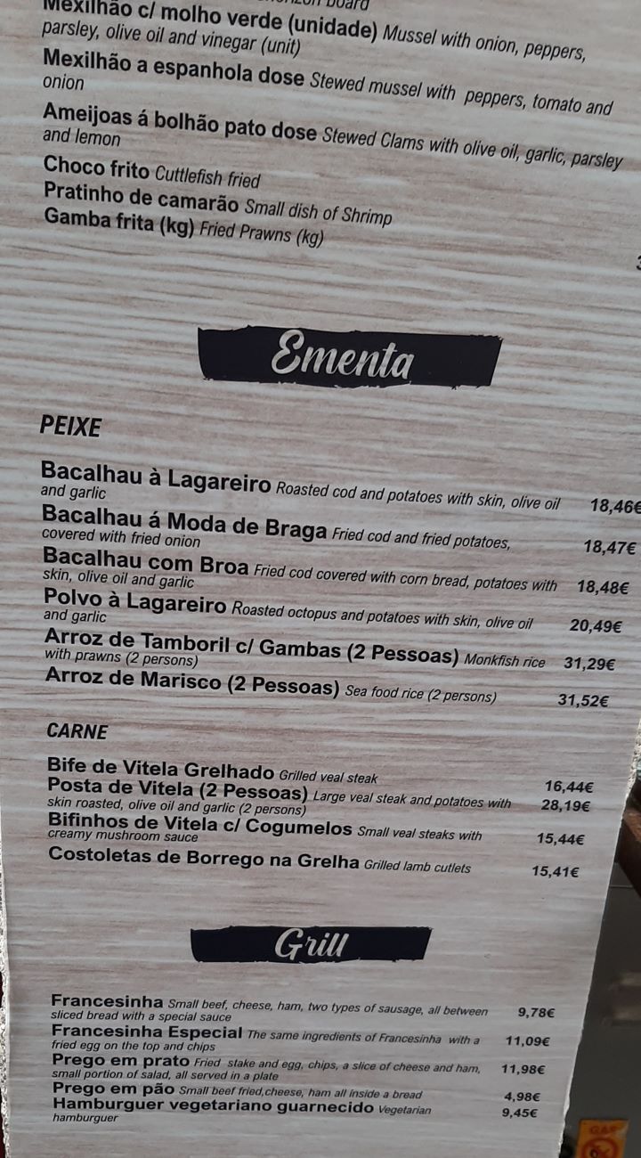 Alle 18, da perfetti “abituè”, ci accomodiamo al nostro “solito” posto alla Cantina QUINTA DO PORTAL dove il cameriere, dopo averci riconosciuti, chiede conferma ed ordiniamo “il Solito”, chiuderà alle 19 proprio quando l’adiacente NOVO ADEGA apre, questa è organizzazione! Antipasti vari, birra e soprattutto: Posta de Vitela, ottima cena, buon servizio, lasciamo anche una mancia del 10% e TUTTI ci ringraziano e salutano all’uscita.