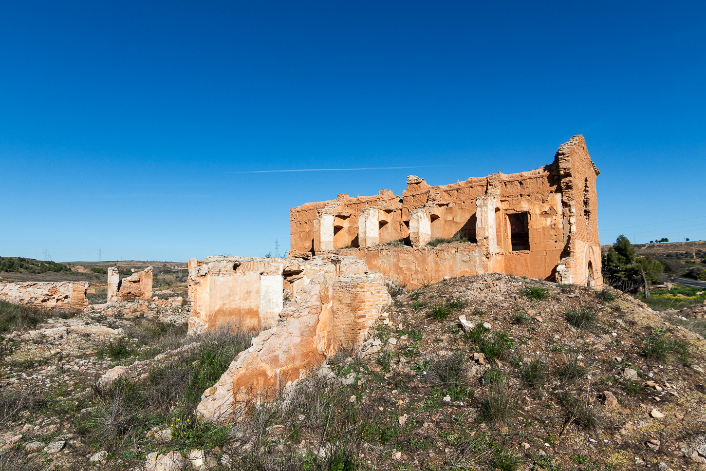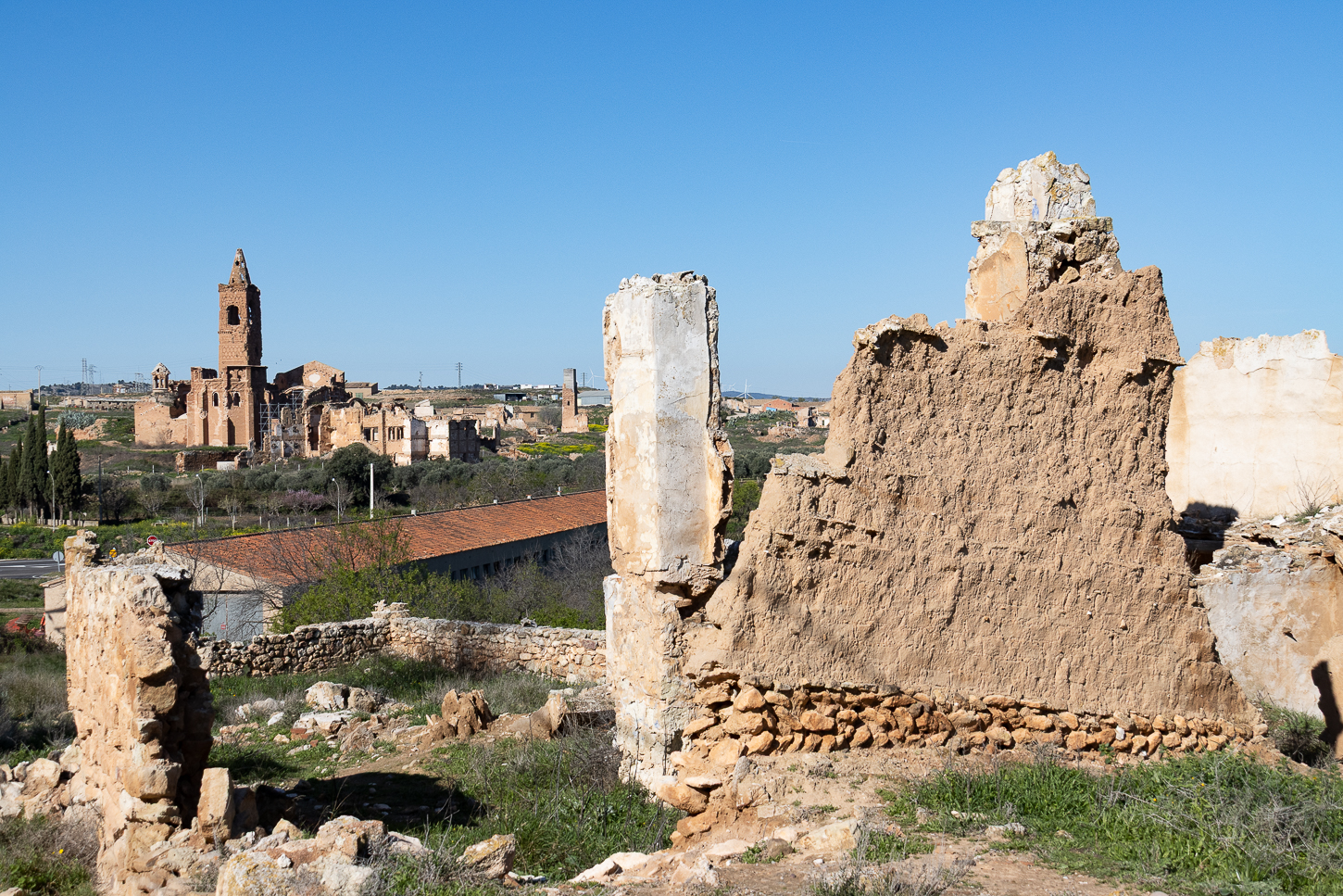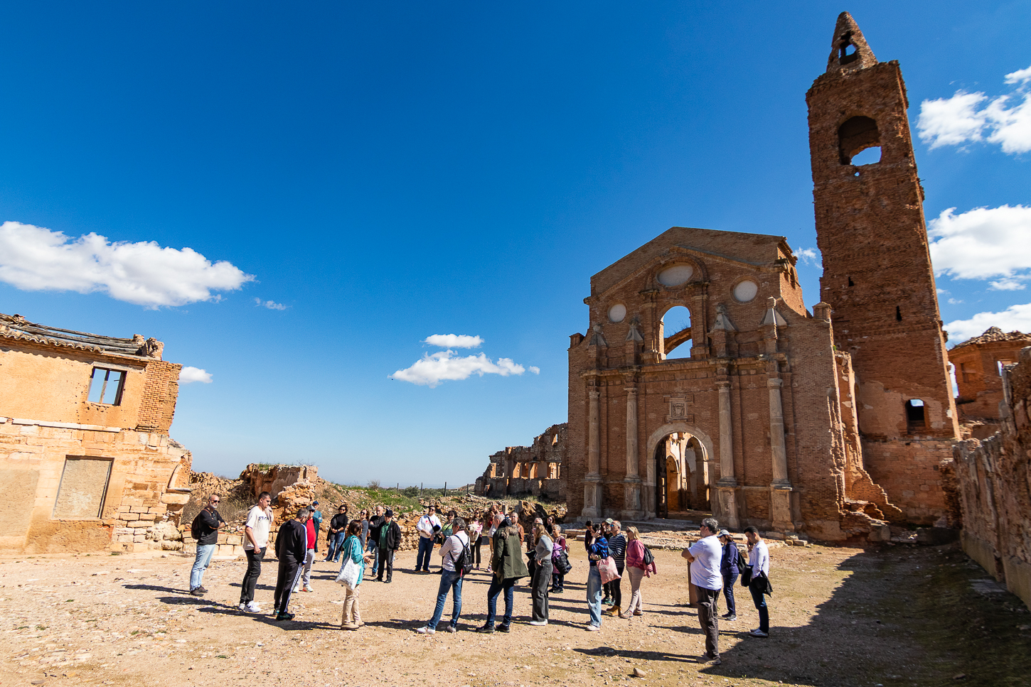 Belchite, tra la fine di agosto ed i primi giorni di settembre del 1937 durante la Guerra Civile, è stata distrutta nel corso di una battaglia. Hemingway ci era arrivato, pochi giorni dopo, come inviato di guerra e, si dice, che questa esperienza sia stata fonte di ispirazione per uno dei suoi libri: “Per chi suona la Campana”Al termine della Guerra Civile, l’allora “generalissimo” decise che il paesino andasse ricostruito, accanto al “Pueblo Viejo”, conservando le rovine come “monito” e memoria di quanto accaduto. Un’latra cosa fece di interessante: i morti non furono separati tra “Buoni e Cattivi”, “Belli e Brutti”, “Nazionalisti o Repubblicani” od altre suddivisioni: erano tutti deceduti e basta. Un unico monumento, il Trujal, all’interno del Pueblo Viejo li ricorda tutti e poco distante. sotto un’unica croce, sono sepolti i caduti di questa battaglia. Riappacificazione?