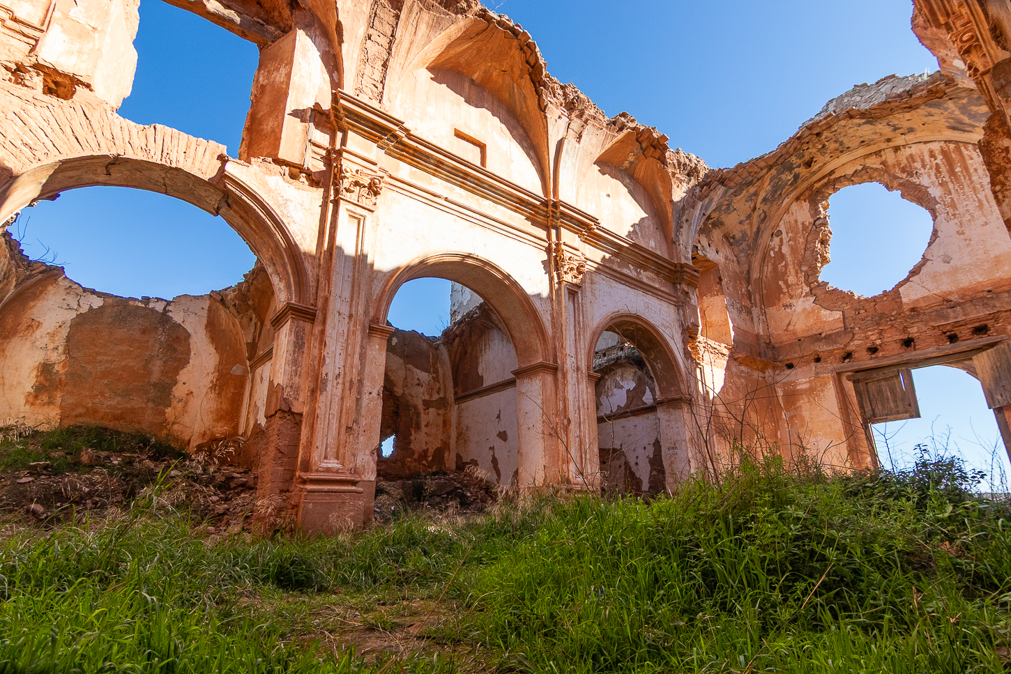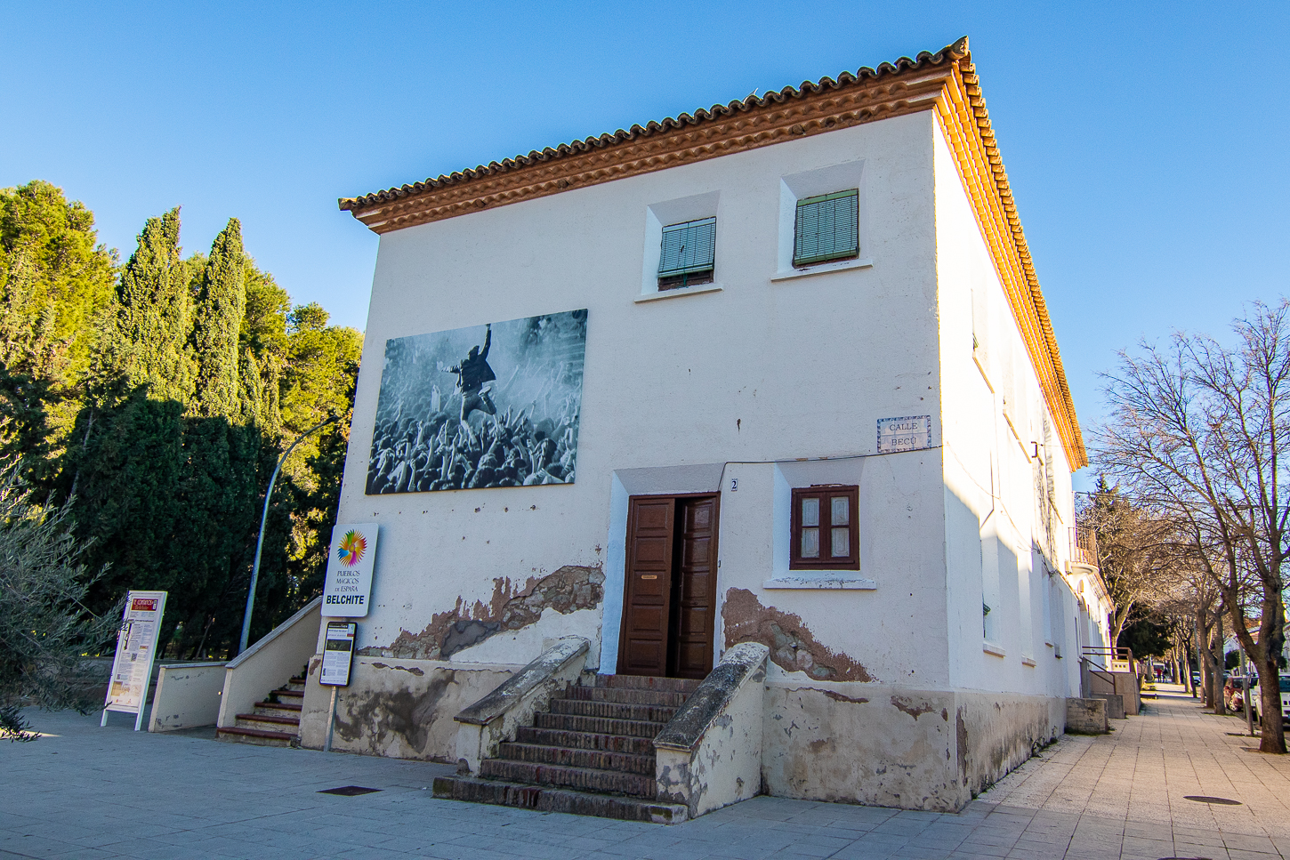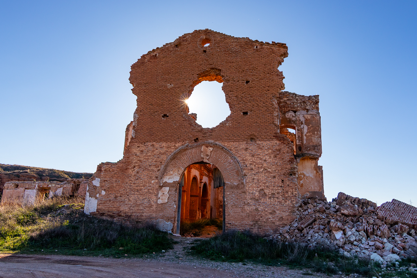 Belchite, tra la fine di agosto ed i primi giorni di settembre del 1937 durante la Guerra Civile, è stata distrutta nel corso di una battaglia. Hemingway ci era arrivato, pochi giorni dopo, come inviato di guerra e, si dice, che questa esperienza sia stata fonte di ispirazione per uno dei suoi libri: “Per chi suona la Campana”Al termine della Guerra Civile, l’allora “generalissimo” decise che il paesino andasse ricostruito, accanto al “Pueblo Viejo”, conservando le rovine come “monito” e memoria di quanto accaduto. Un’latra cosa fece di interessante: i morti non furono separati tra “Buoni e Cattivi”, “Belli e Brutti”, “Nazionalisti o Repubblicani” od altre suddivisioni: erano tutti deceduti e basta. Un unico monumento, il Trujal, all’interno del Pueblo Viejo li ricorda tutti e poco distante. sotto un’unica croce, sono sepolti i caduti di questa battaglia. Riappacificazione?
