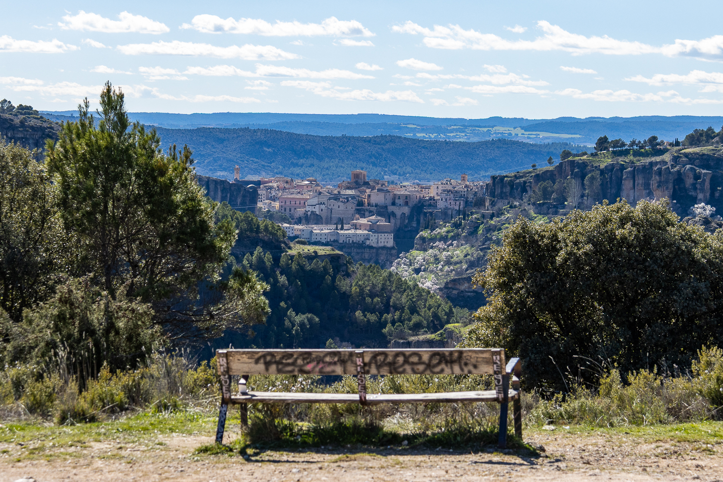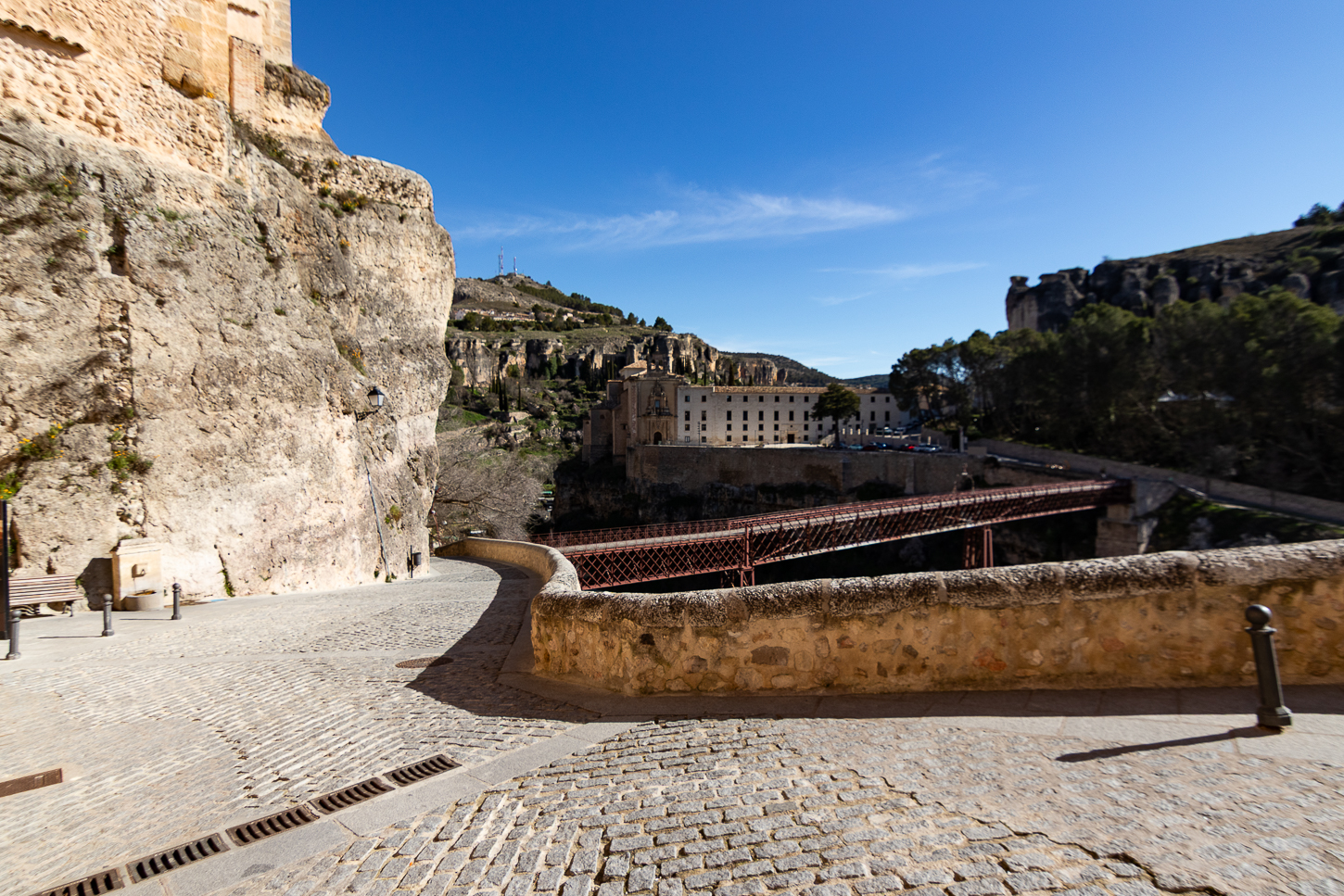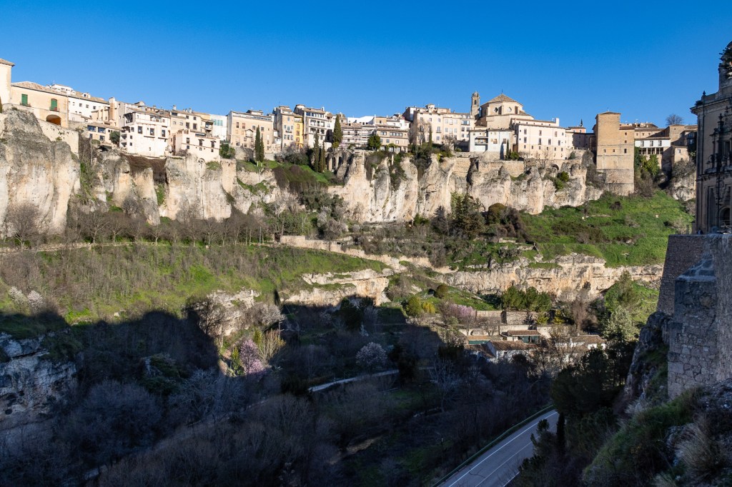 Siamo stati fortunati con il meteo: guidanto verso Cuenca abbiamo risalito alcuni passi montani tra i 1400m e 1610m, temperature basse, in qualche caso appena sopra zero gradi, spruzzi di neve ai bordi della strada e per circa metà percorso nuvole grige sempre davanti a noi, per nostra fortuna le catene da neve sono rimaste in bagagliaio.