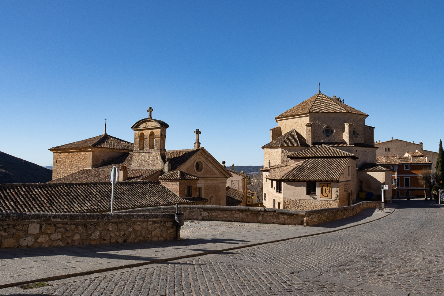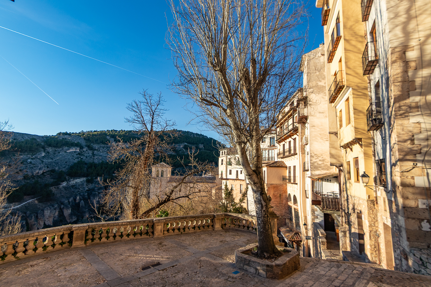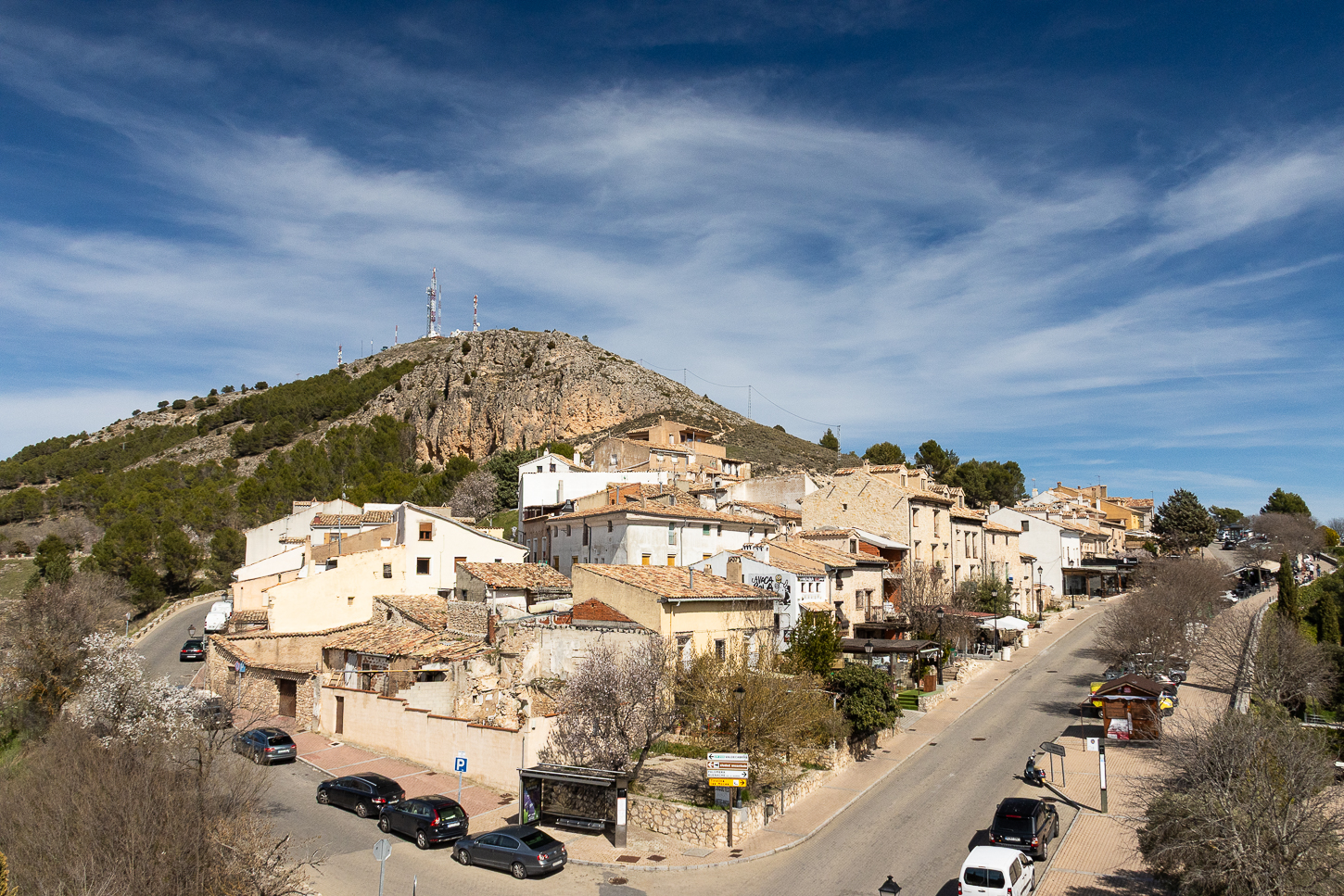 Siamo stati fortunati con il meteo: guidanto verso Cuenca abbiamo risalito alcuni passi montani tra i 1400m e 1610m, temperature basse, in qualche caso appena sopra zero gradi, spruzzi di neve ai bordi della strada e per circa metà percorso nuvole grige sempre davanti a noi, per nostra fortuna le catene da neve sono rimaste in bagagliaio.