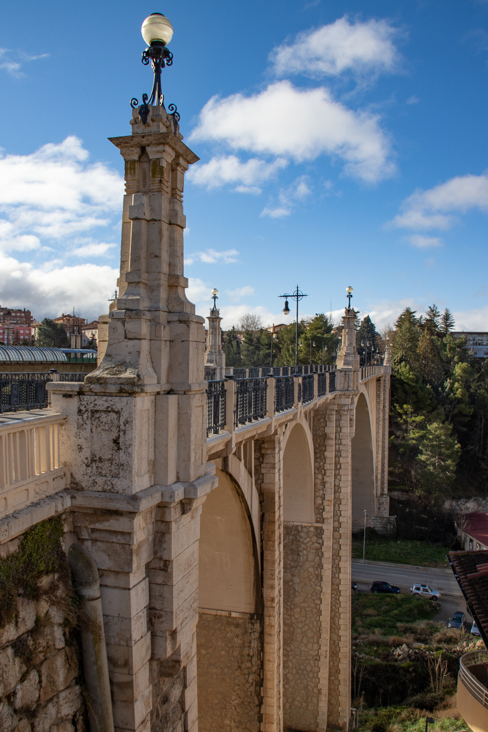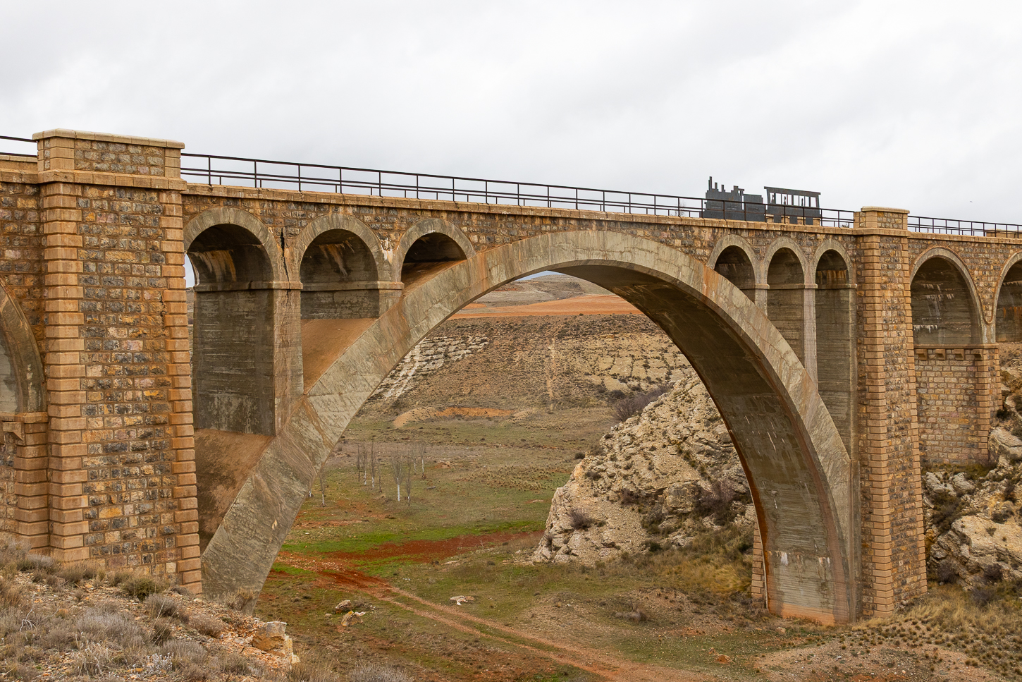 Devieremo a Perales de Alfambra per acquistare acqua da tenere in macchina ed in camera e pochi km oltre per raggiungere un ponte ferroviario dismesso, sul quale è stata istallata una “scoltura” chiamata “Il treno dei sogni”. Da qui, sino a Teruel, costeggeremo una vecchia linea ferroviaria, fermandoci ad alcune stazioni abbandonate, prima che la pioggia si infittisca impedendoci altre soste; raggiungiamo il Parador de Teruel alle 14.30.La receptionist parla Inglese, è la seconda persona che lo parla da quando siamo partiti da Madrid.
