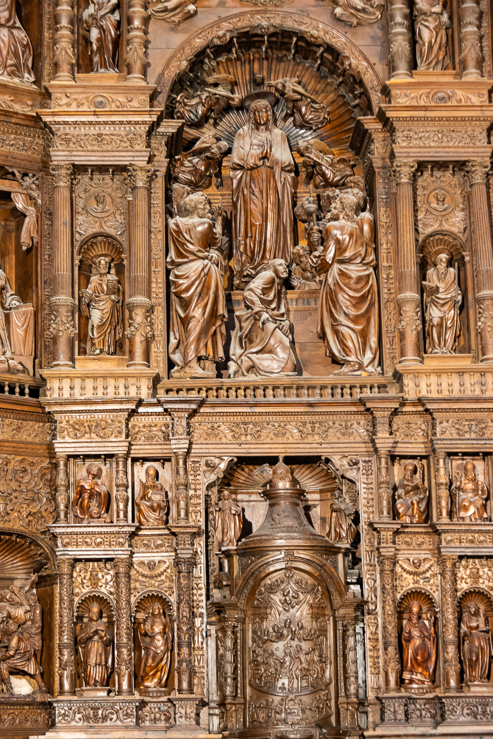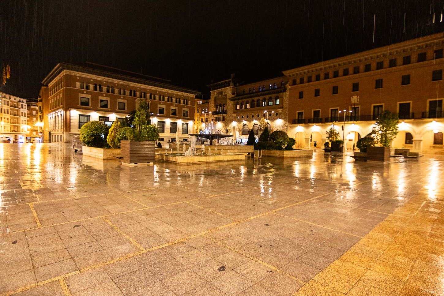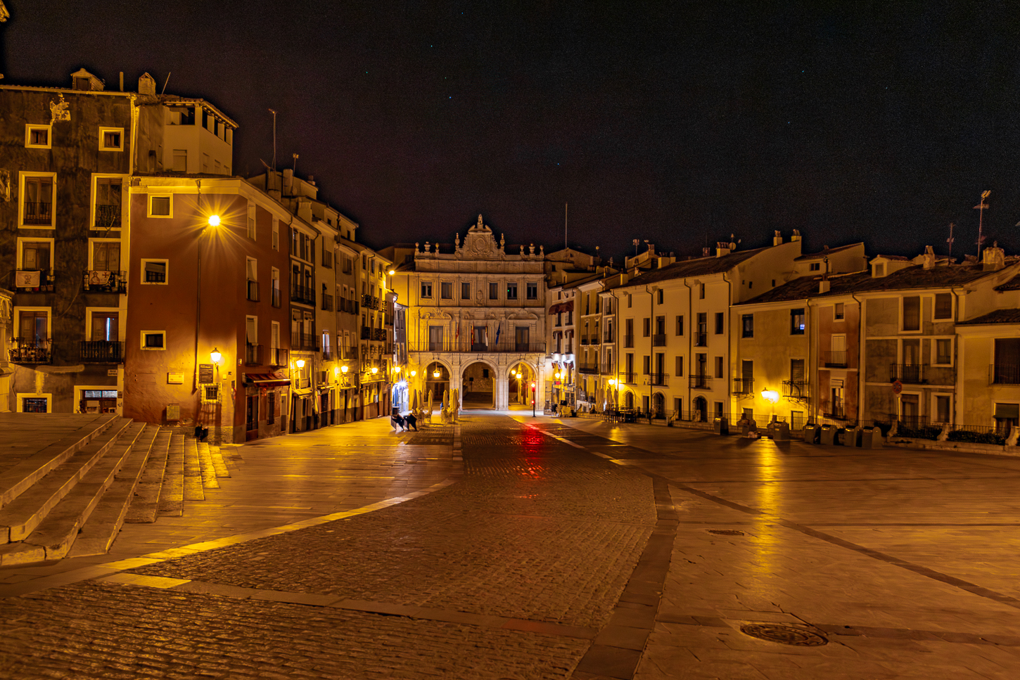 Juan, così si chiama il ragazzo che ci accompagna, parla Francese ed Inglese, anche poche parole di Tedesco, è simpatico; mi chiede dove e come vorrei fotografare e, indicatogli i luoghi concordiamo l’ordine. Torre del Reloy, San Martin de Tours, Piazza della Croce, Casa de la Domi, Chiesa de San Agustin, Casa Aragonesa, e qualche altra pausa tra le facciate. Assunta mi fa da assistente illuminando alcuni settori mentre fotografo, Juan lo fa a Sant Agustin, dove non si può accedere, lo farà Lui, al posto di Assunta per illuminare un paio di settori interni, mentre fotografo dall’esterno.