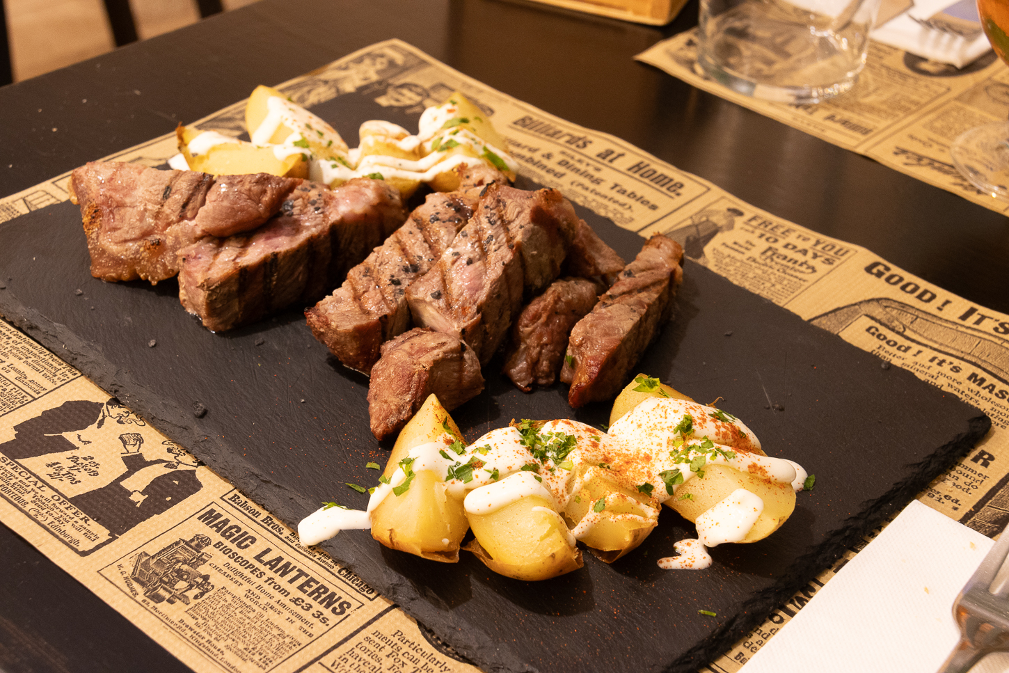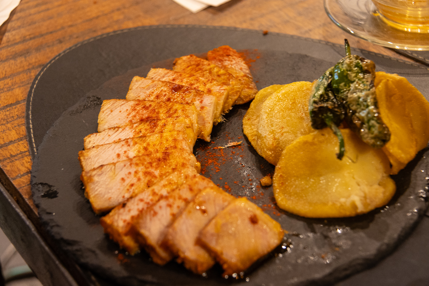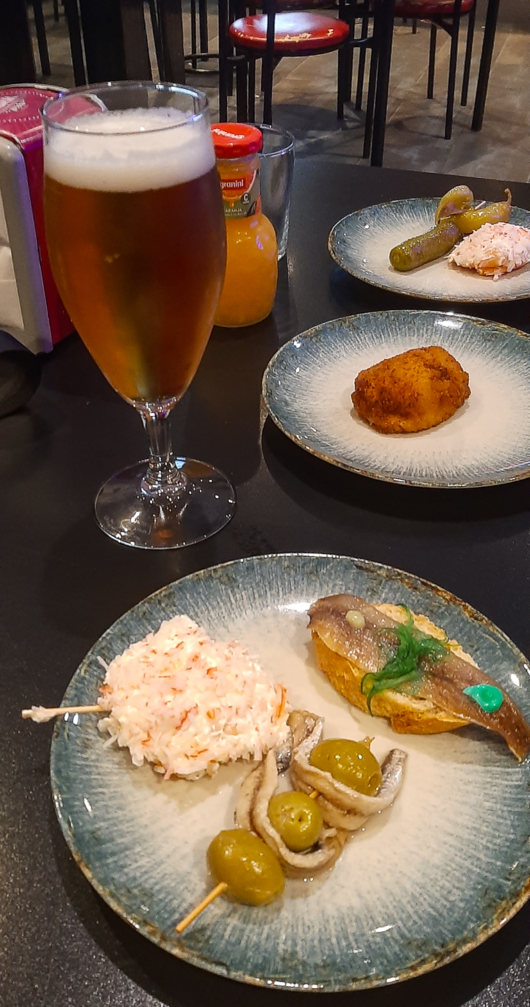 Dopo la passeggiata per il centro ci concediamo una pausa “spremuta d’arancia”. Una delle cose (per noi) brutte è che la maggior parte dei ristoranti serve la cena dalle 20.00, se non addirittura dalle 20.30; erano circa le 18.30 e non avevamo voglia di attendere abbiamo così iniziato a cercare ristoranti con orari umani così, scremando le recensioni, abbiamo individuato quello che alcuni “recensori” definivano “scarso” ma che a noi, tra le righe, pareva accettabile e che serviva cibarie ad orari più ampi. Tapas Y Copas, non solo ci ha ricevuti e serviti, ma ci ha impressionato positivamente come servizio, qualità e prezzo; anche qui abbiamo lasciato la meritata mancia! Buona la Carne, ottime le “Uova Rotte” e le Verdure grigliate, così come le Birre.